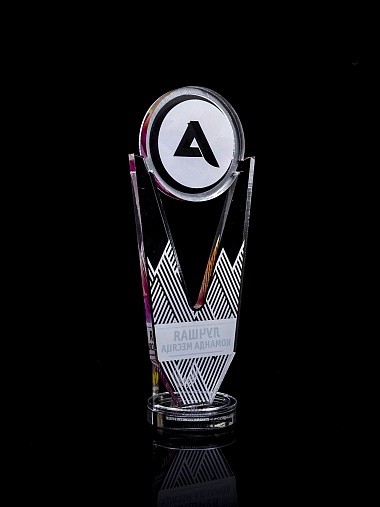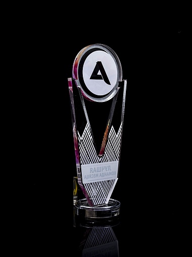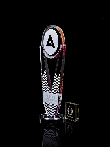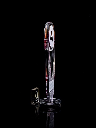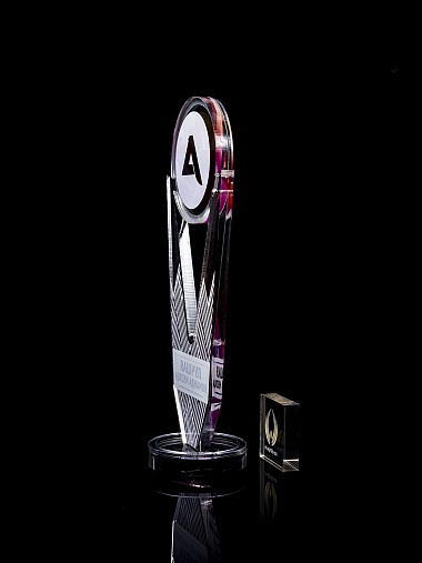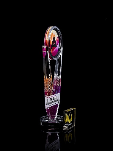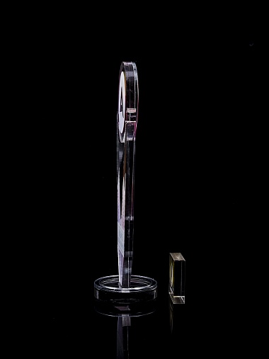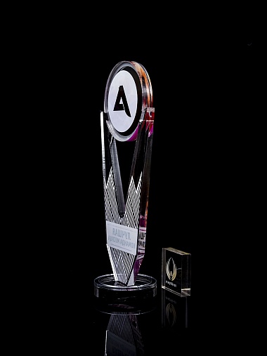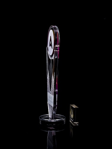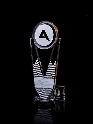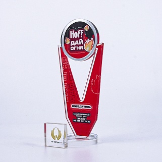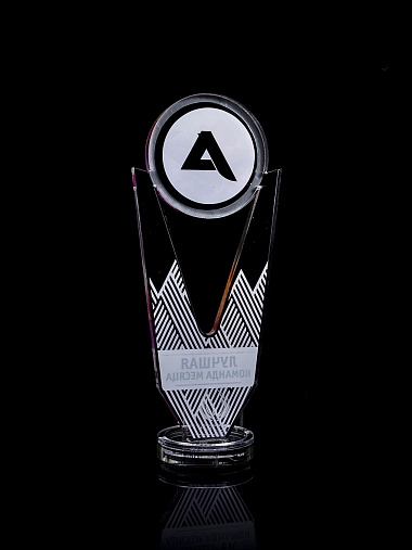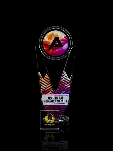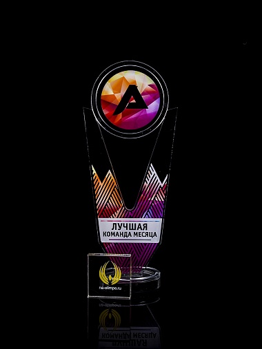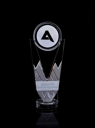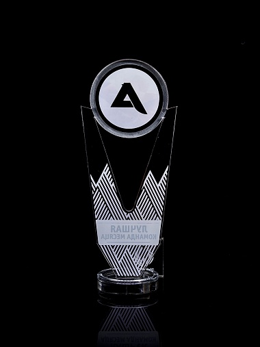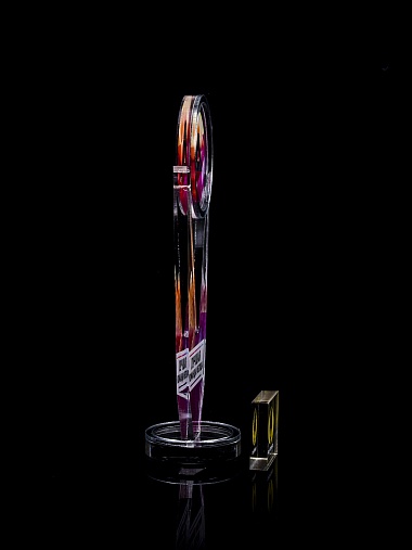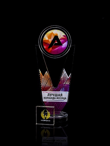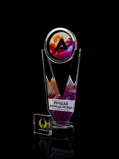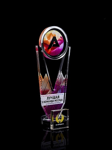 Приз из серебряного и прозрачного акрила с цветным нанесением.