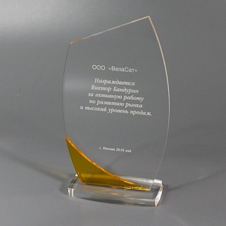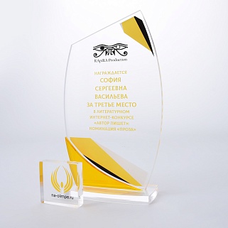 Приз из акрила 12-180 с цветной печатью, высота 18 см