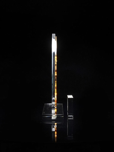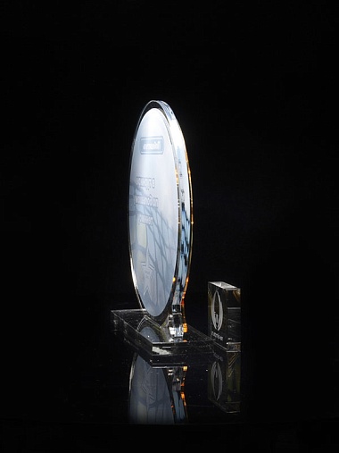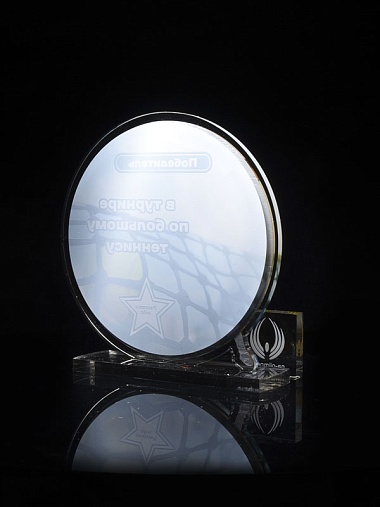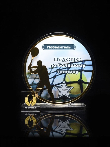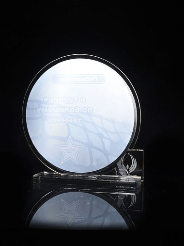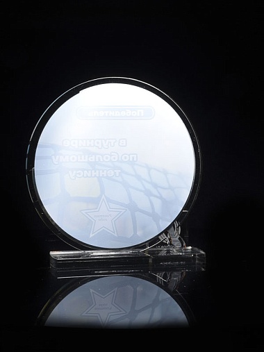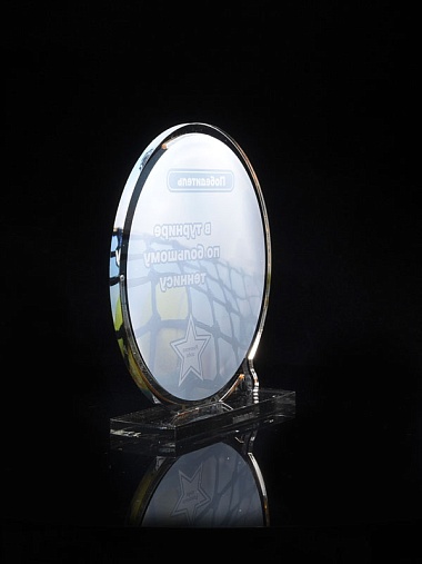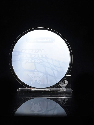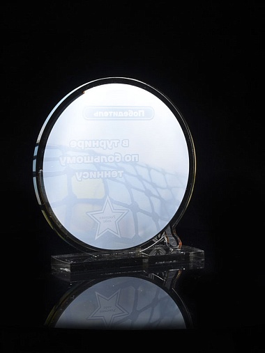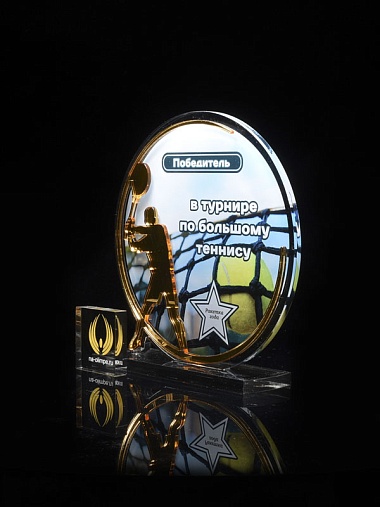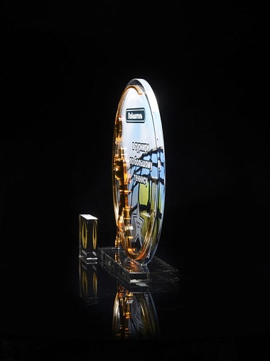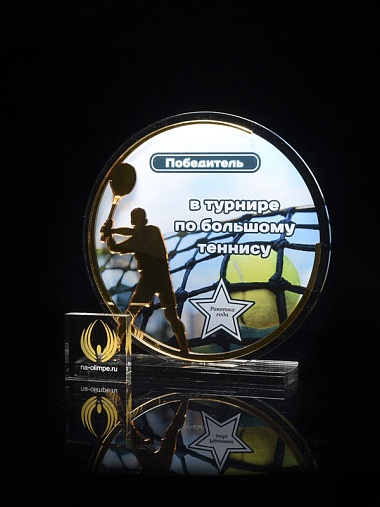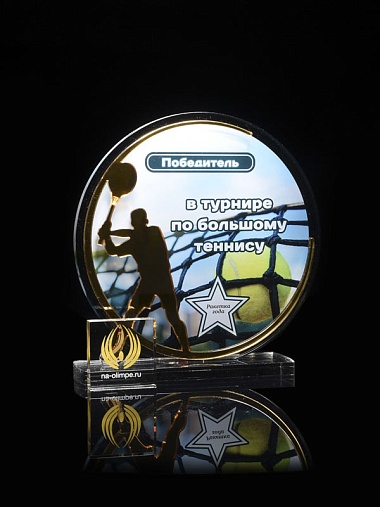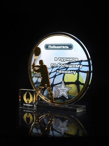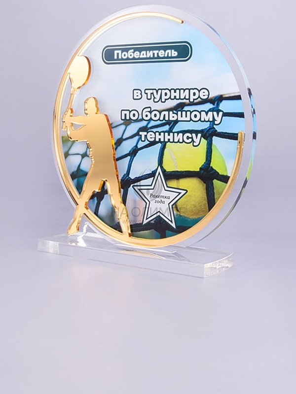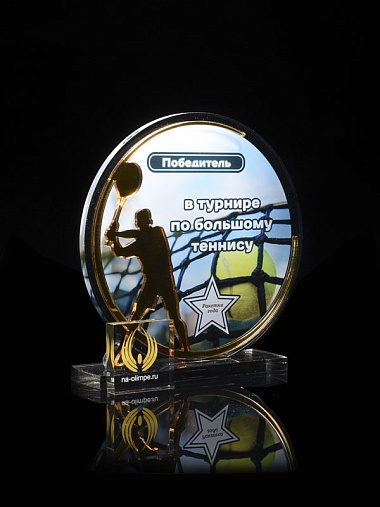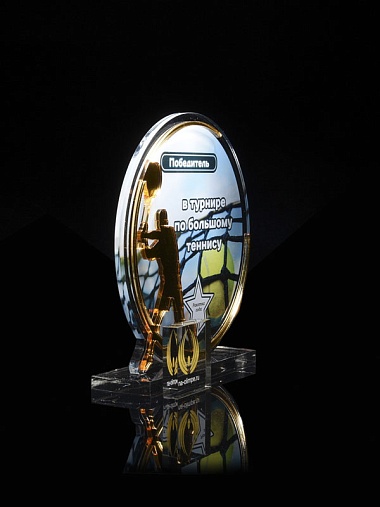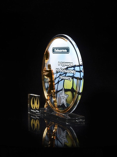 Приз из прозрачного и золотого акрила с цветной печатью.