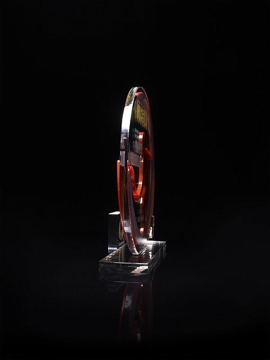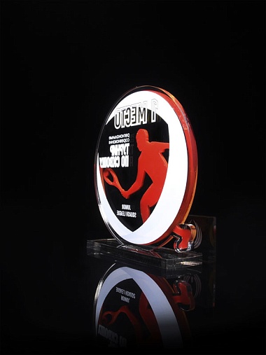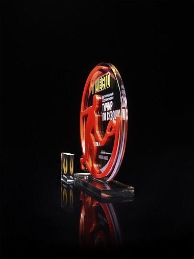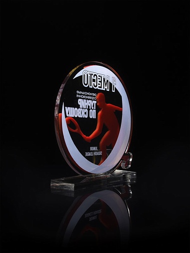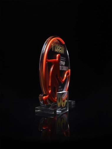 Приз из прозрачного и золотого акрила с цветной печатью высотой 160 мм.