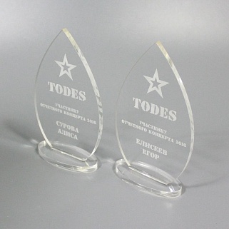 Приз из акрила 13-150 с гравировкой, высота 15 см