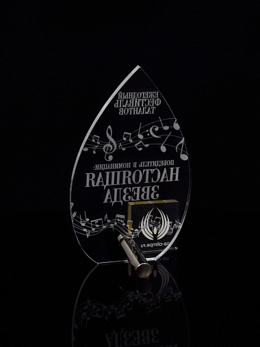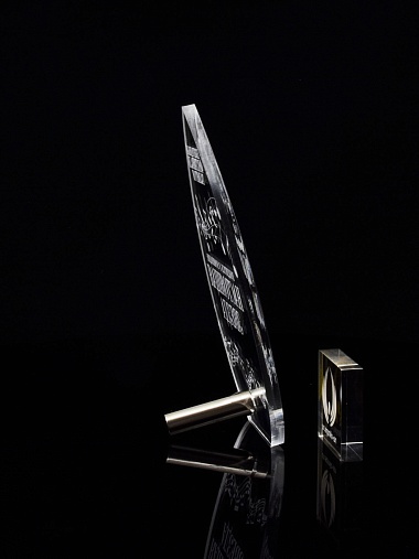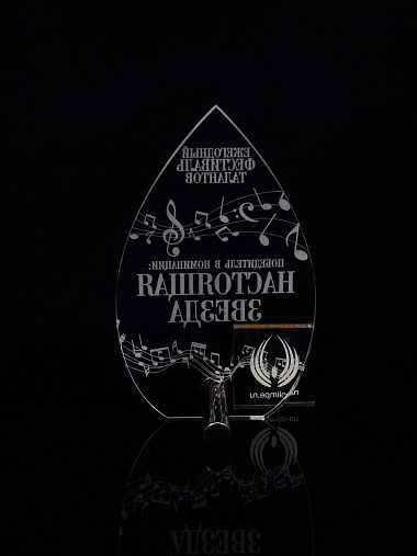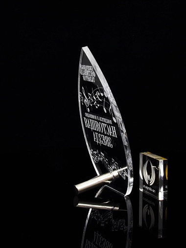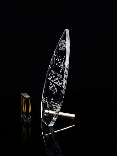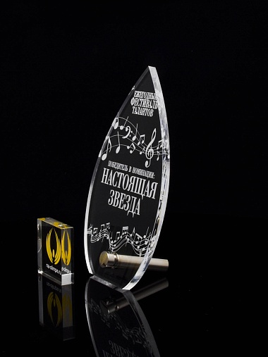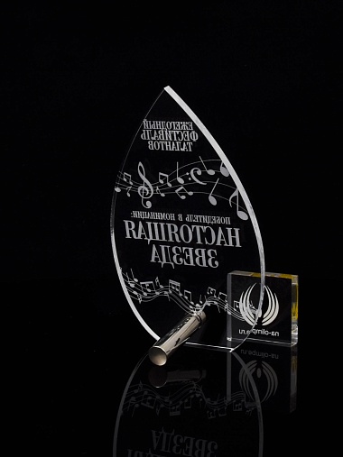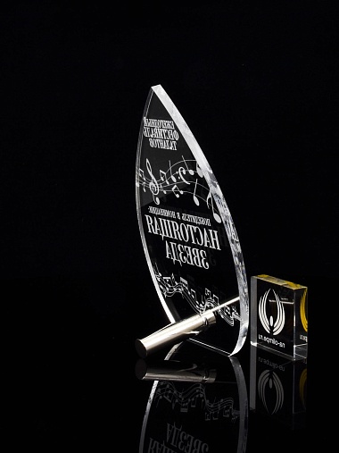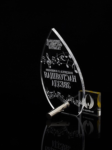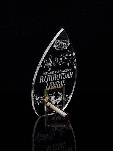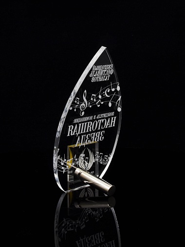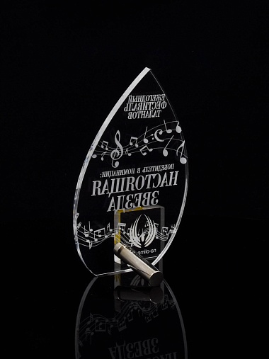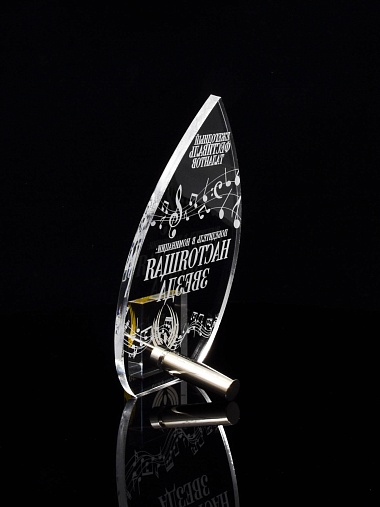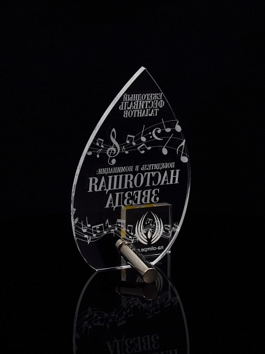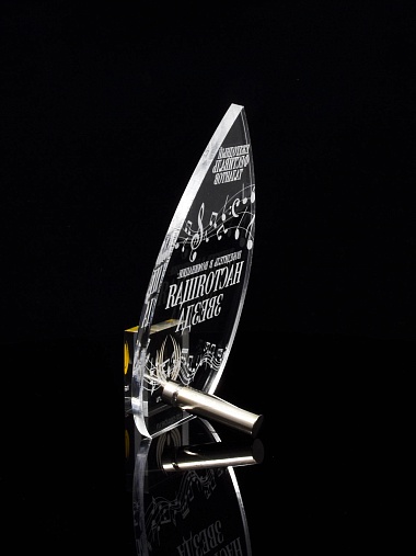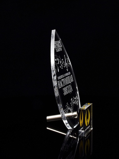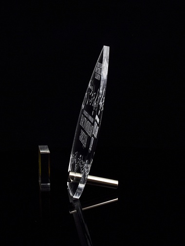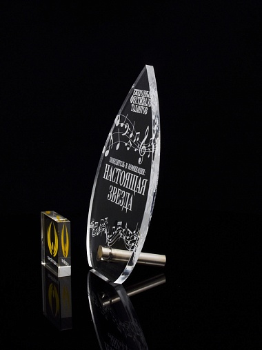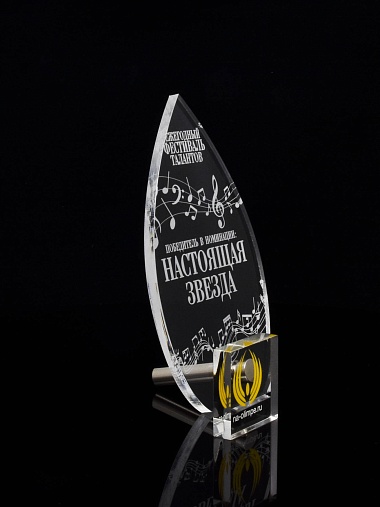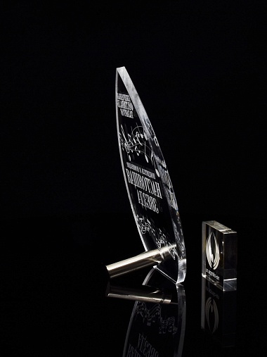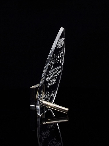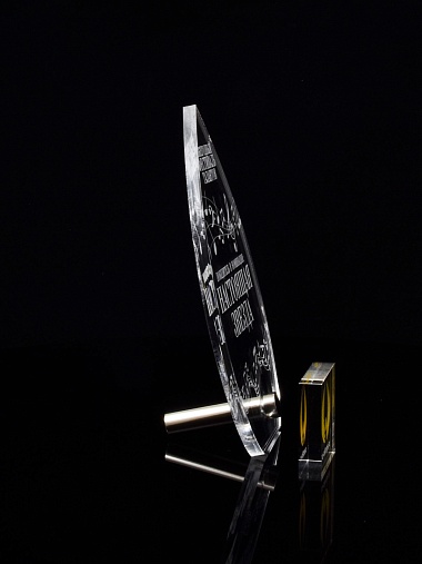 Приз из прозрачного акрила с лазерной гравировкой.