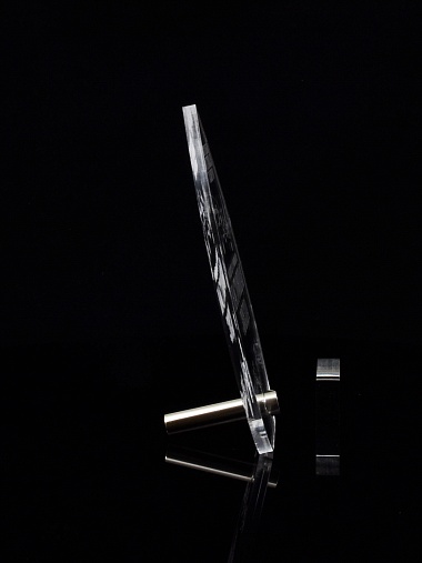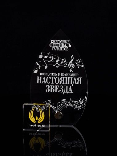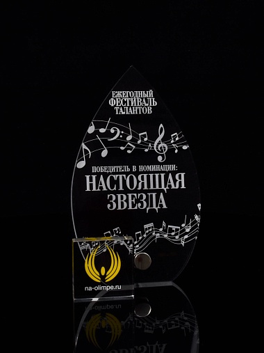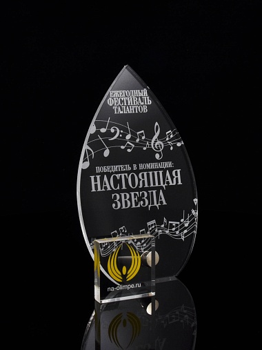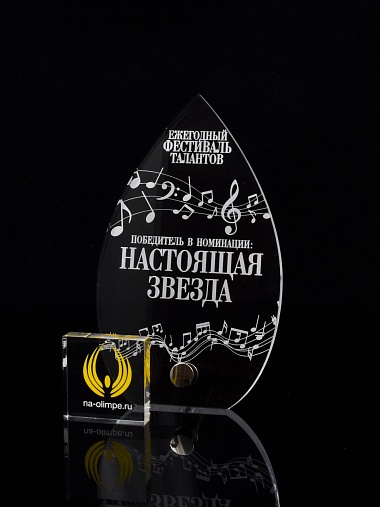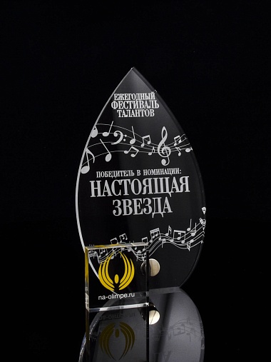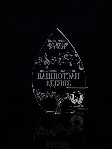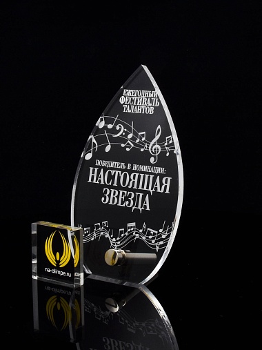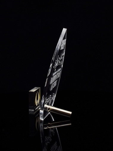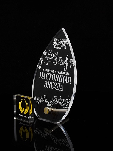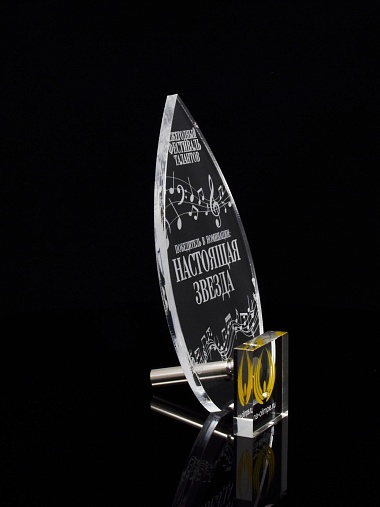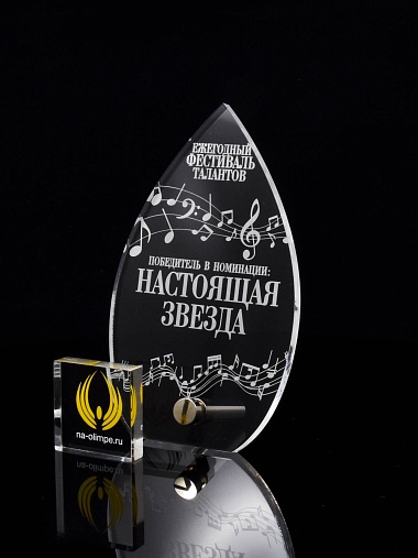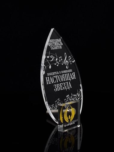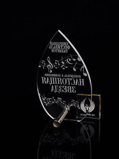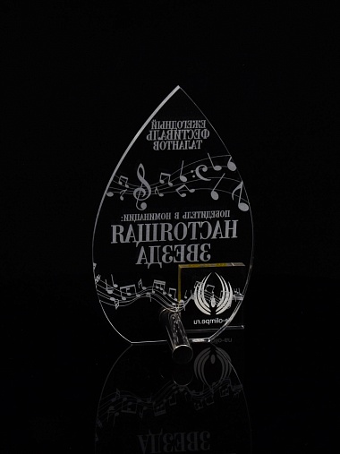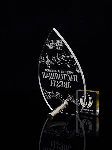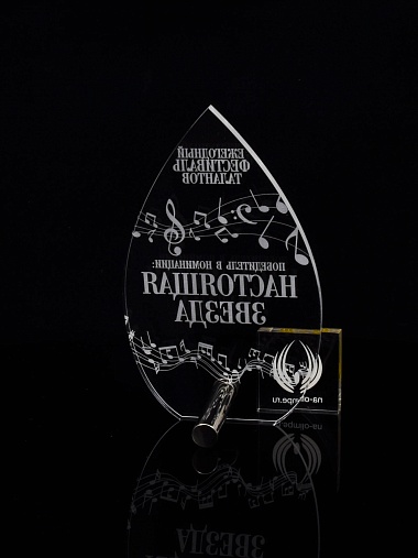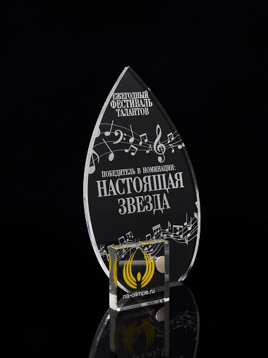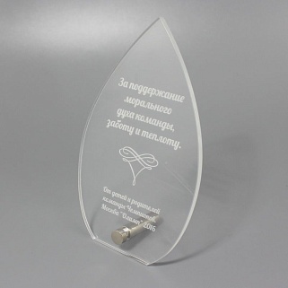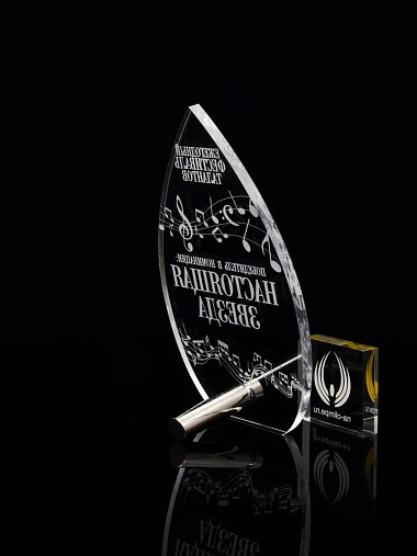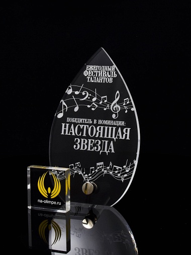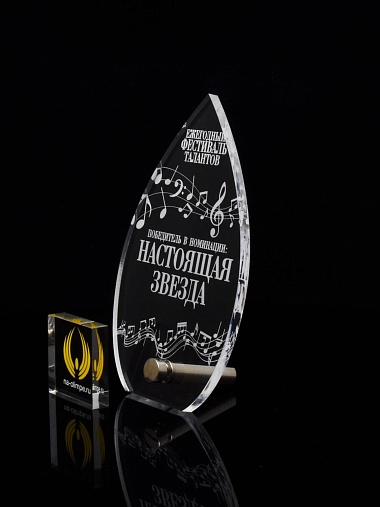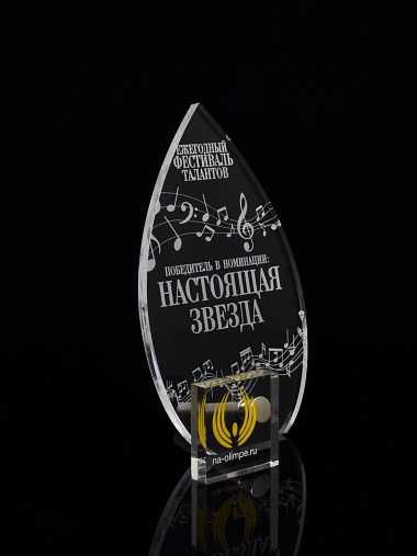Приз из прозрачного акрила с лазерной гравировкой.