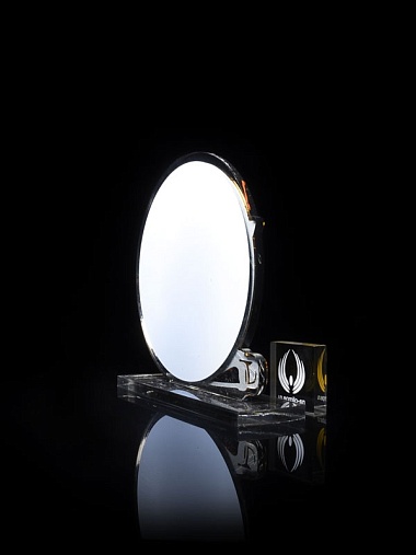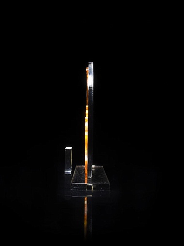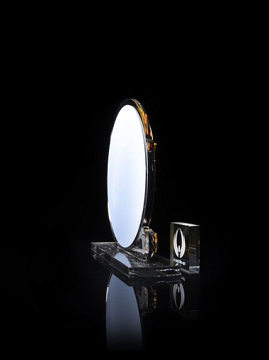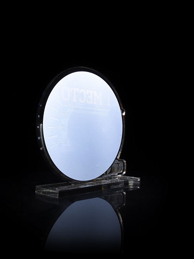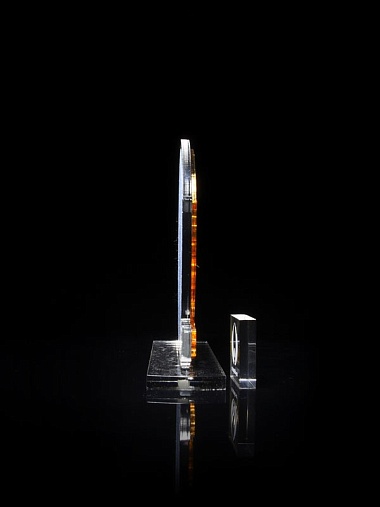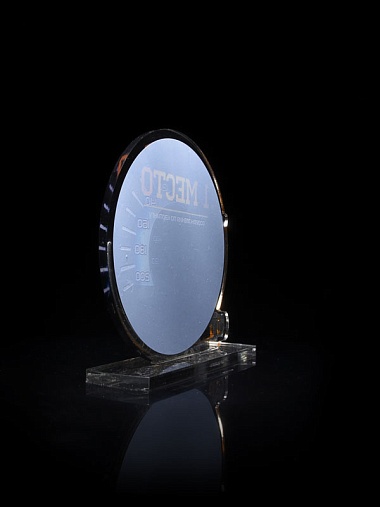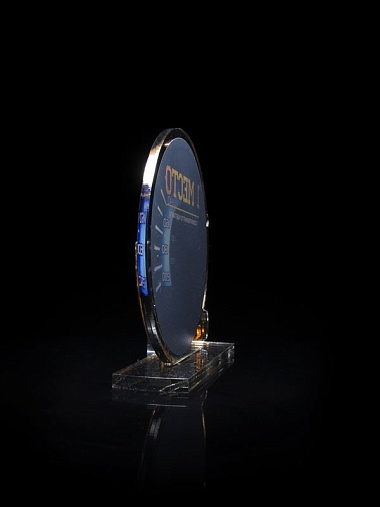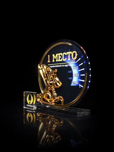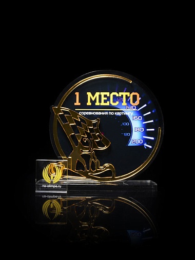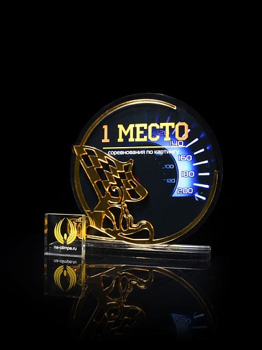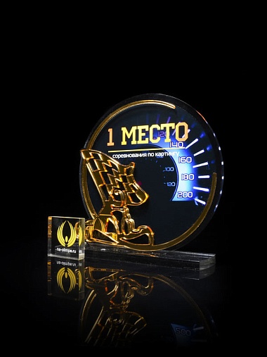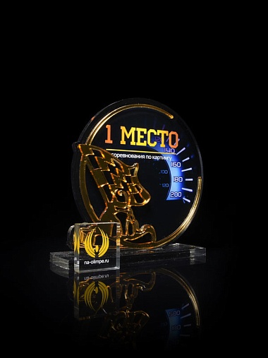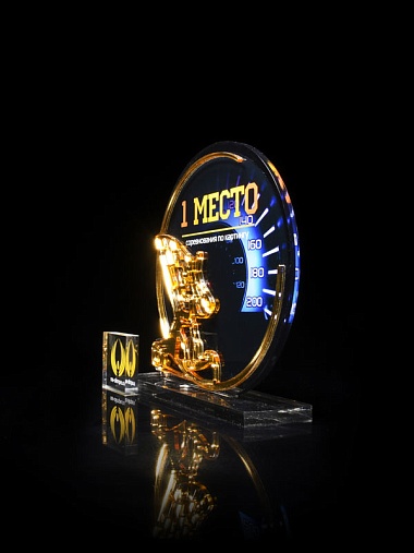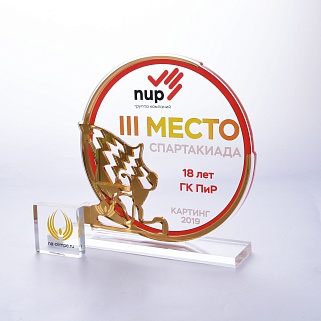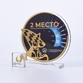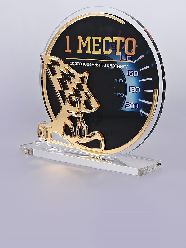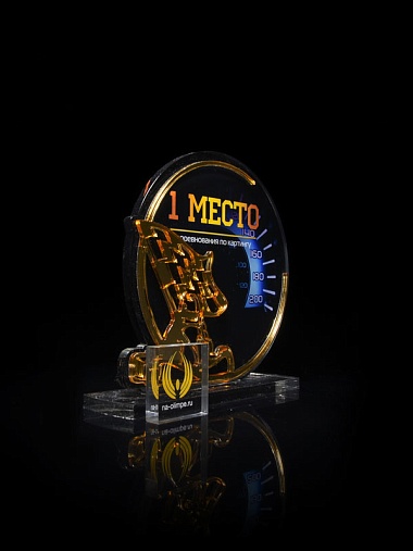 Приз из прозрачного и золотого акрила с цветной печатью высотой 160 мм.