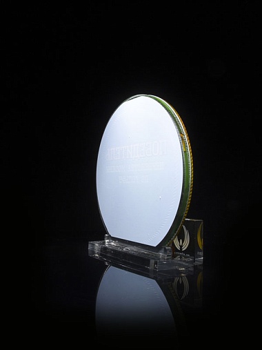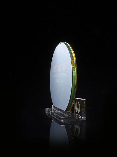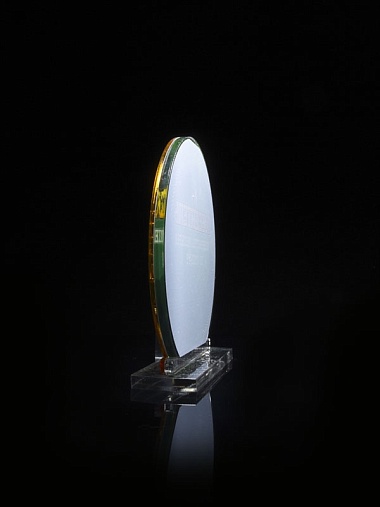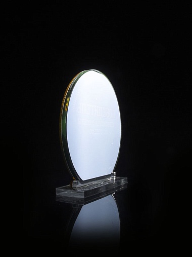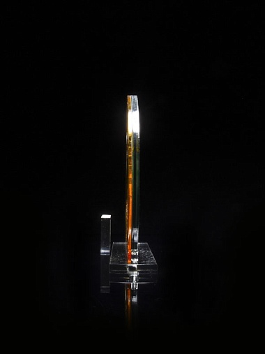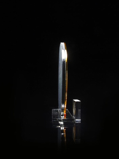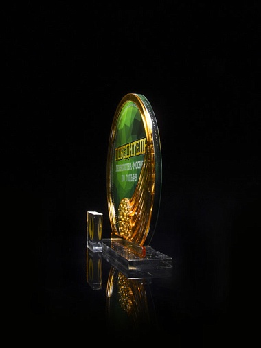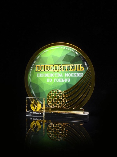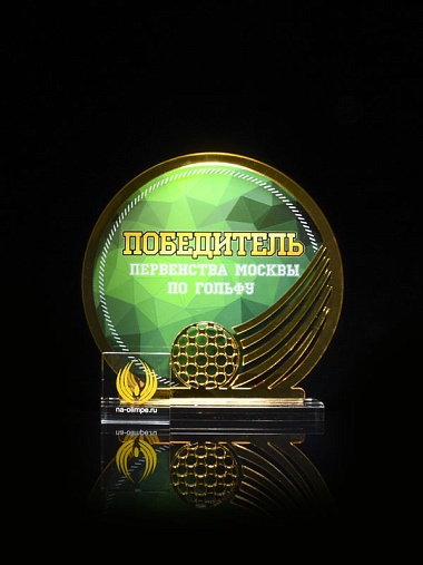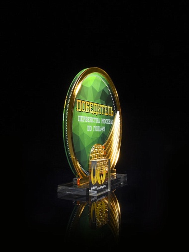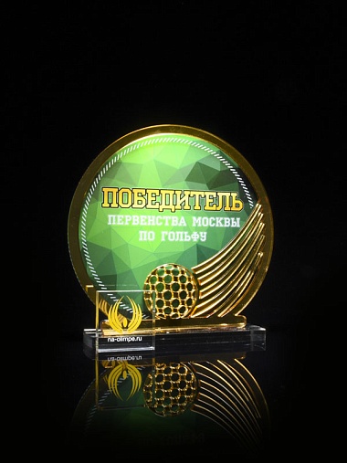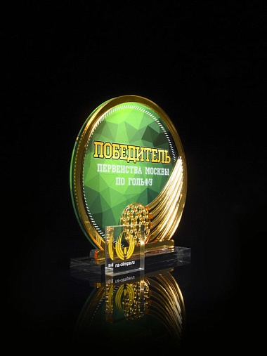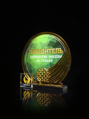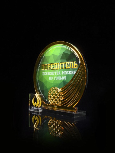Приз из прозрачного и золотого акрила с цветной печатью высотой 160 мм.