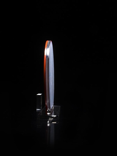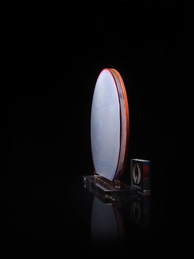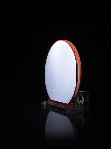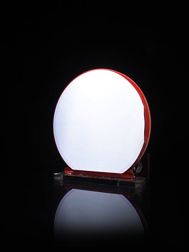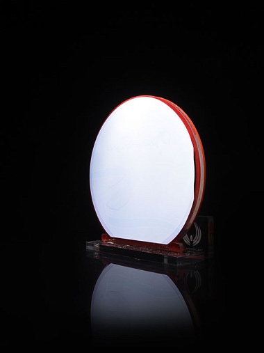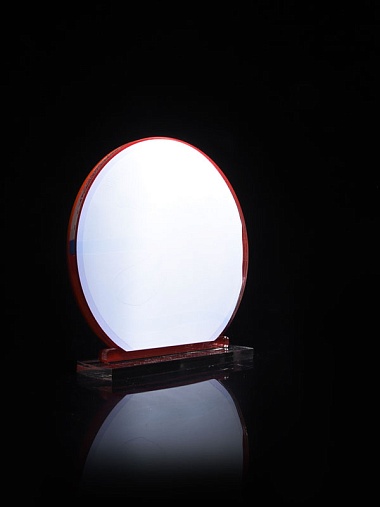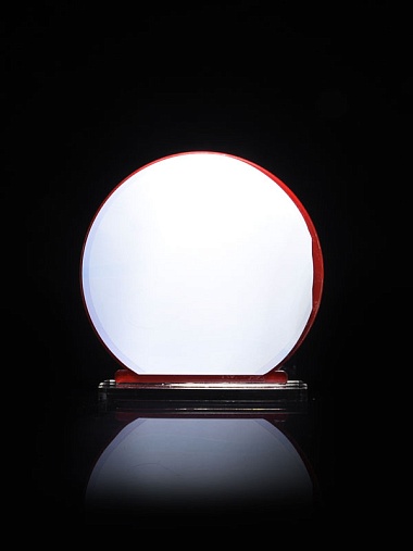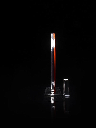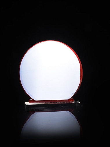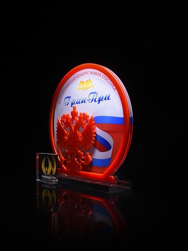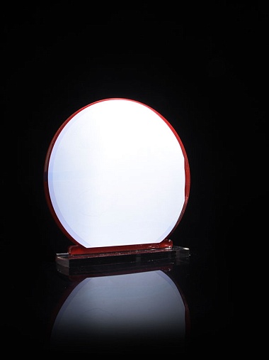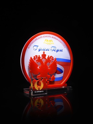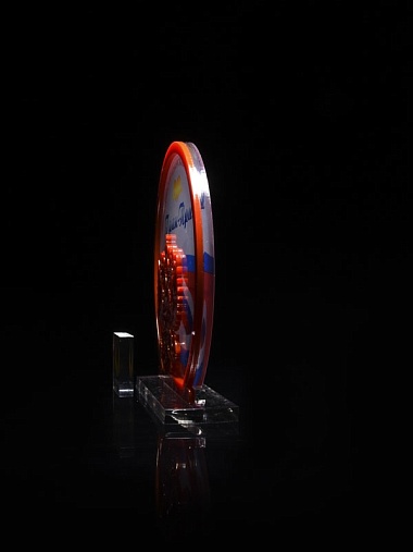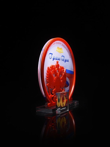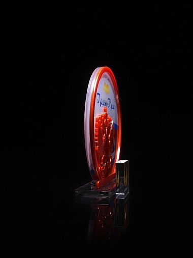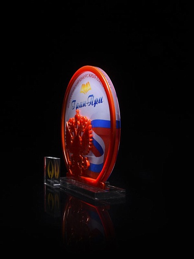 Приз из прозрачного и красного акрила с цветной печатью высотой 160 мм.