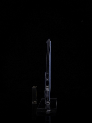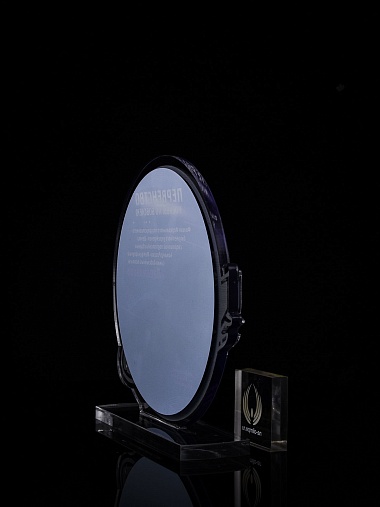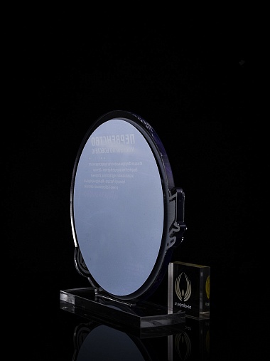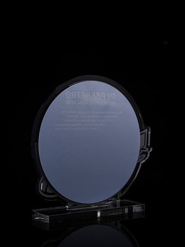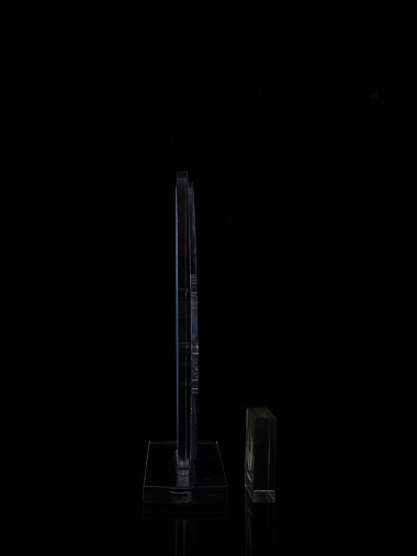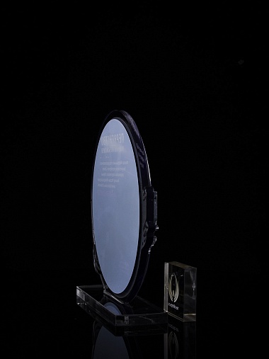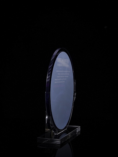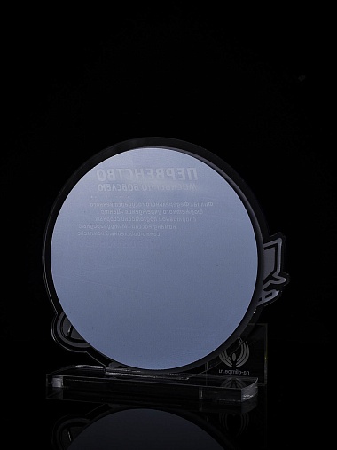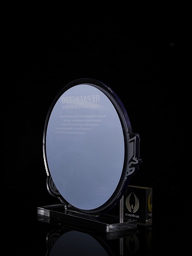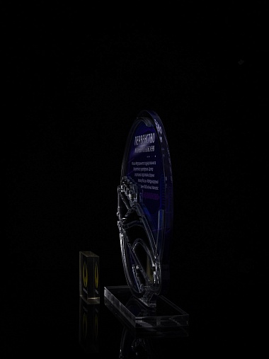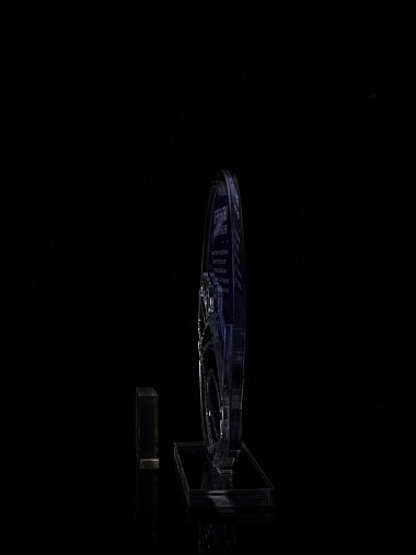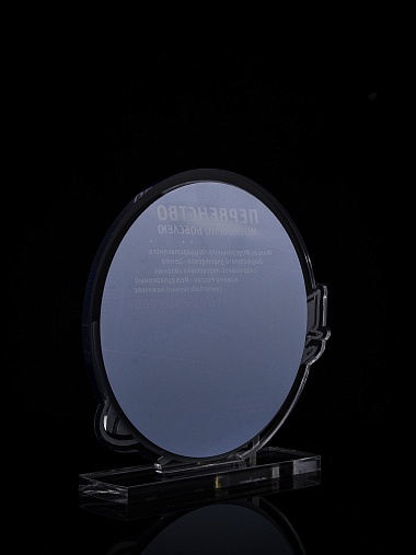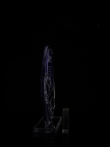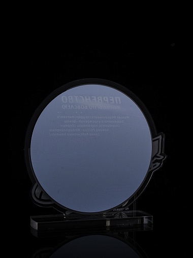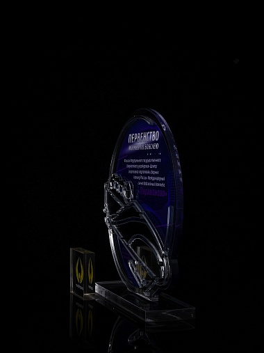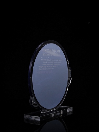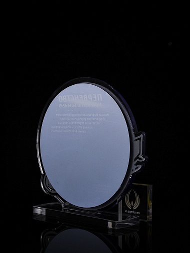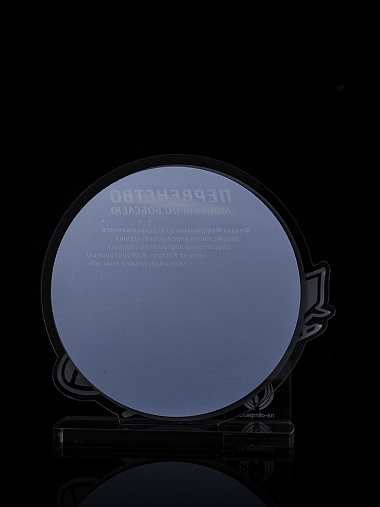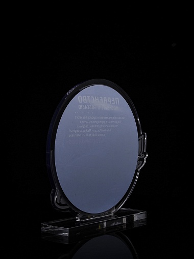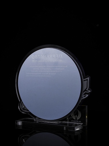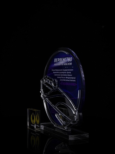Приз из прозрачного и серебряного акрила с цветной печатью.