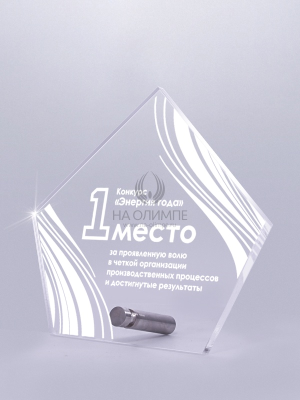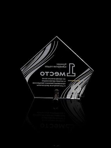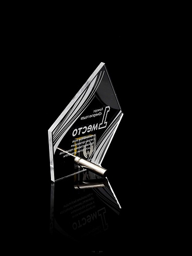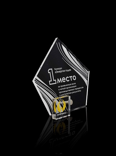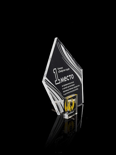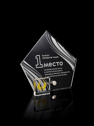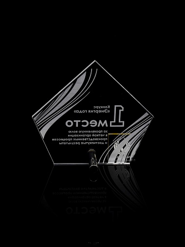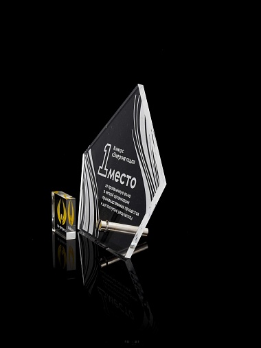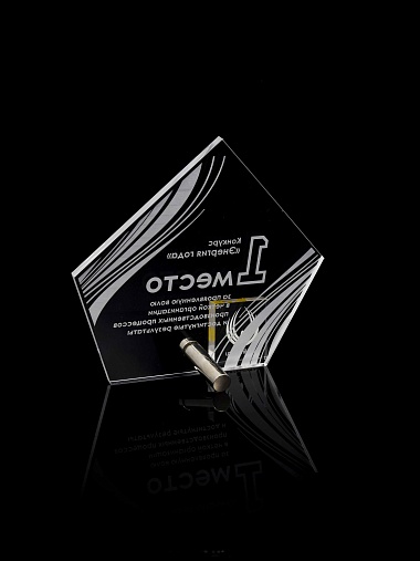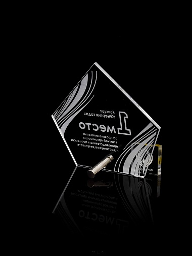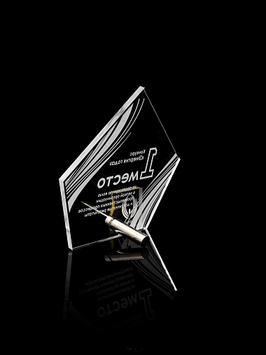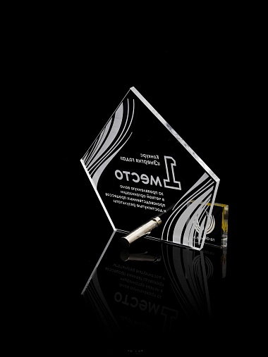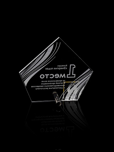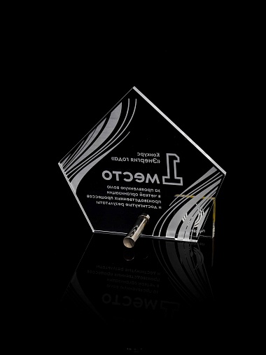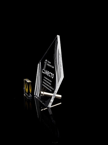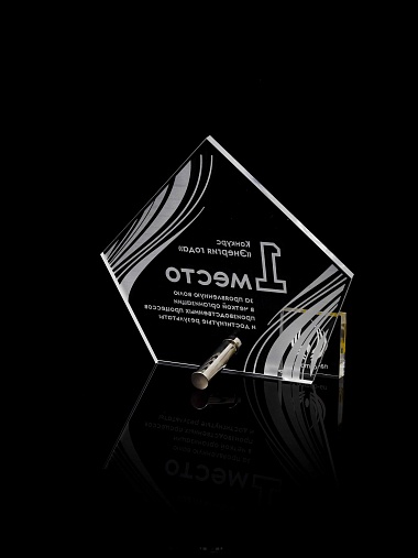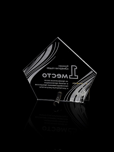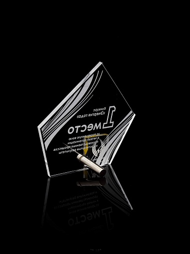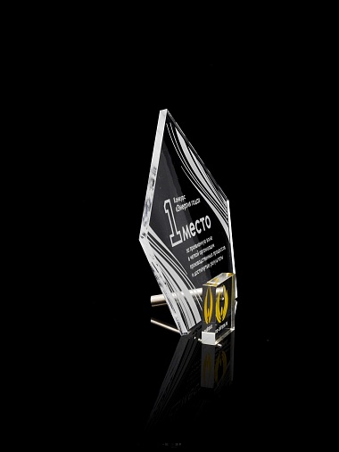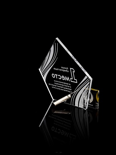 Приз из прозрачного акрила с лазерной гравировкой.
