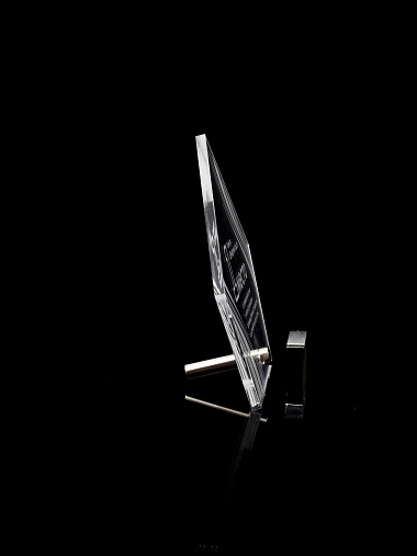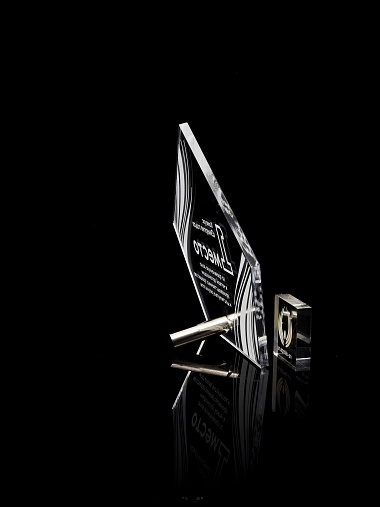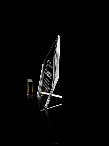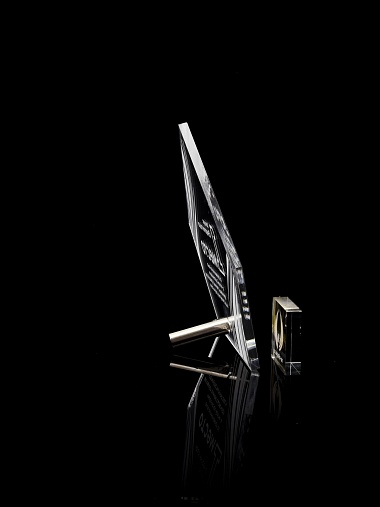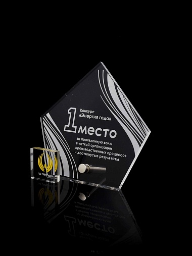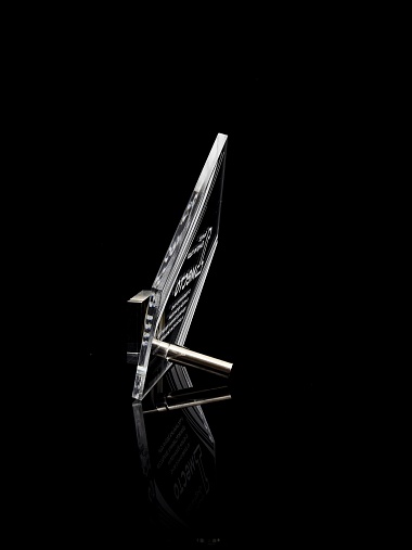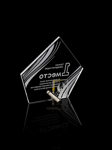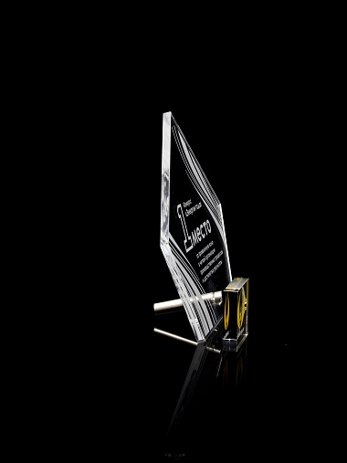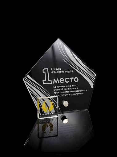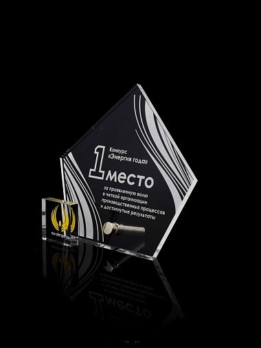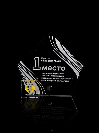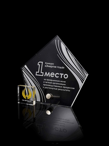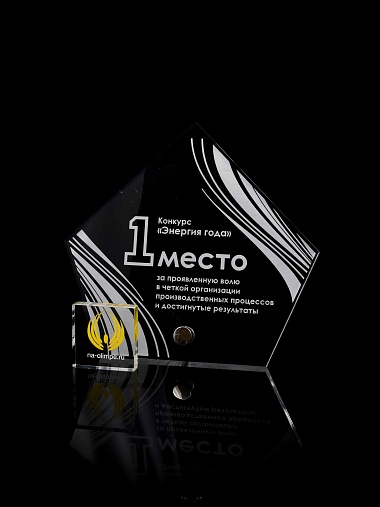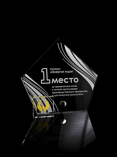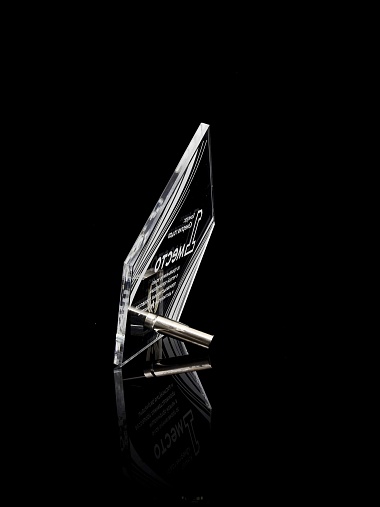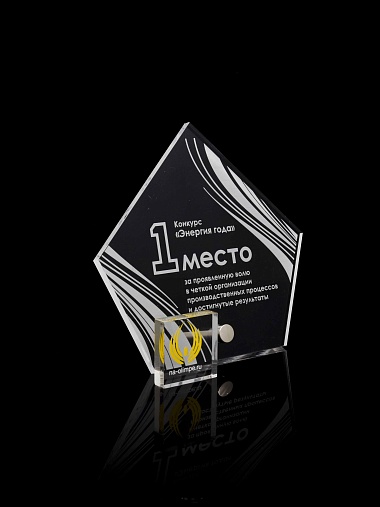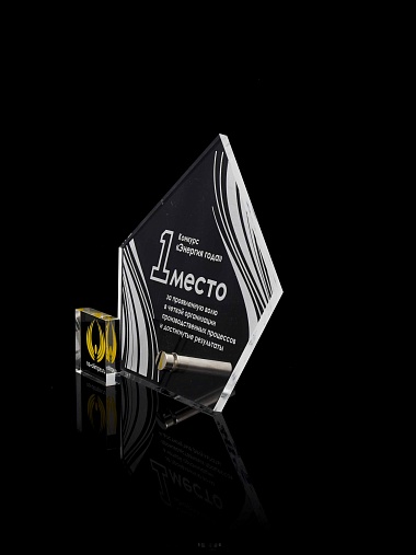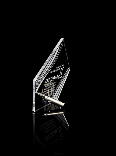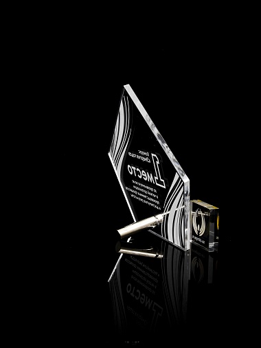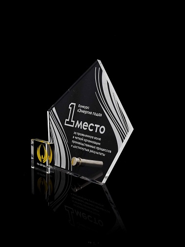 Приз из прозрачного акрила с лазерной гравировкой.