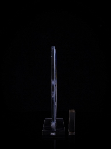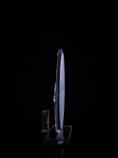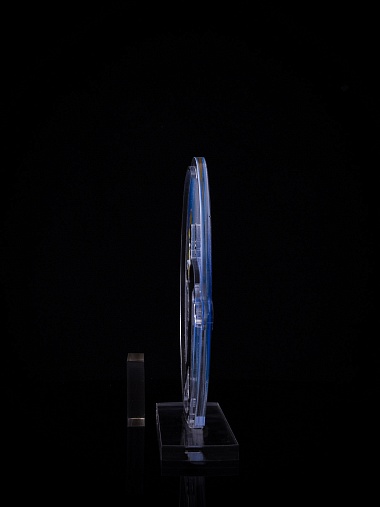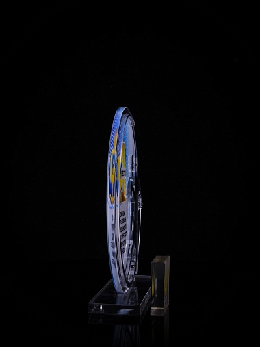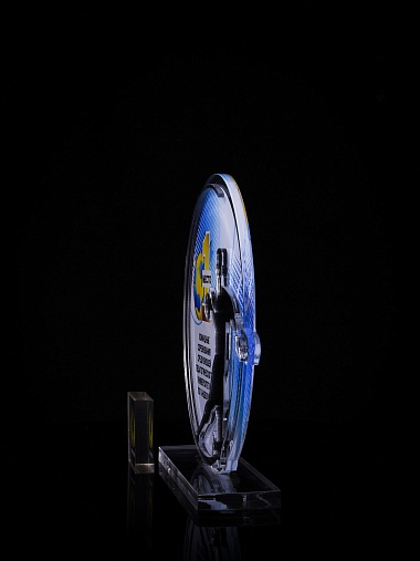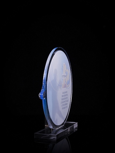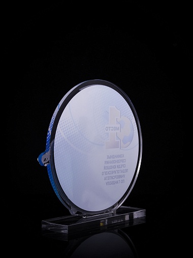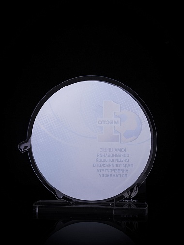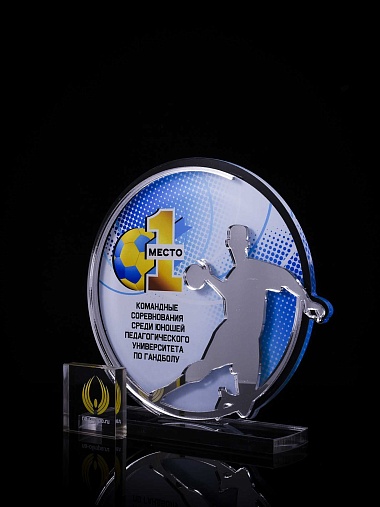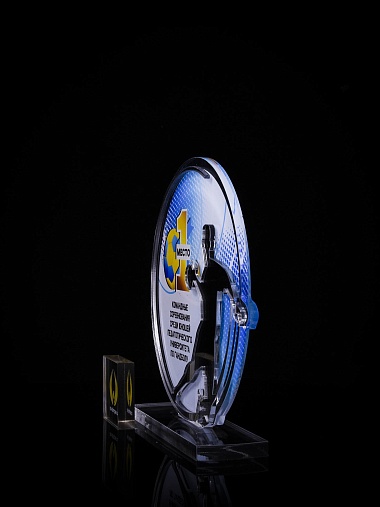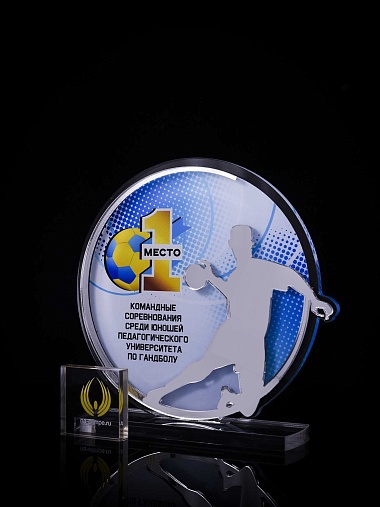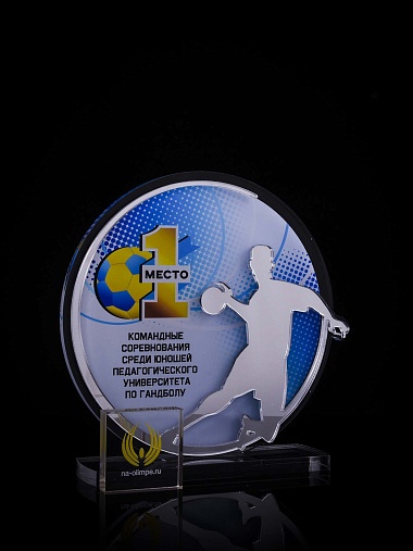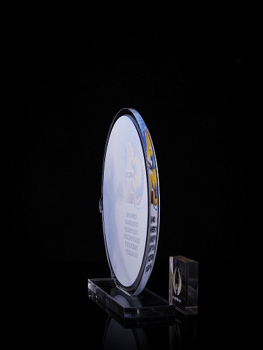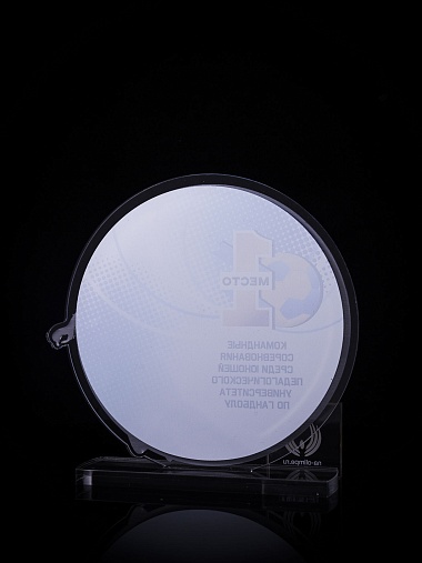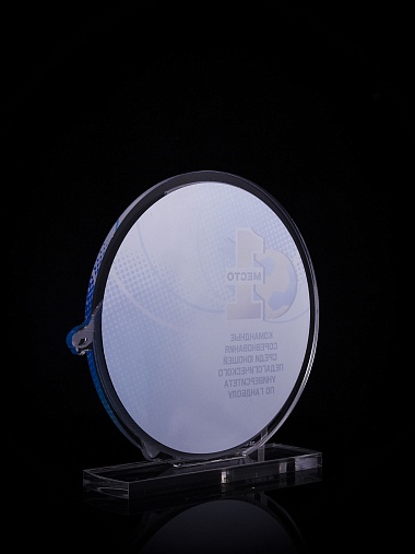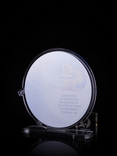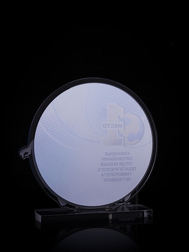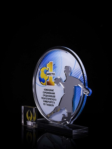 Приз из золотого и прозрачного акрила с цветным нанесением.