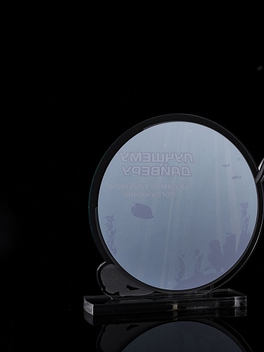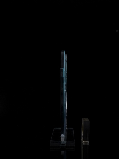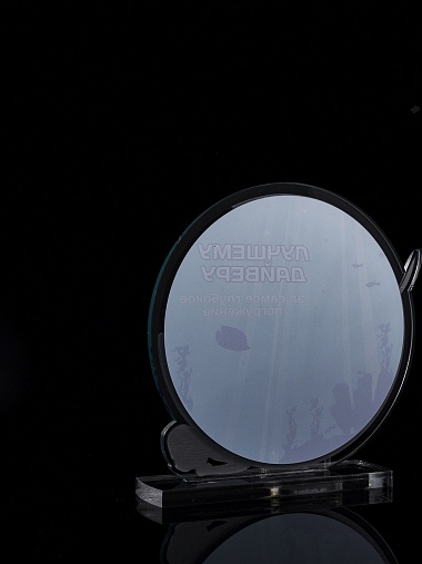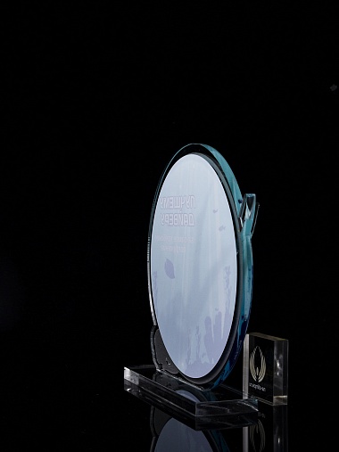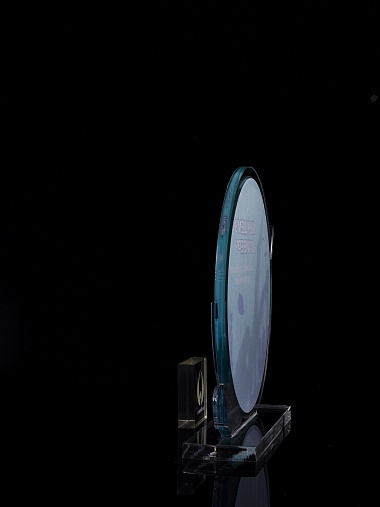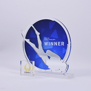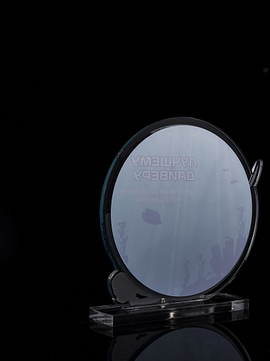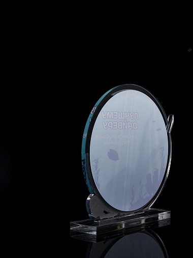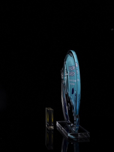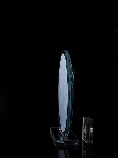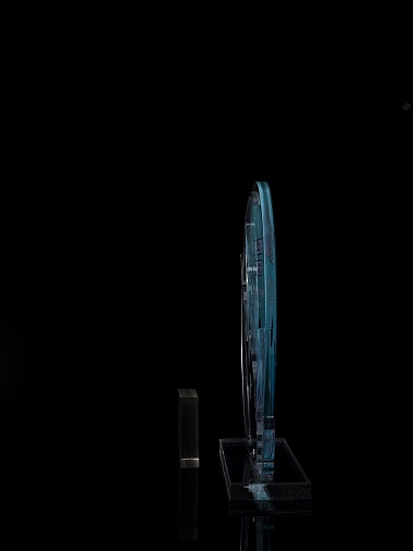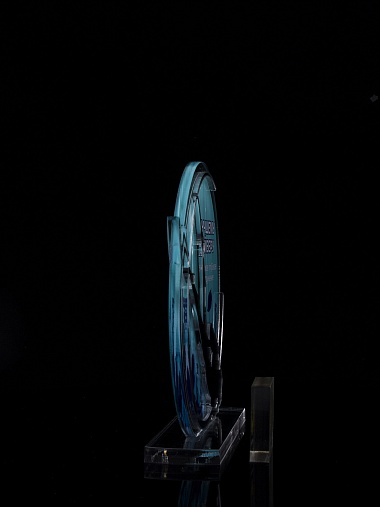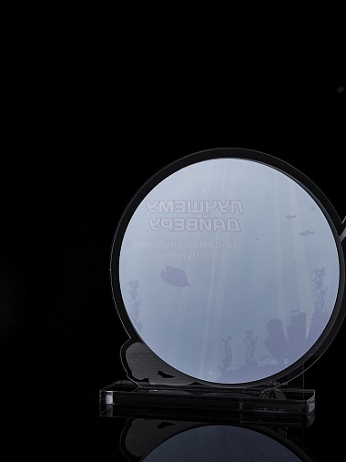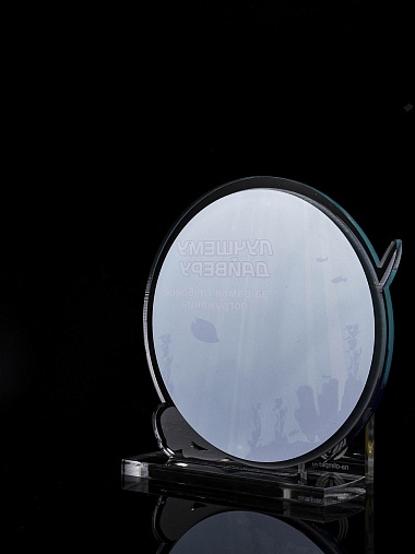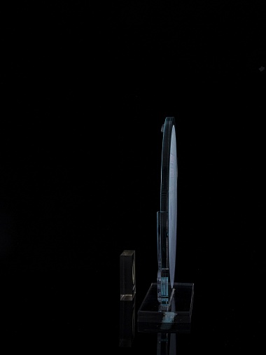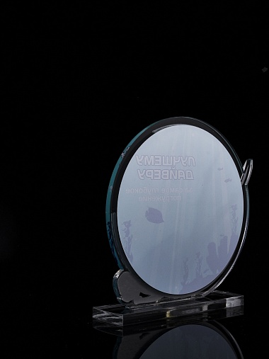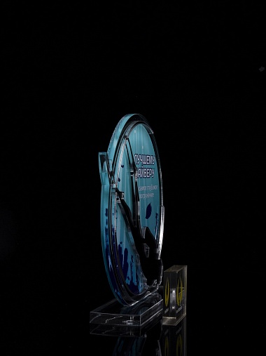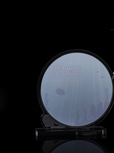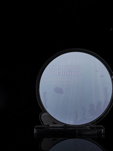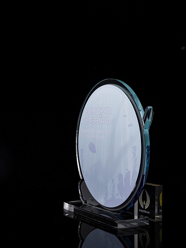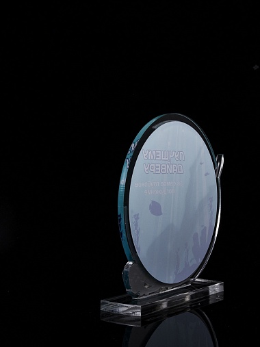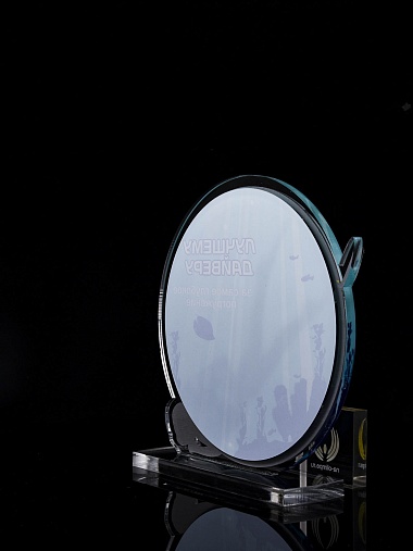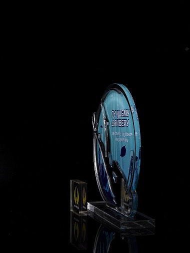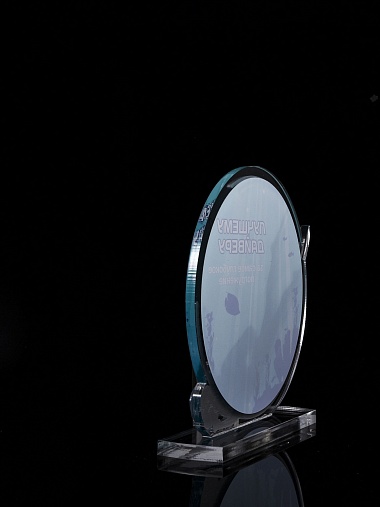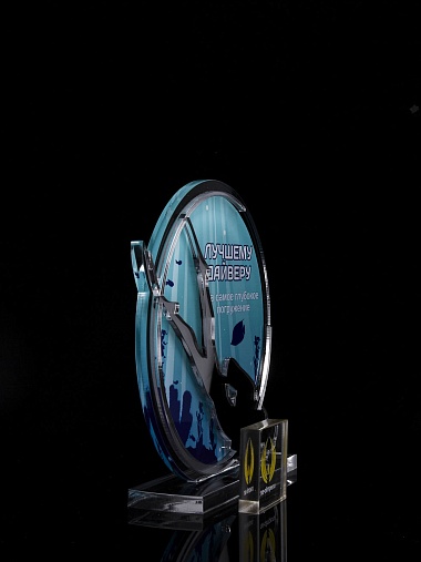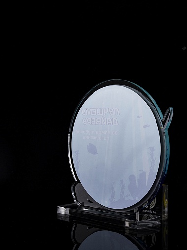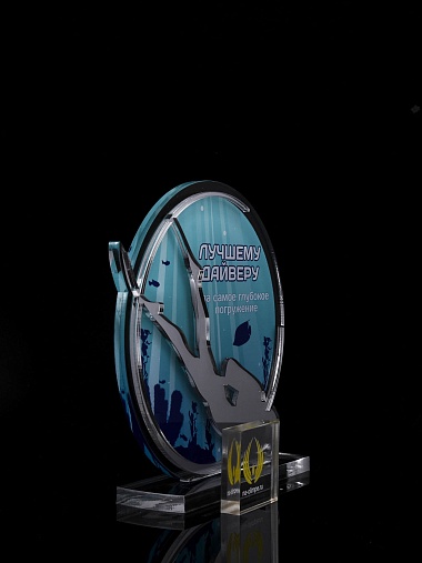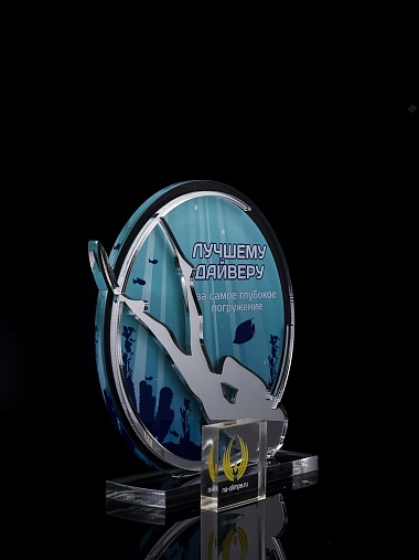 Приз из золотого и прозрачного акрила с цветным нанесением.