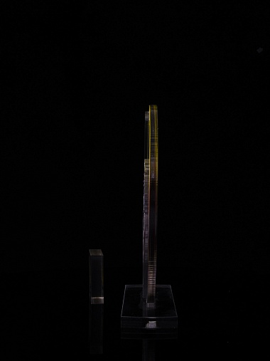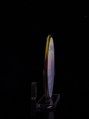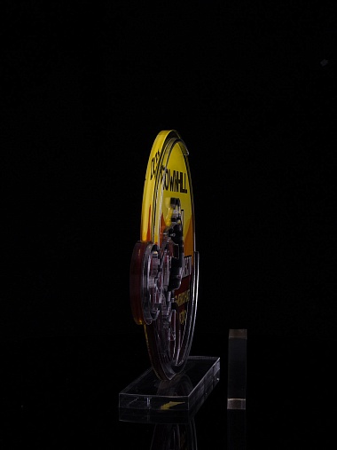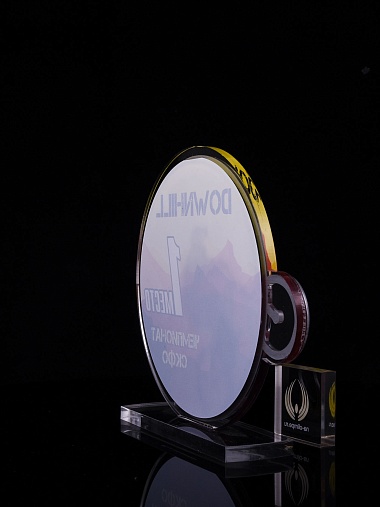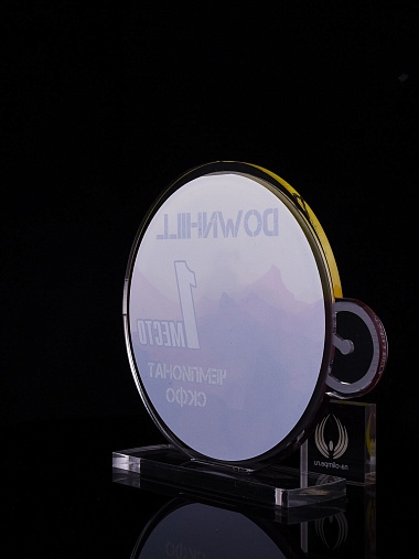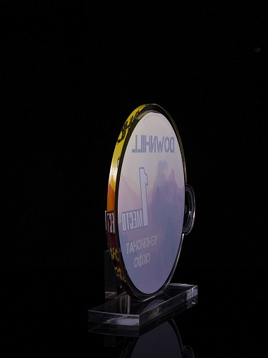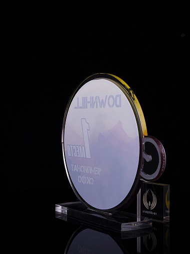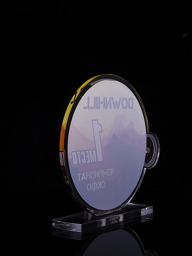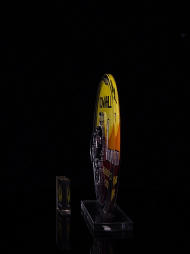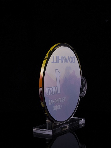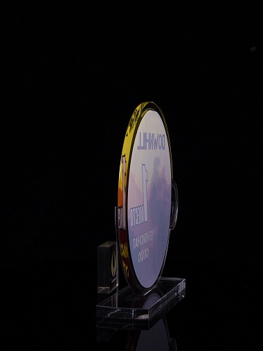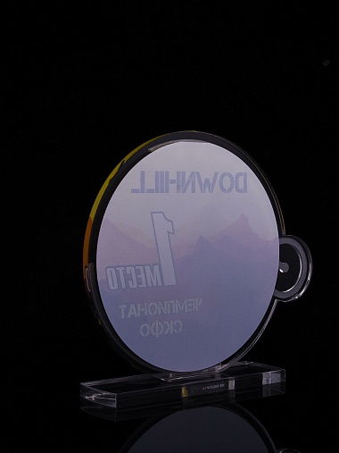 Приз из золотого и прозрачного акрила с цветным нанесением.