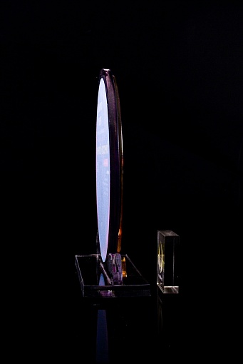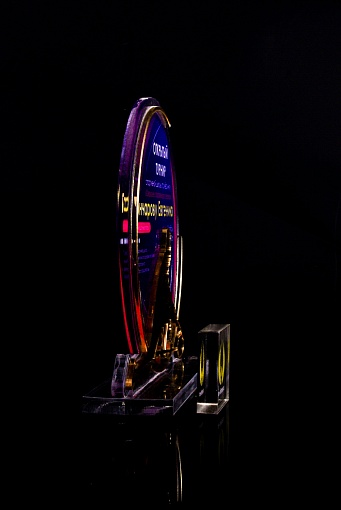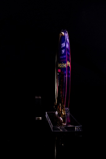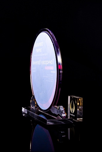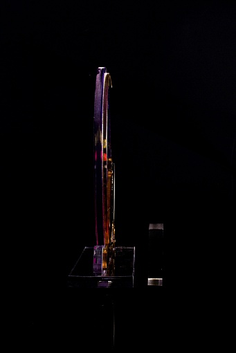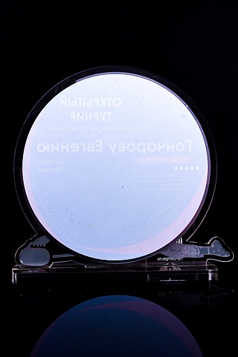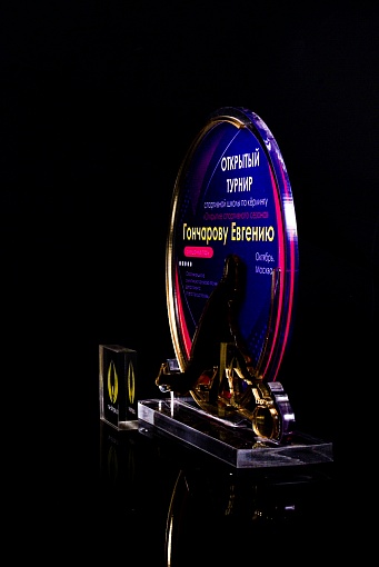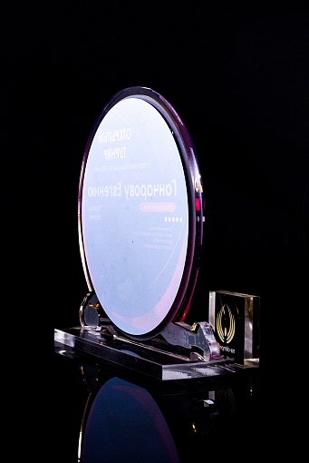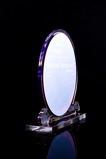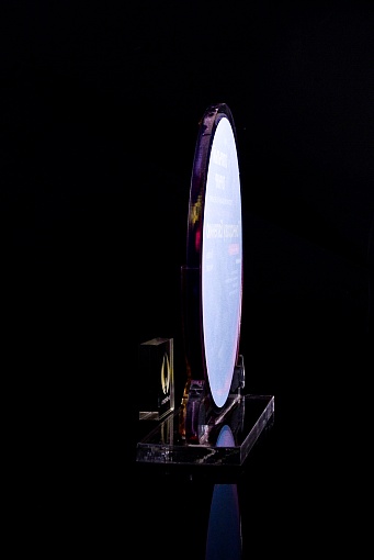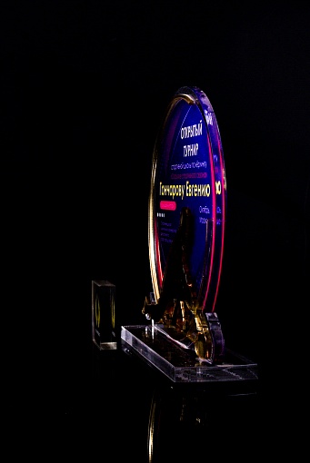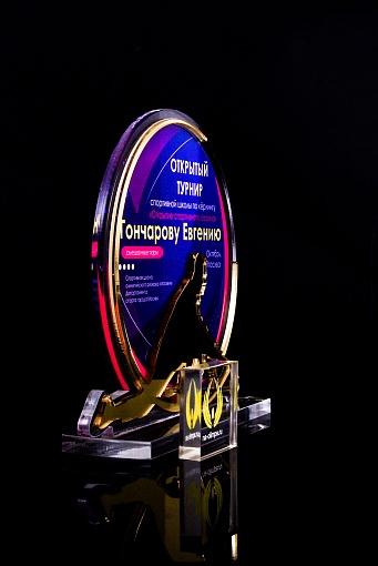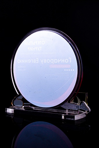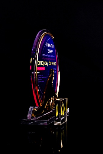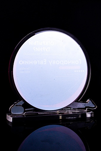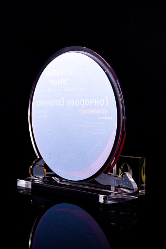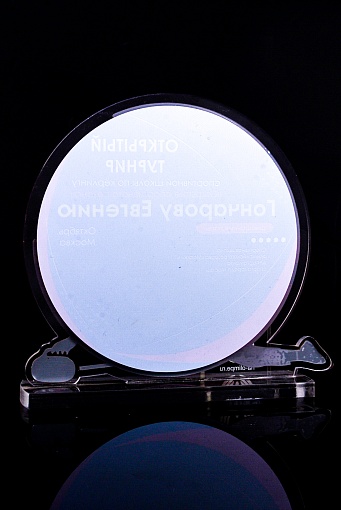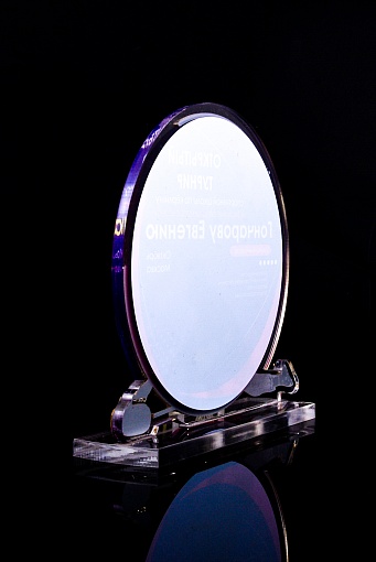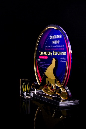 Приз из золотого и прозрачного акрила с цветным нанесением.