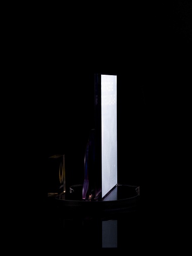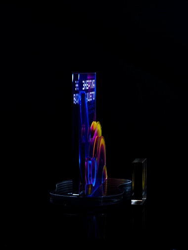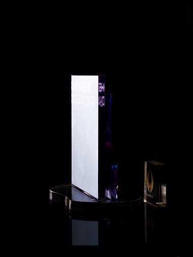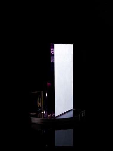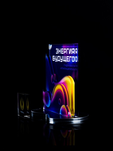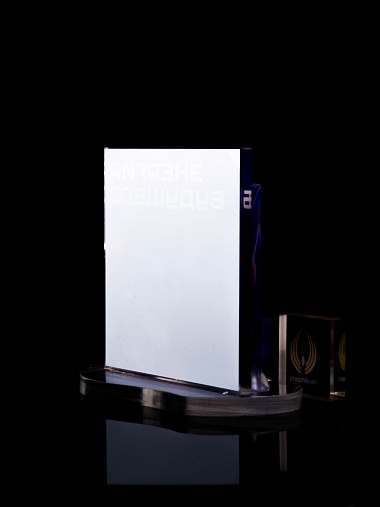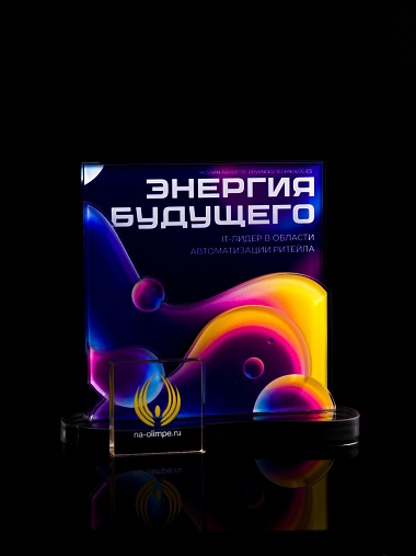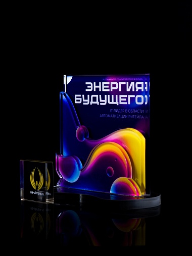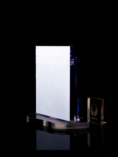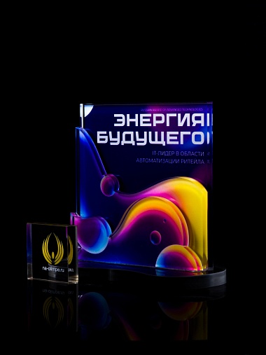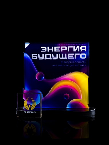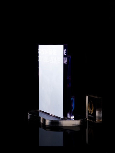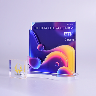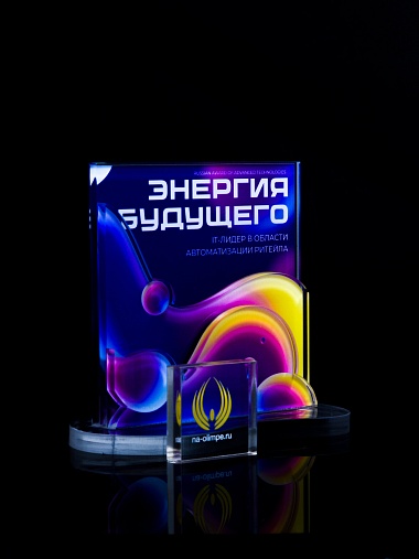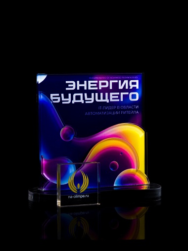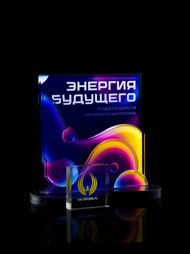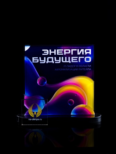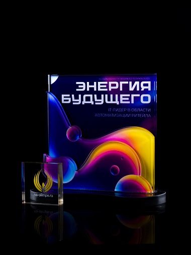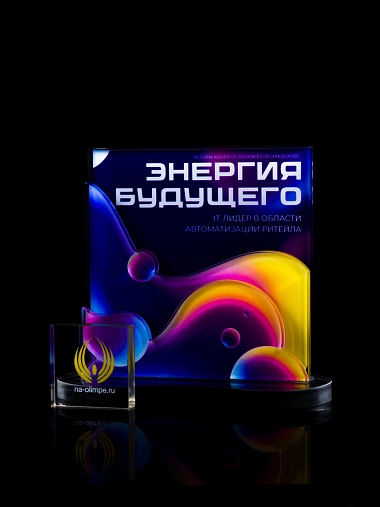 Приз из прозрачного акрила с цветной печатью.