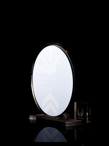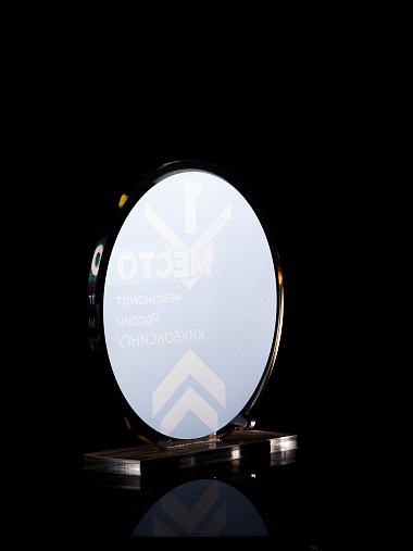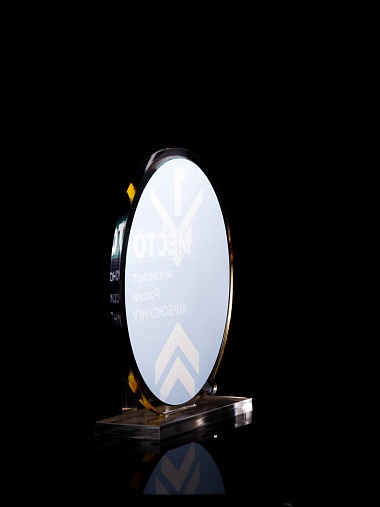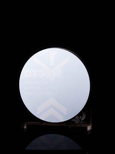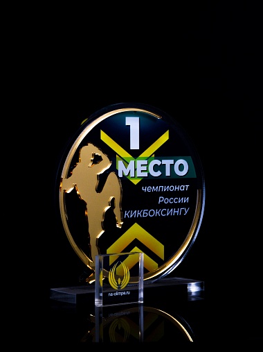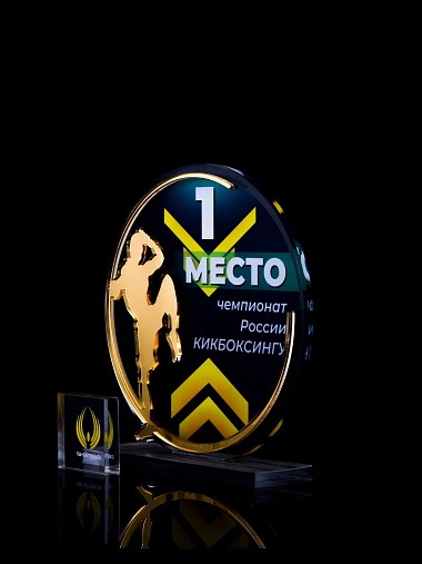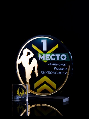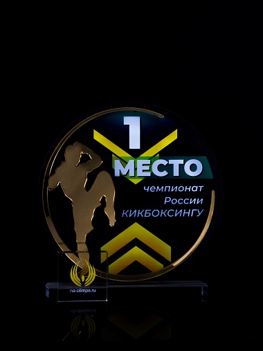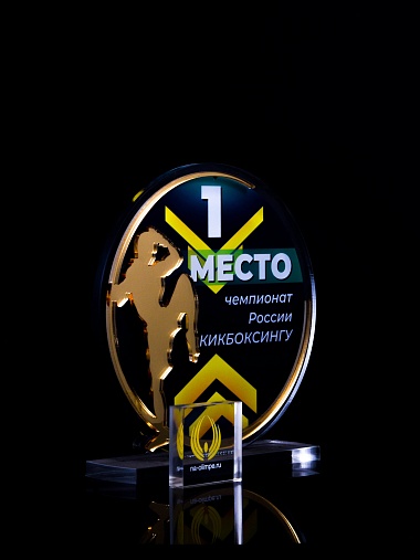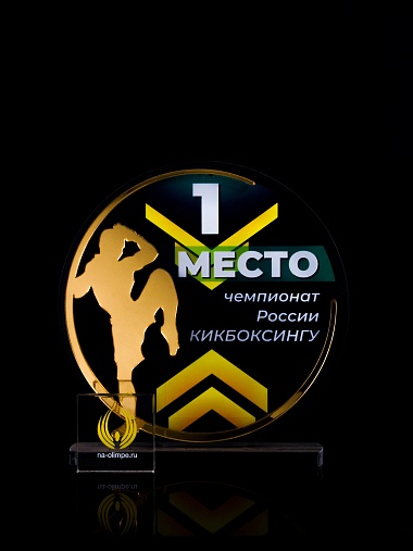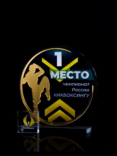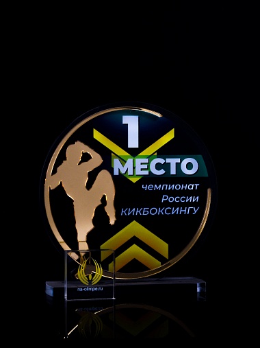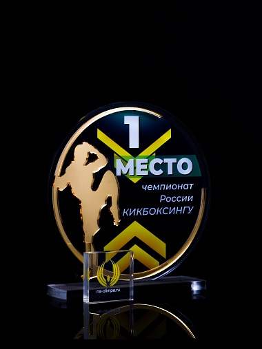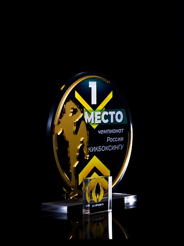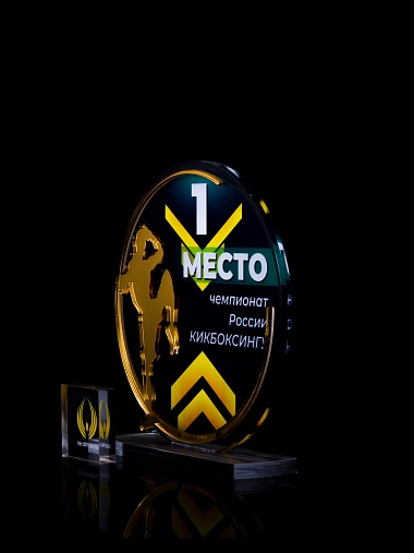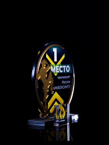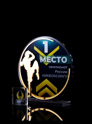 Приз из прозрачного и золотого акрила с цветной печатью.