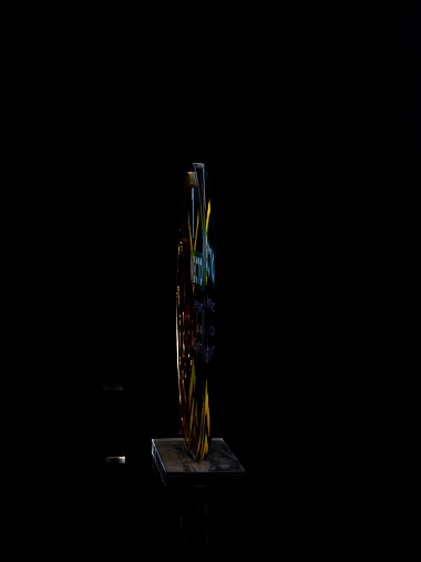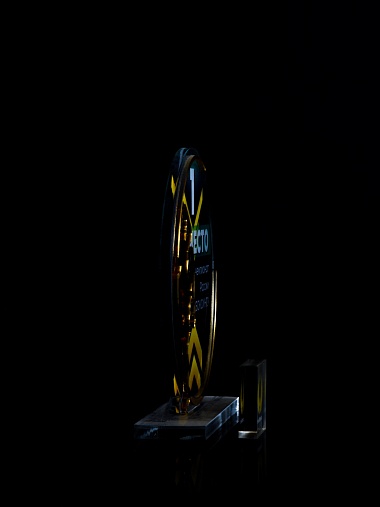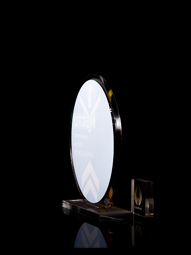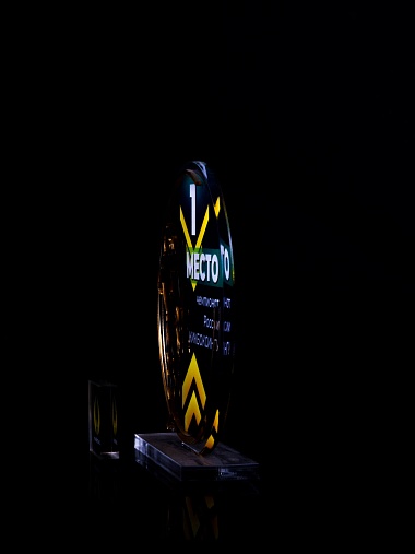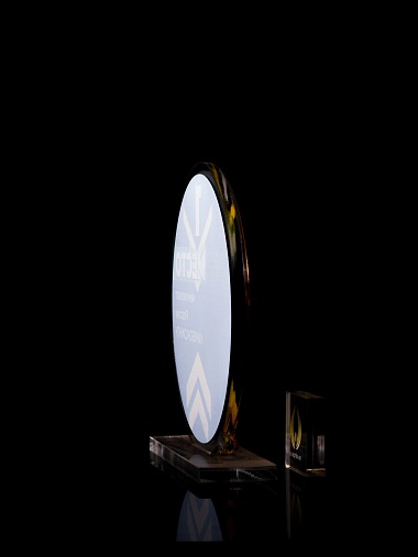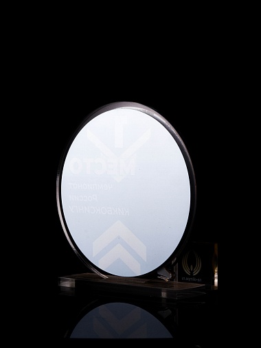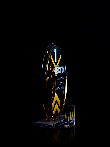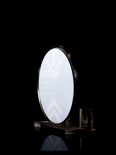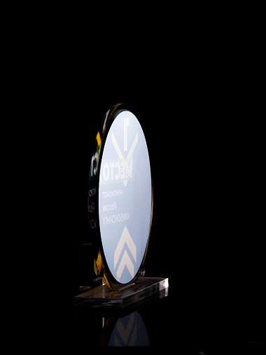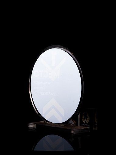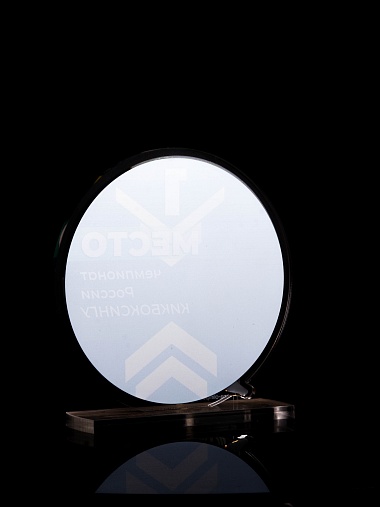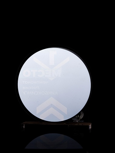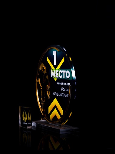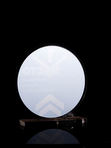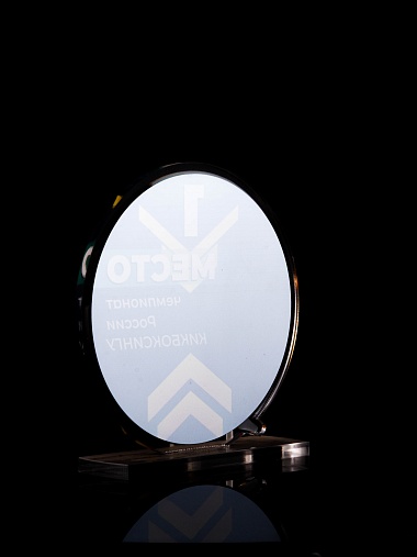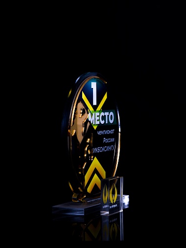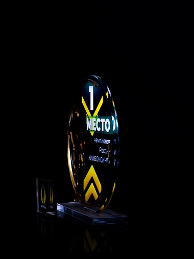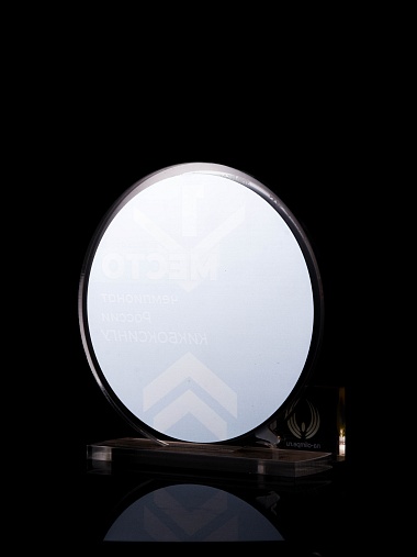 Приз из прозрачного и золотого акрила с цветной печатью.