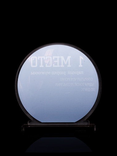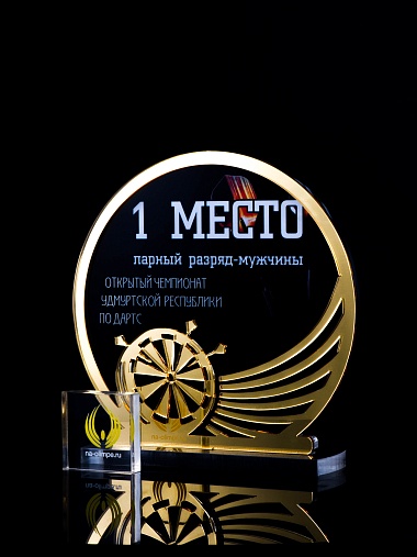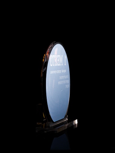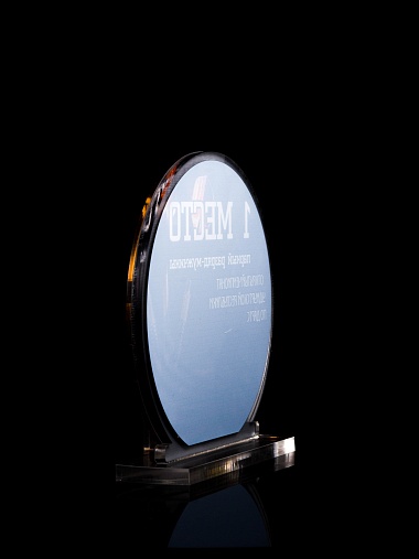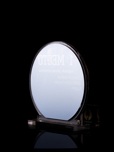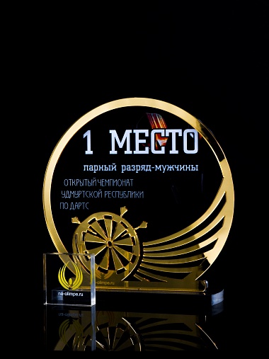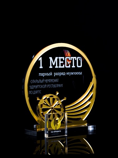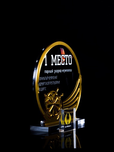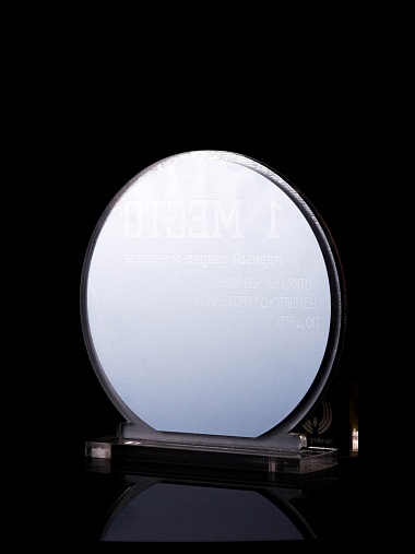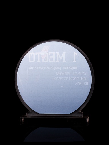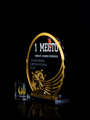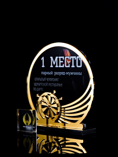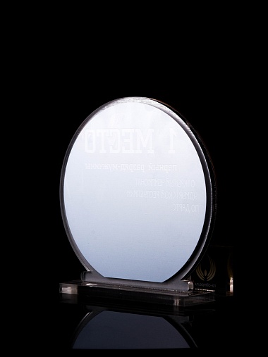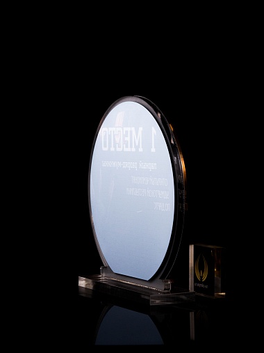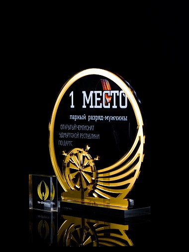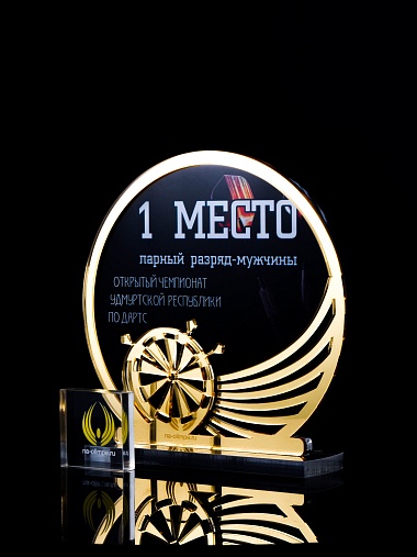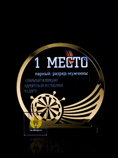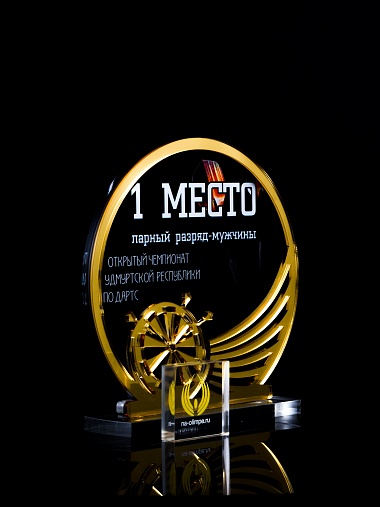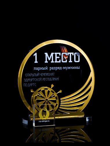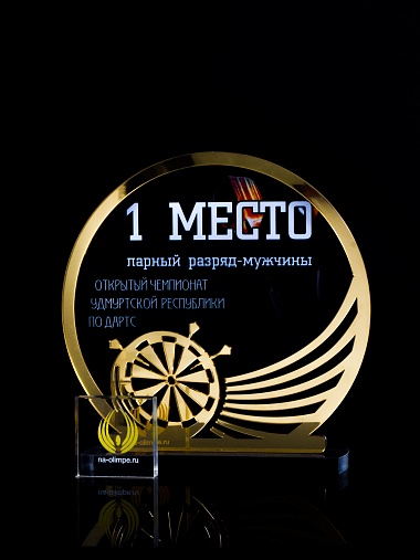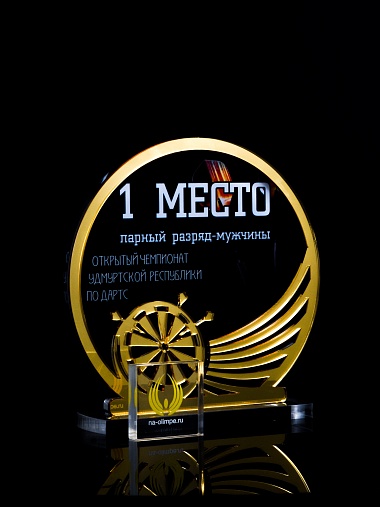Приз из прозрачного и золотого акрила с цветной печатью.