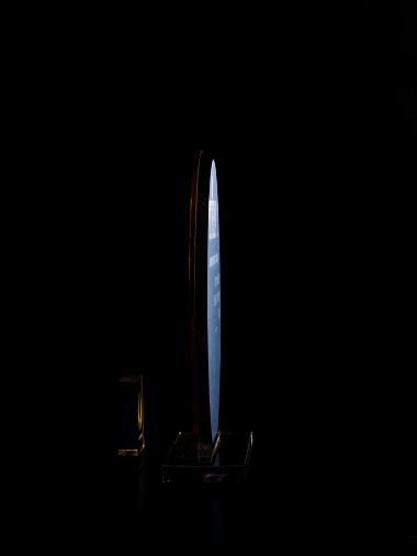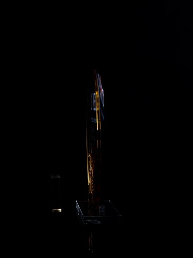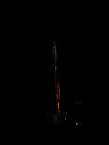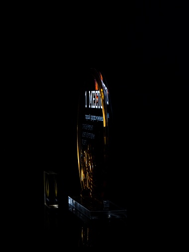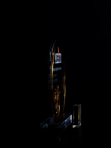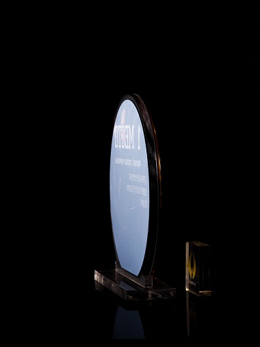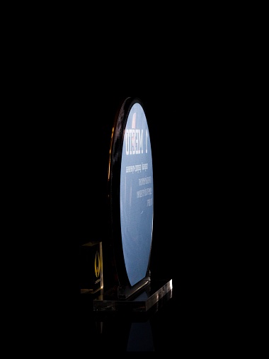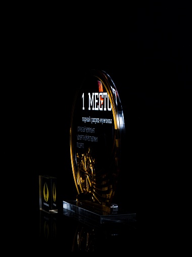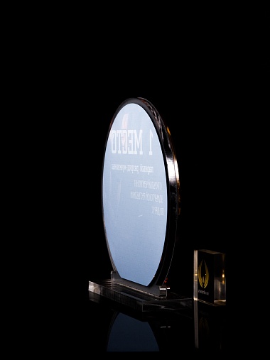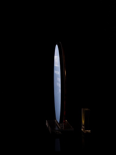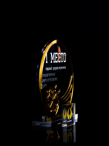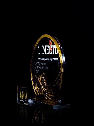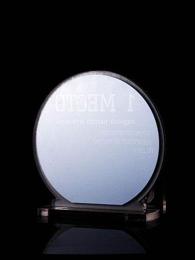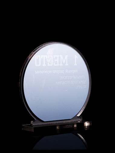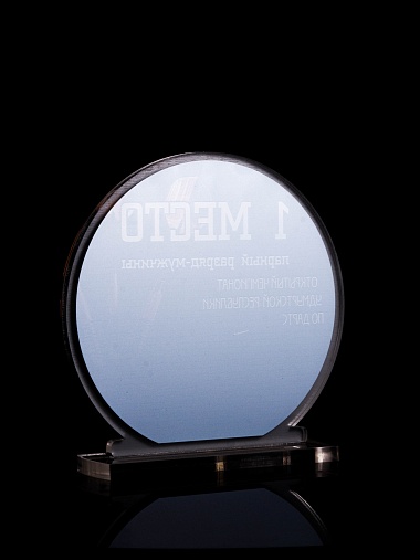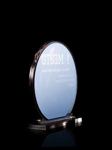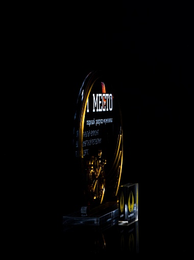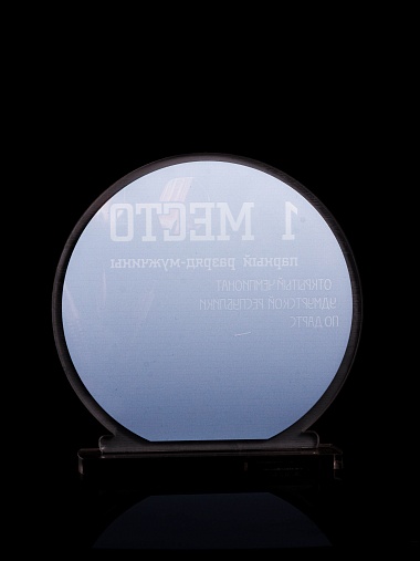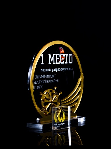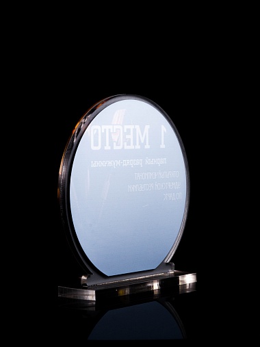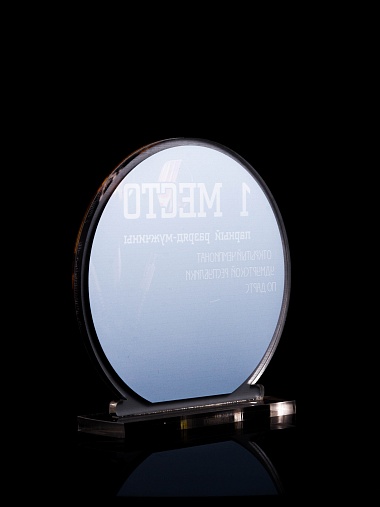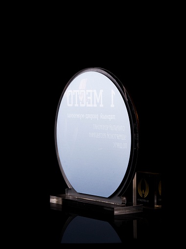 Приз из прозрачного и золотого акрила с цветной печатью.