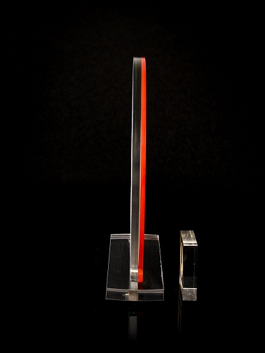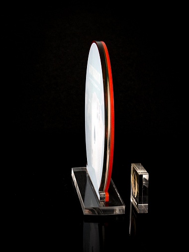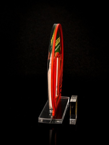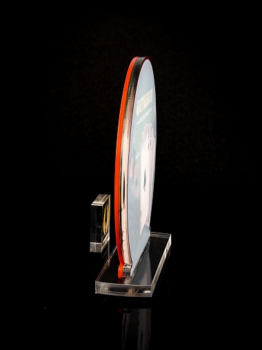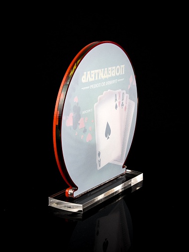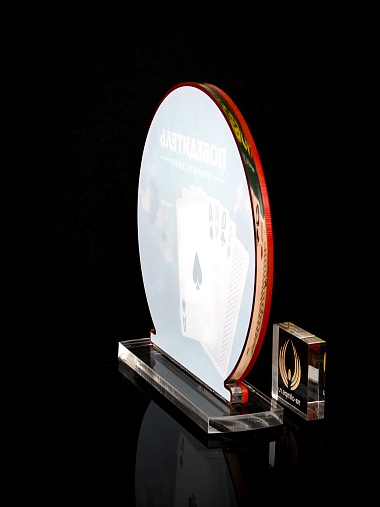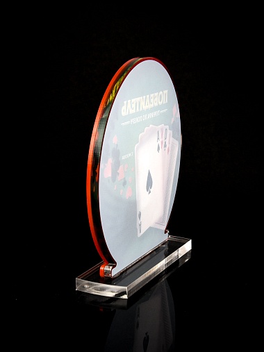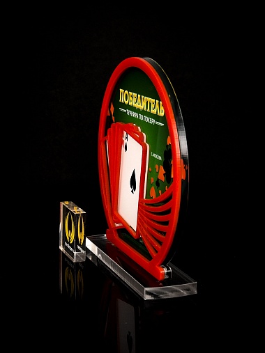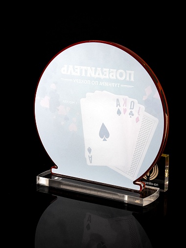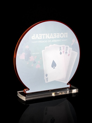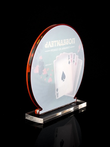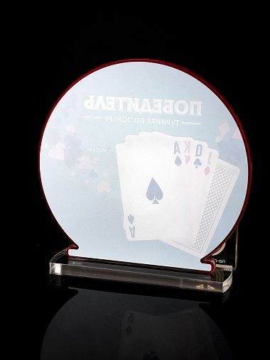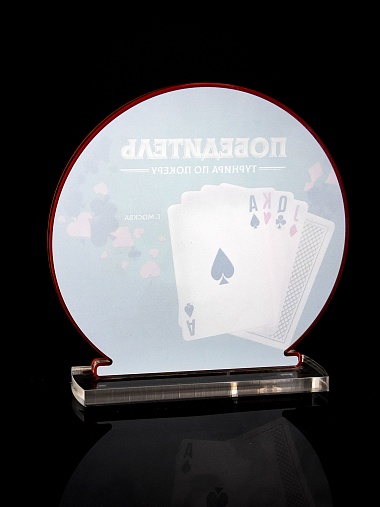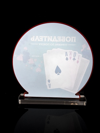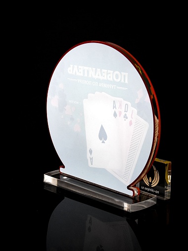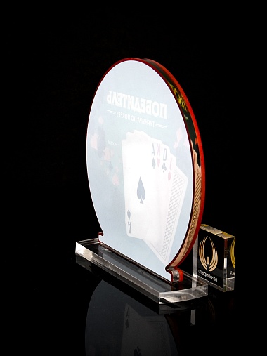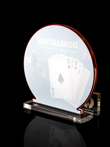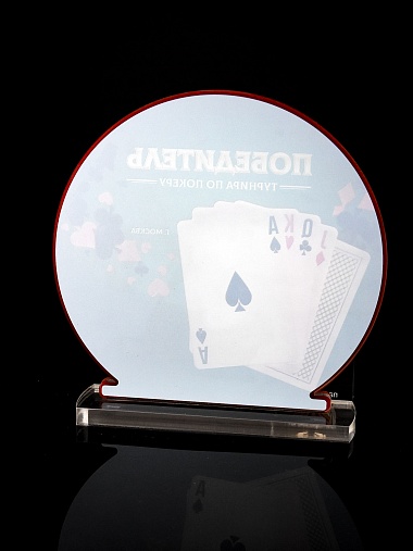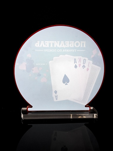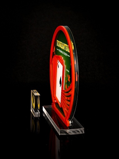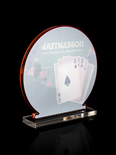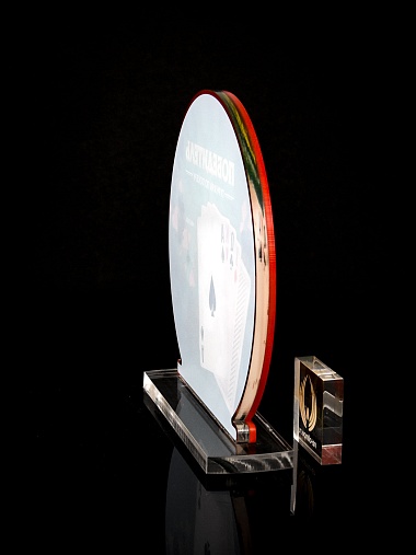 Приз из прозрачного и красного акрила с цветной печатью.
