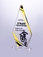 Награда из прозрачного акрила с цветной печатью на постаменте. Акриловая вертикальная основа вставляется в постамент в паз. Такая конструкция проста и надежна в эксплуатации и при транспортировке, так как не имеет склеенных элементов.