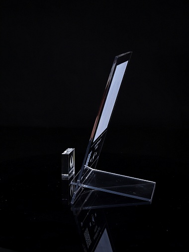 Награда из прозрачного акрила с цветной печатью. толщиной 3 мм.