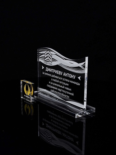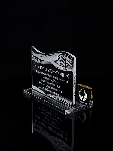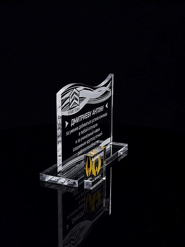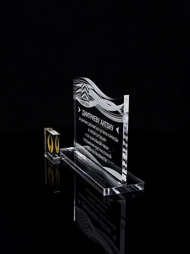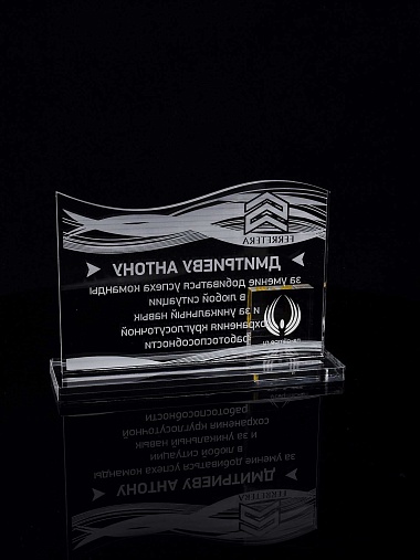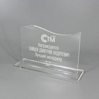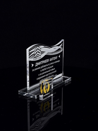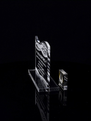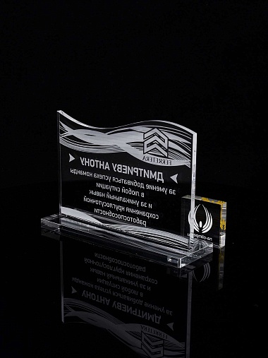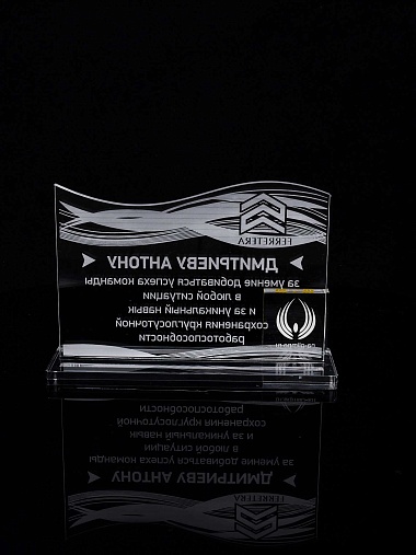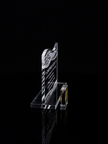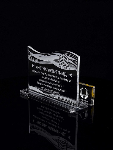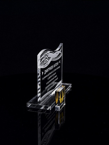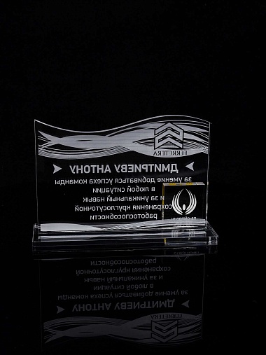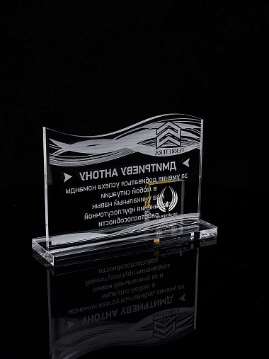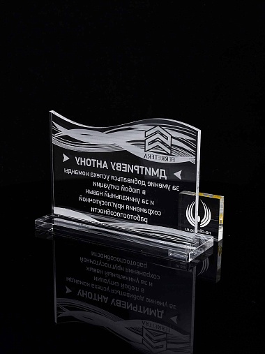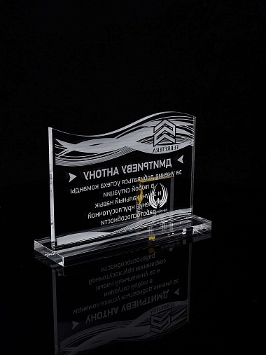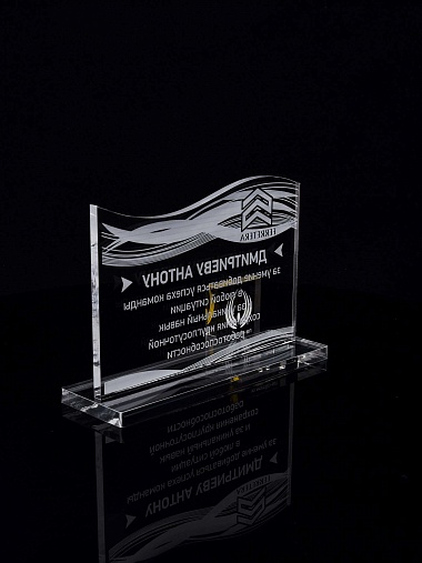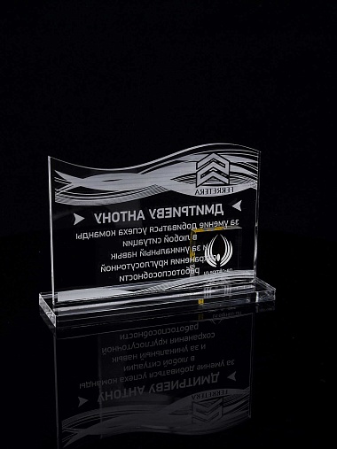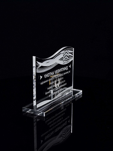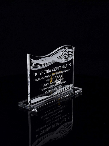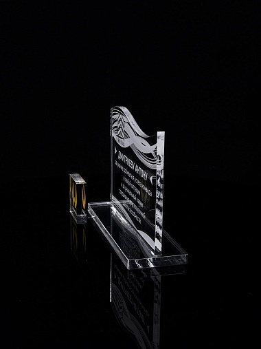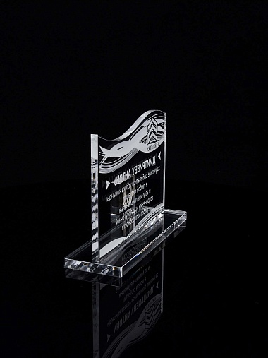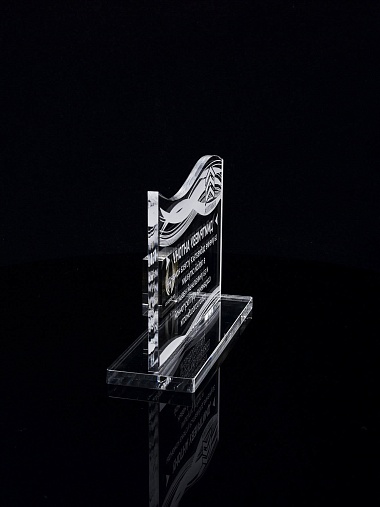 Приз из прозрачного акрила с лазерной гравировкой.