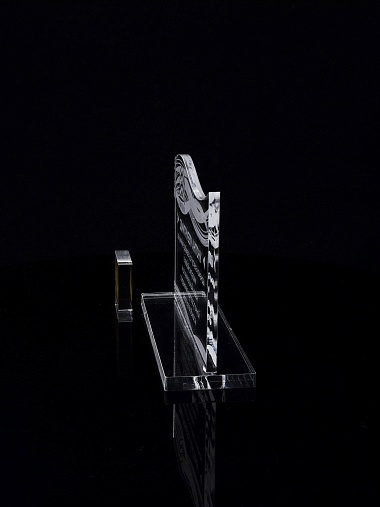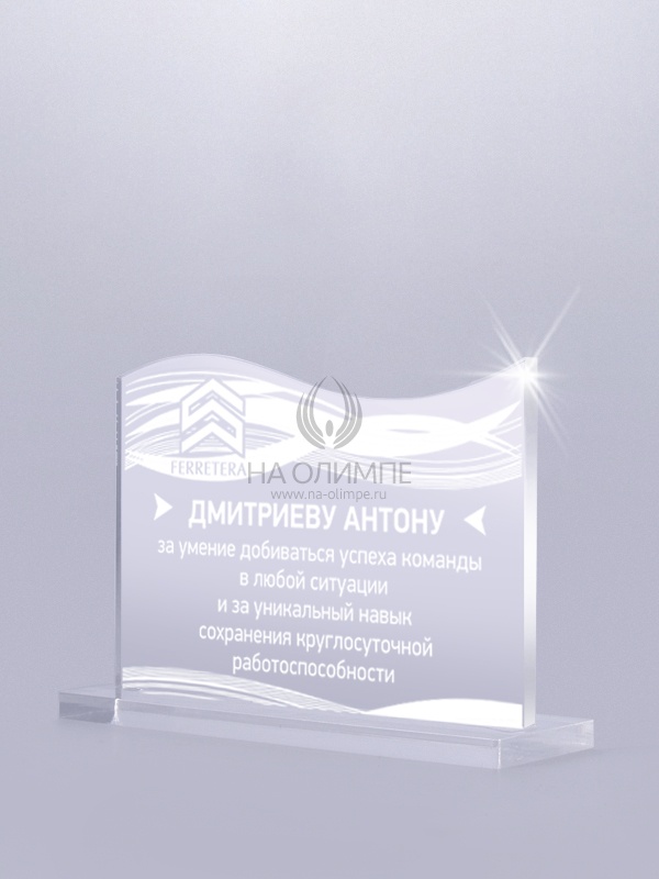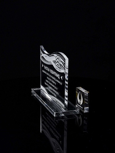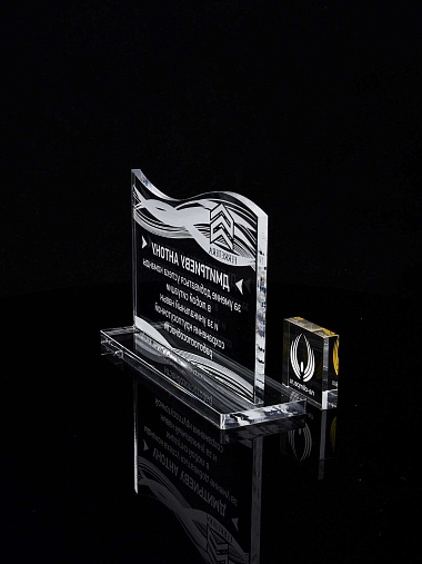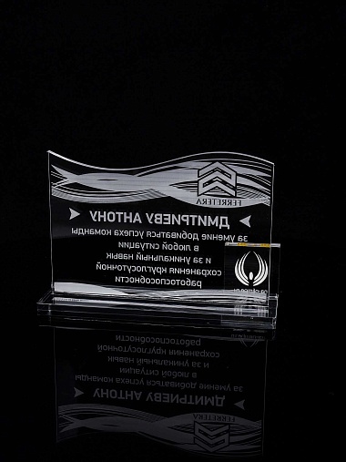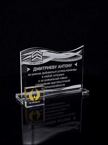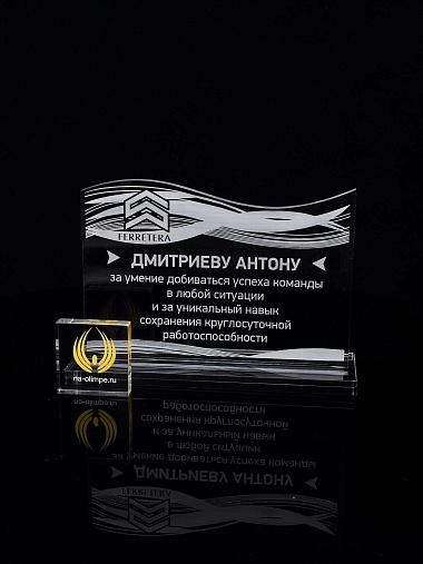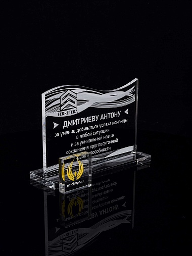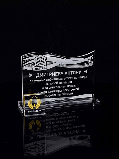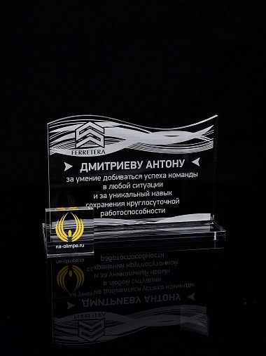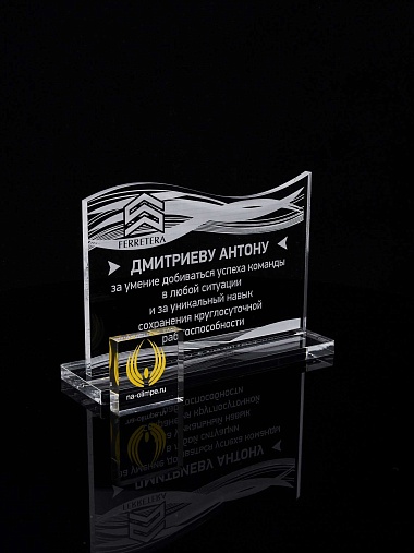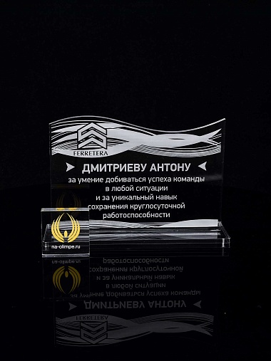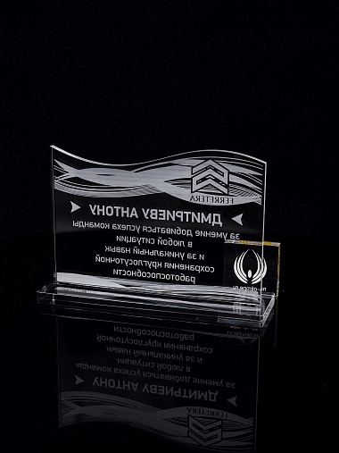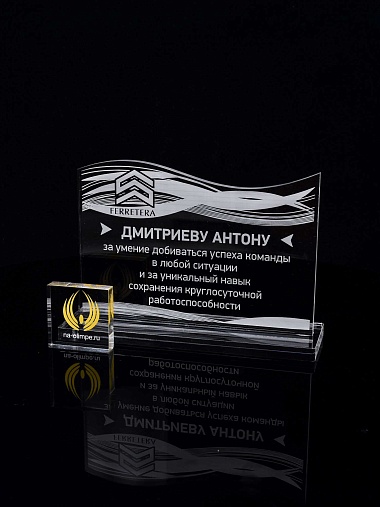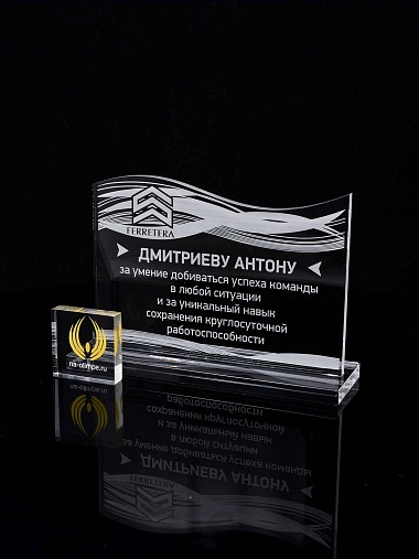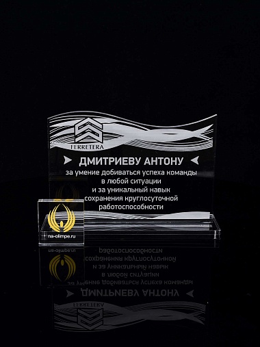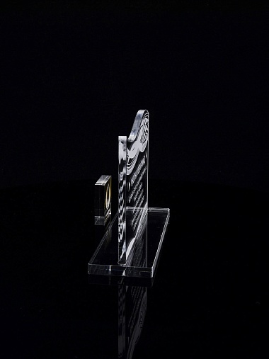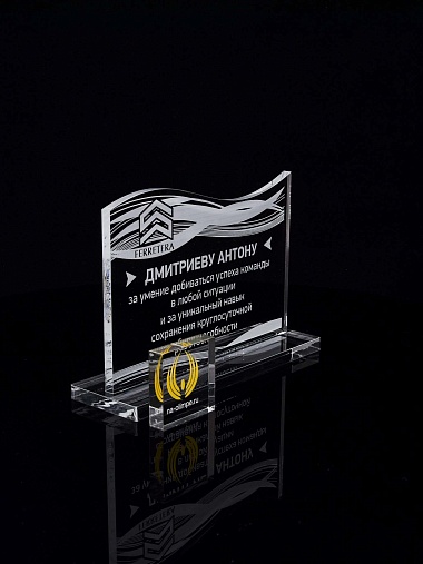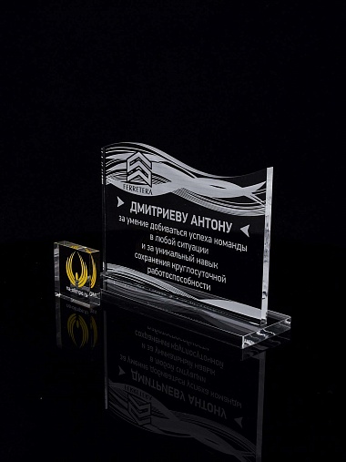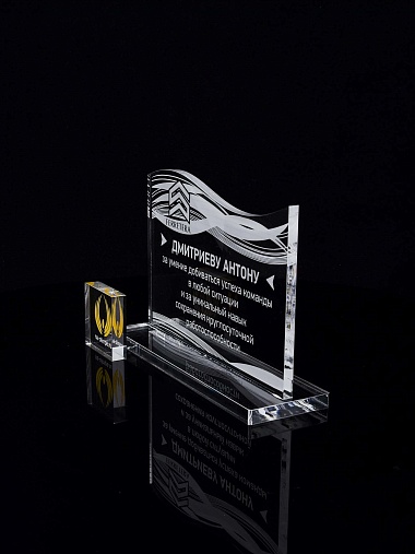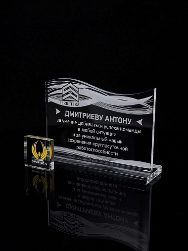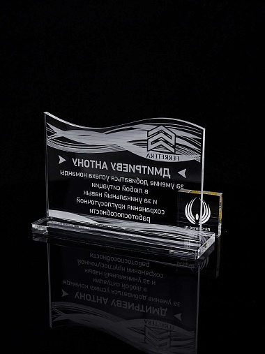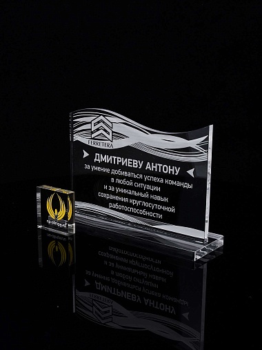 Приз из прозрачного акрила с лазерной гравировкой.