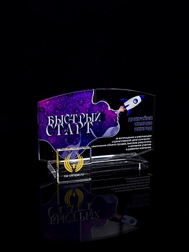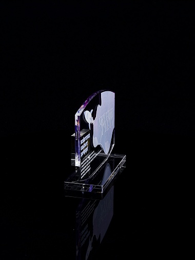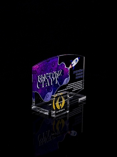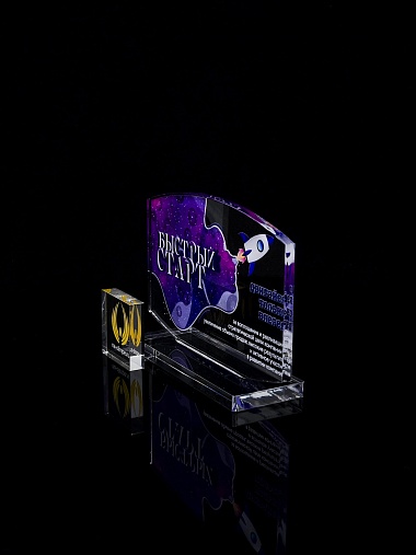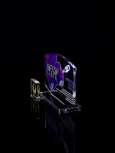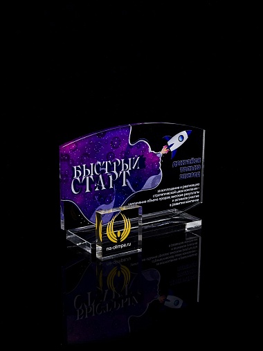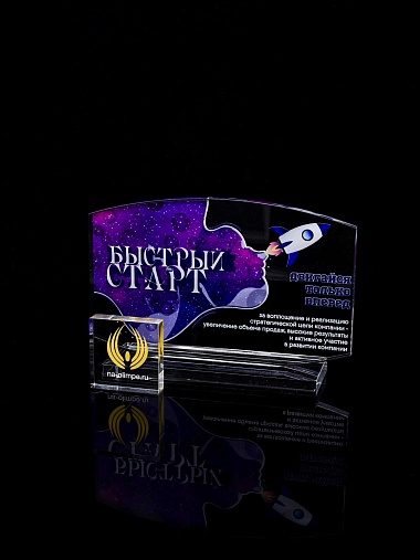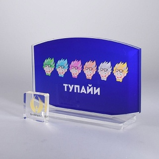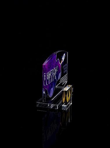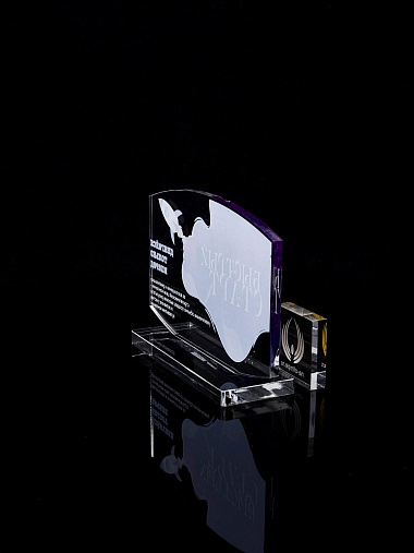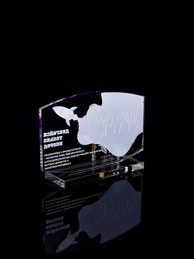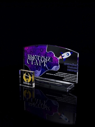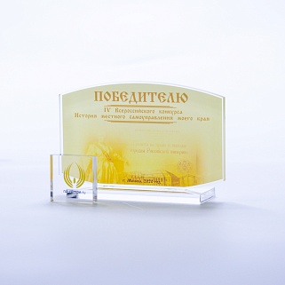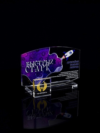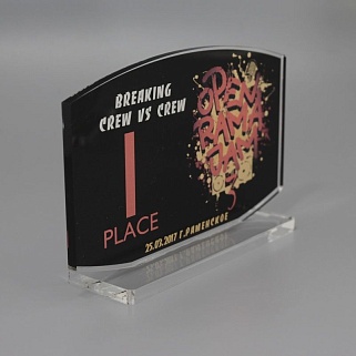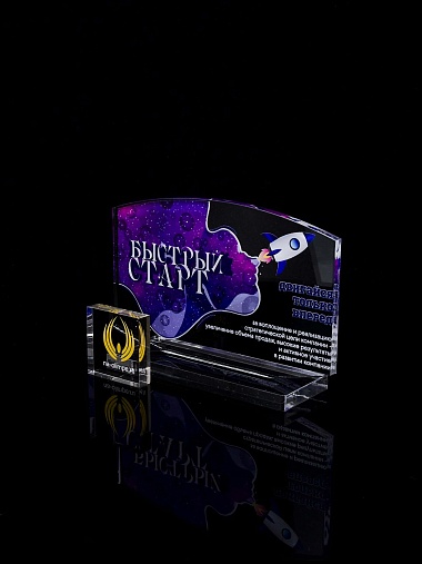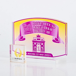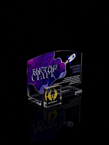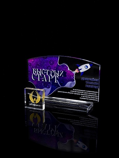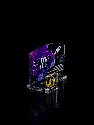 Приз из прозрачного акрила с цветной печатью.