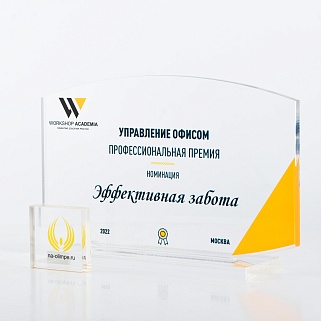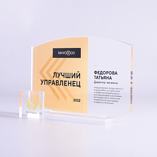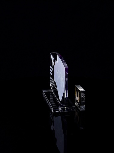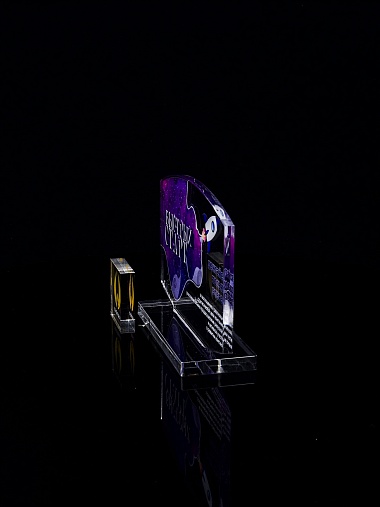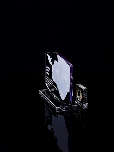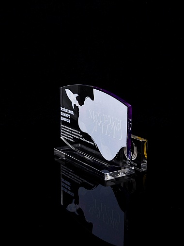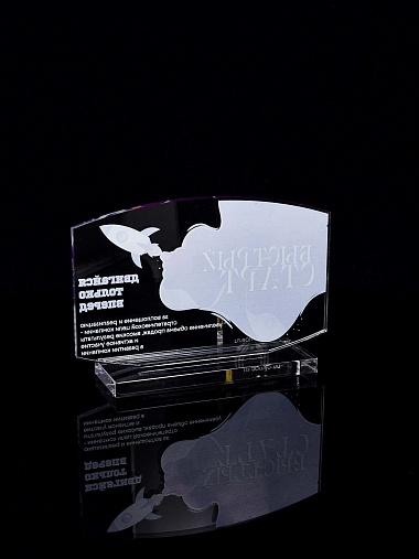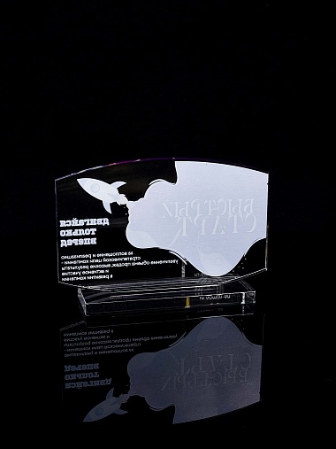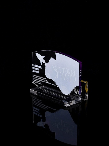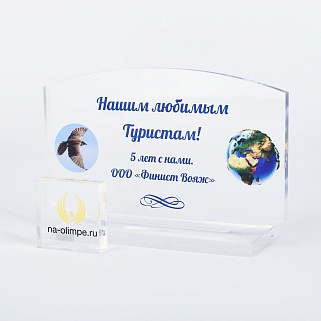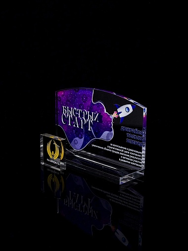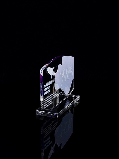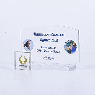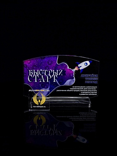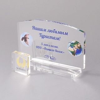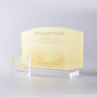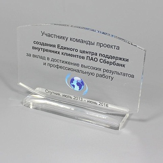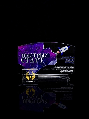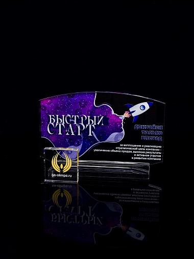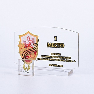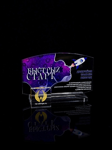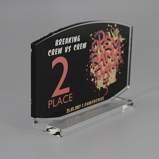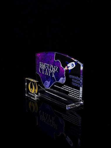 Приз из прозрачного акрила с цветной печатью.