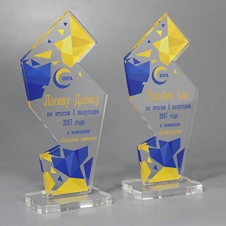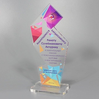 Приз из акрила 37-180 с цветной печатью, высота 18 см