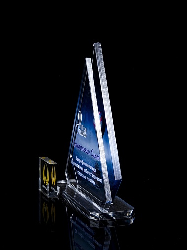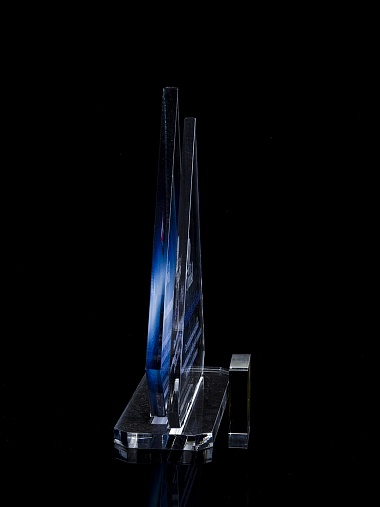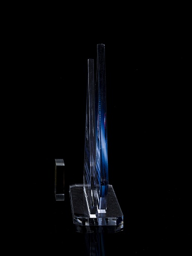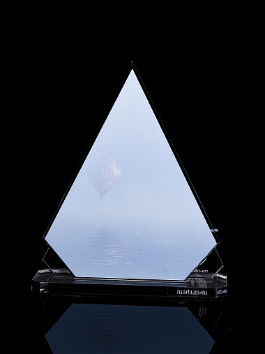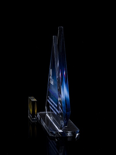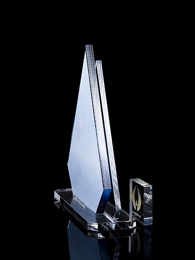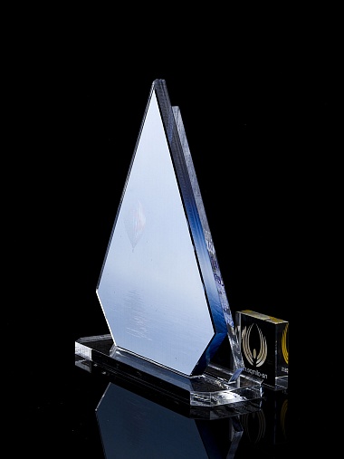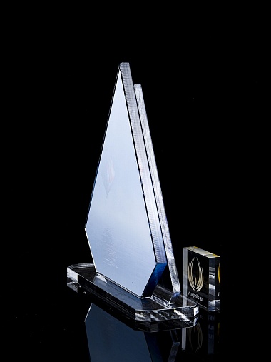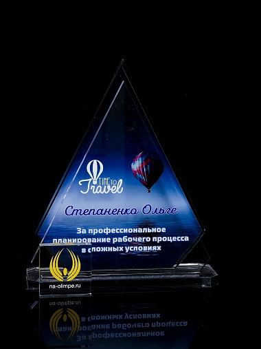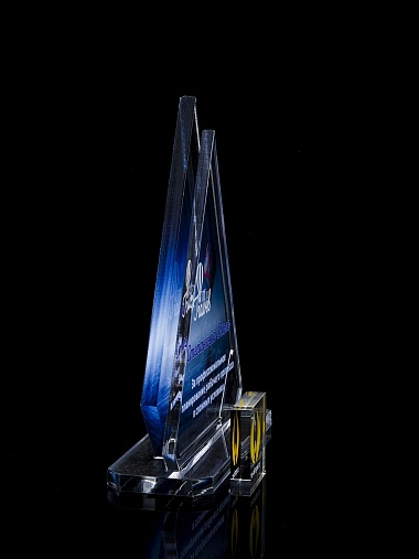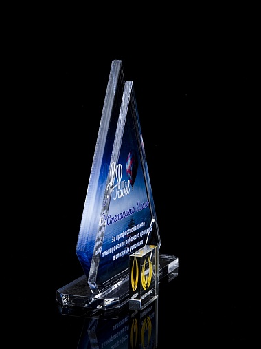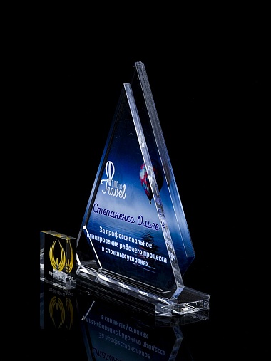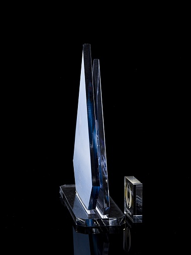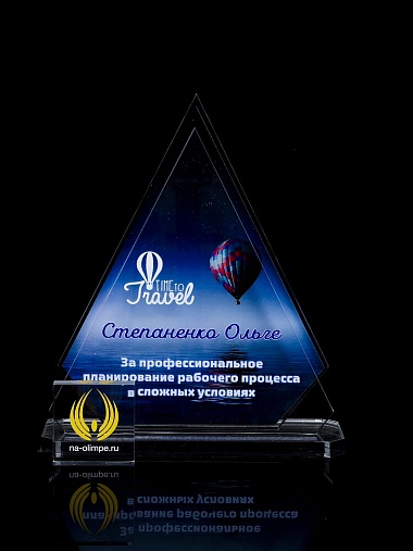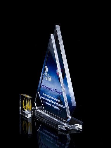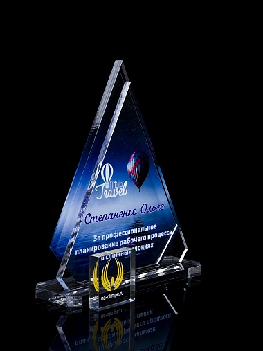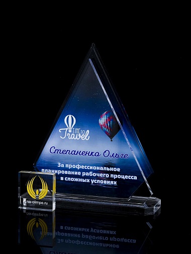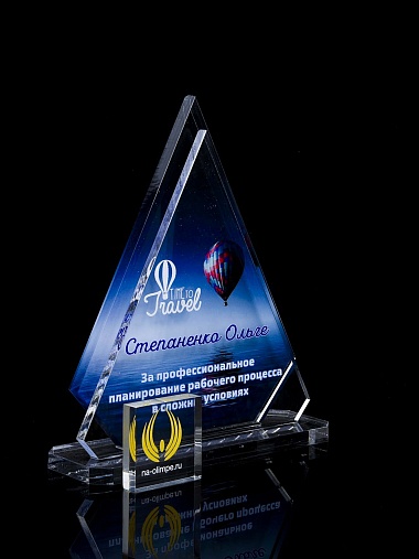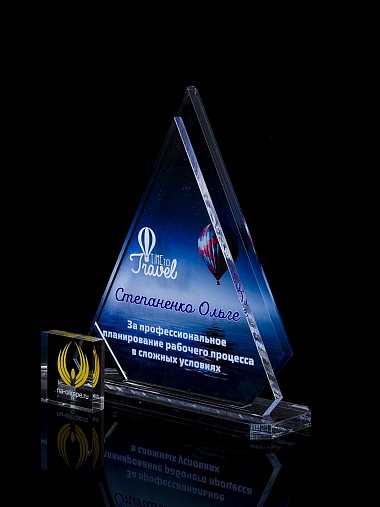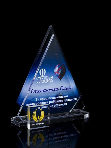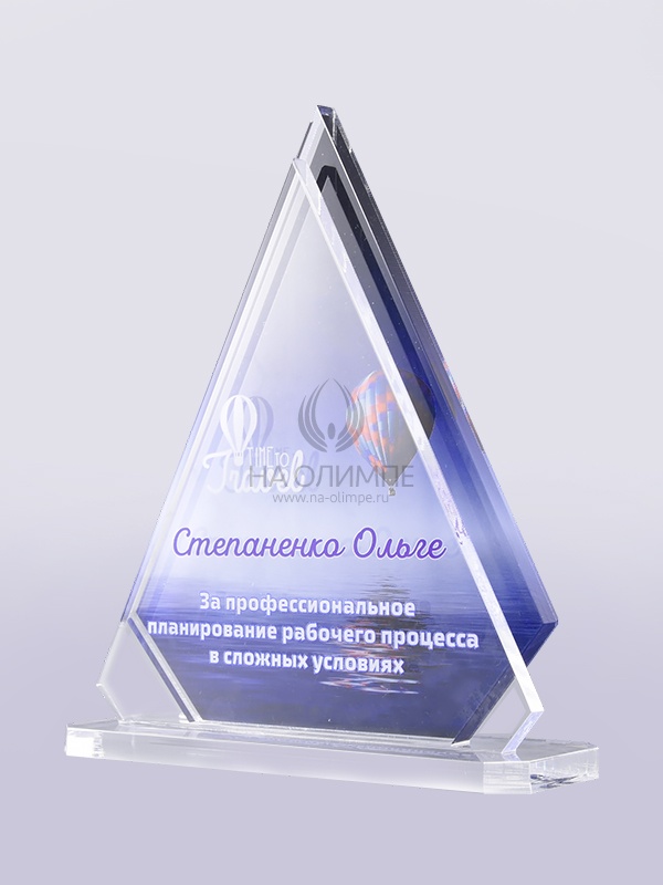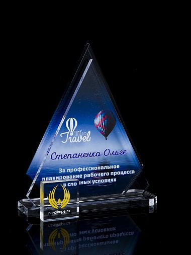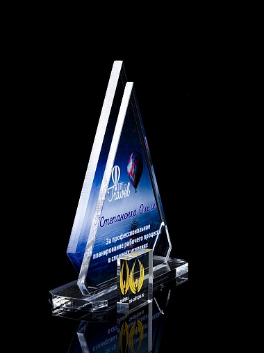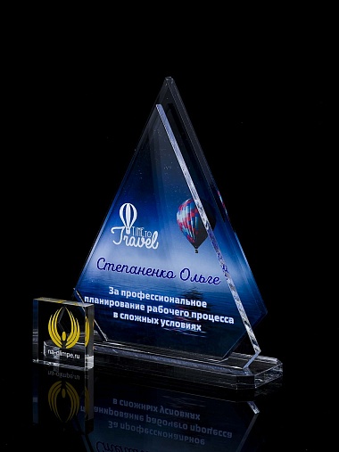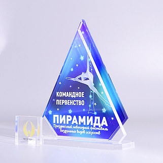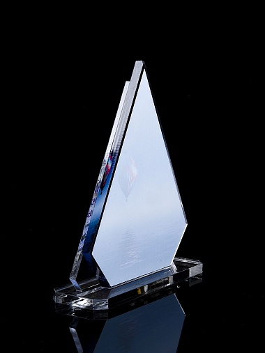 Приз из прозрачного акрила с цветной печатью.