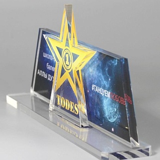 Приз из акрила Звезда 58 с цветным нанесением, высота 12 см