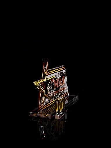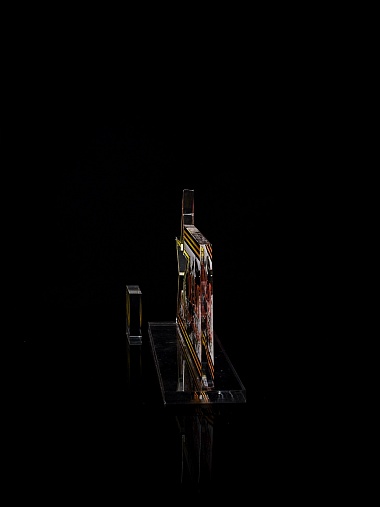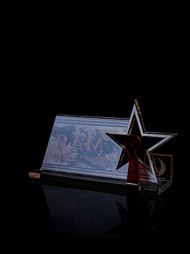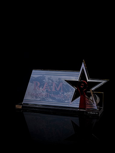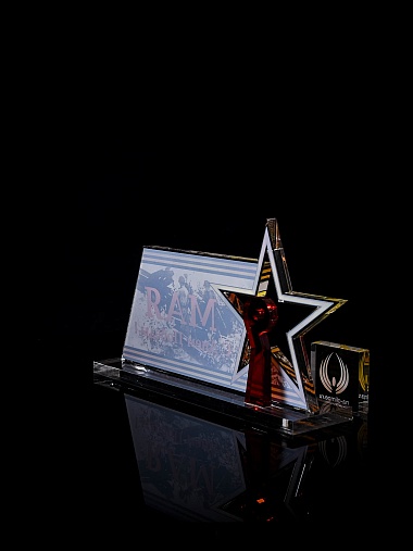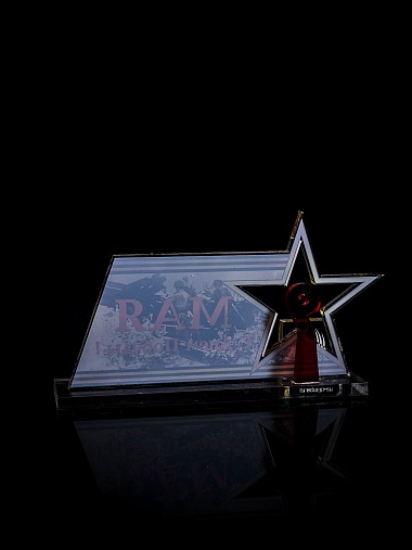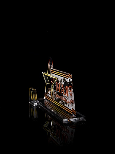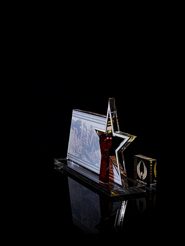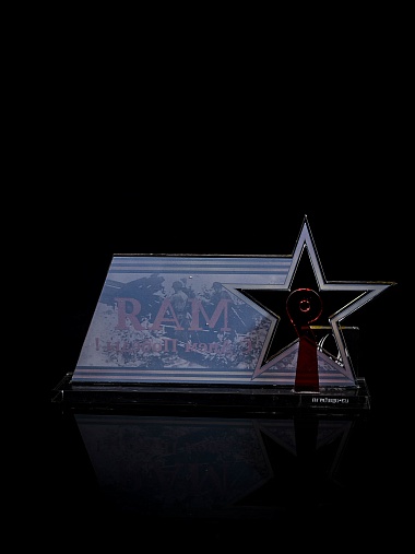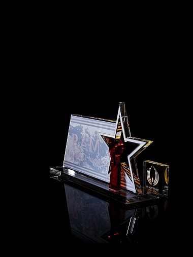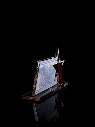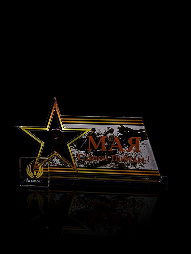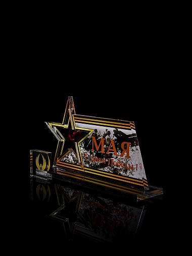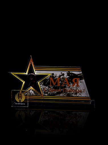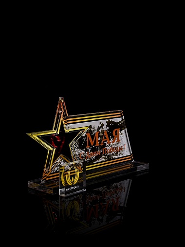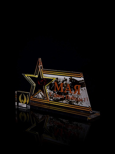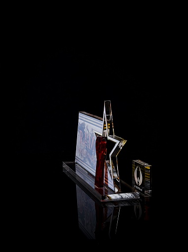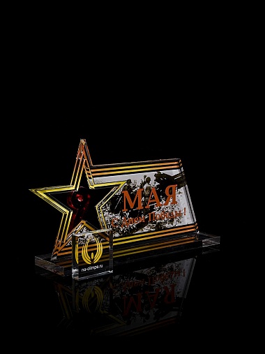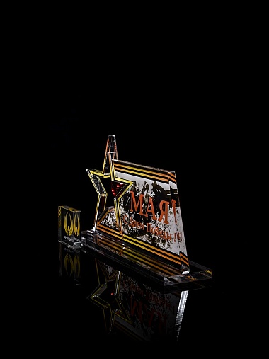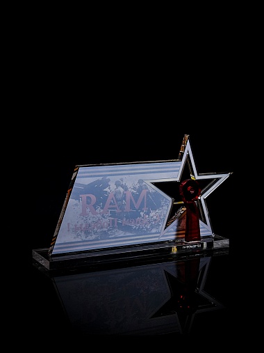 Приз из прозрачного акрила с табличкой и полноцветным нанесением.