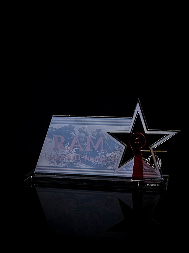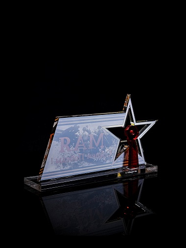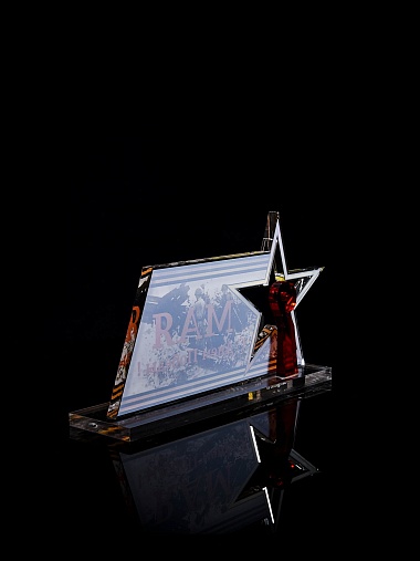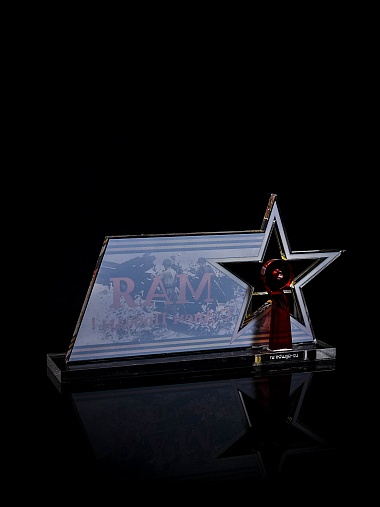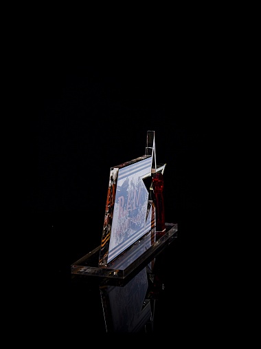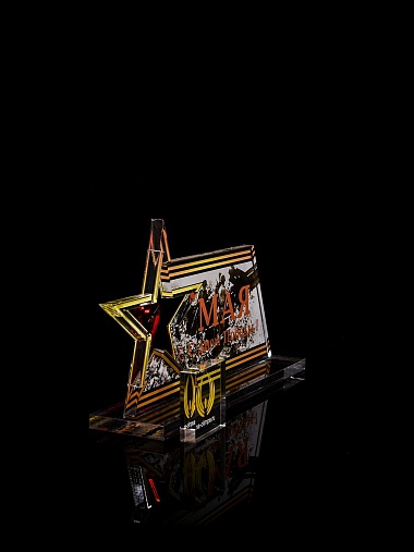 Приз из прозрачного акрила с табличкой и полноцветным нанесением.