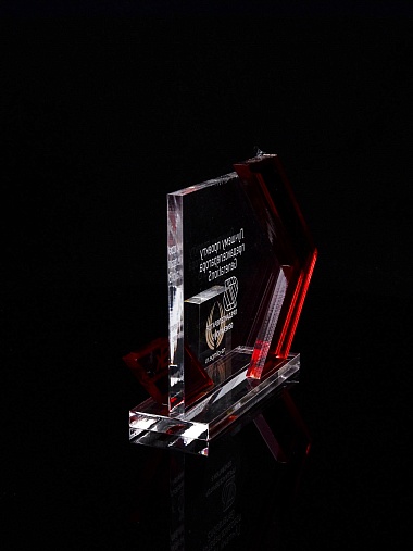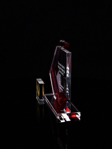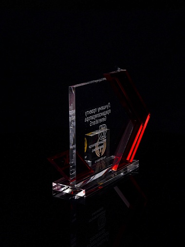 Приз из прозрачного акрила с гравировкой.
