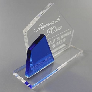 Приз из акрила 70Bl-120 с гравировкой, высота 12 см