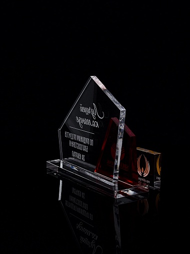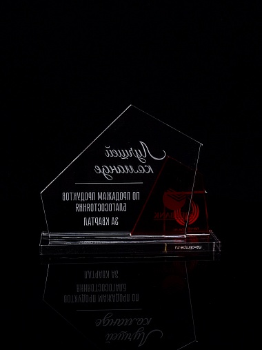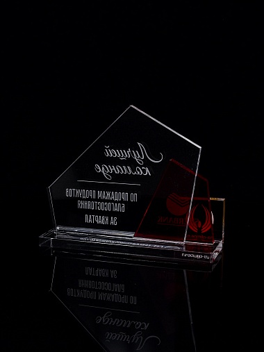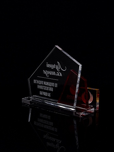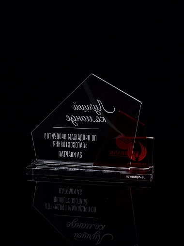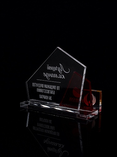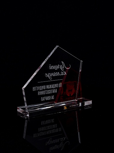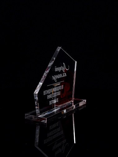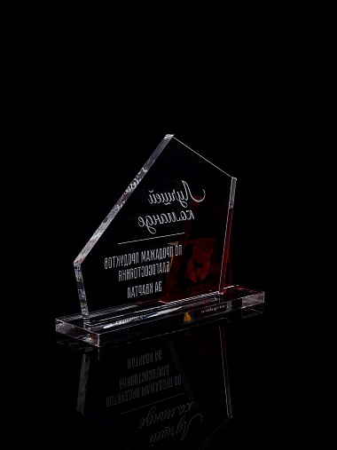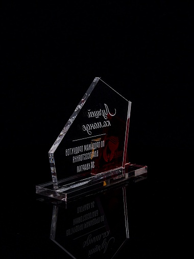 Приз из прозрачного акрила с гравировкой.
