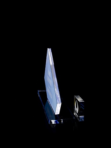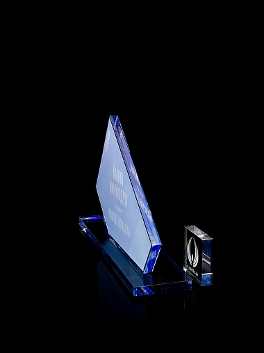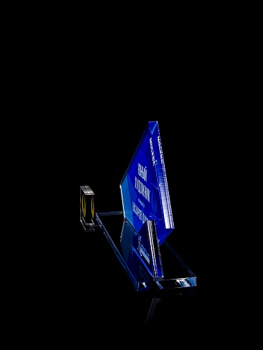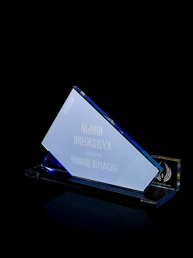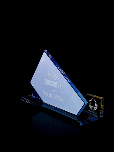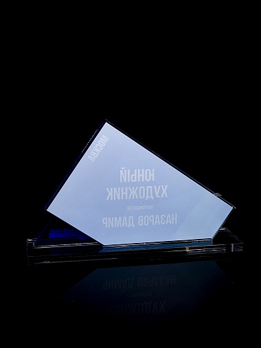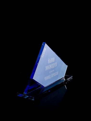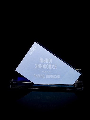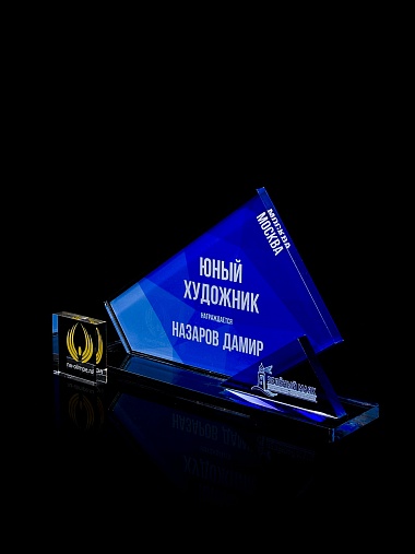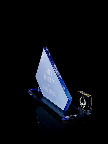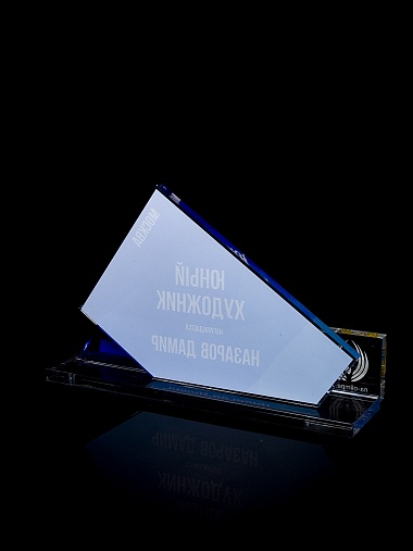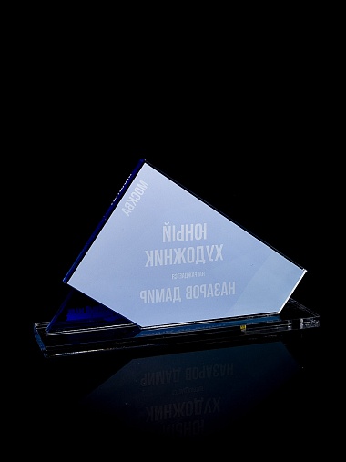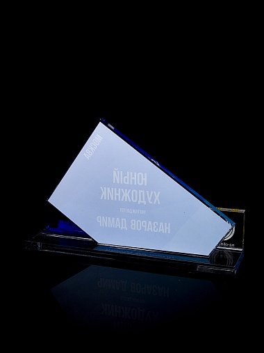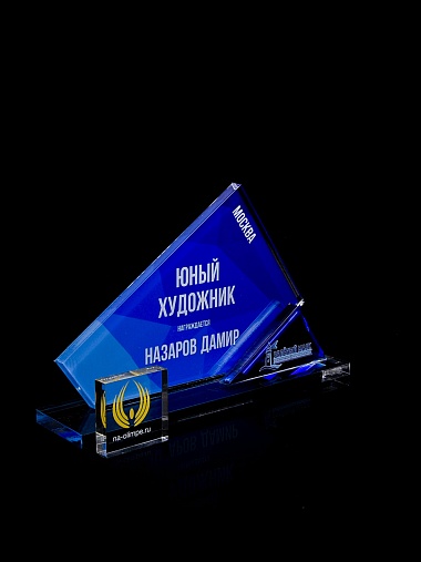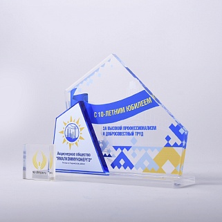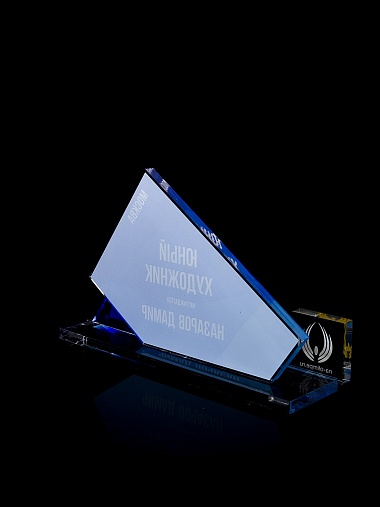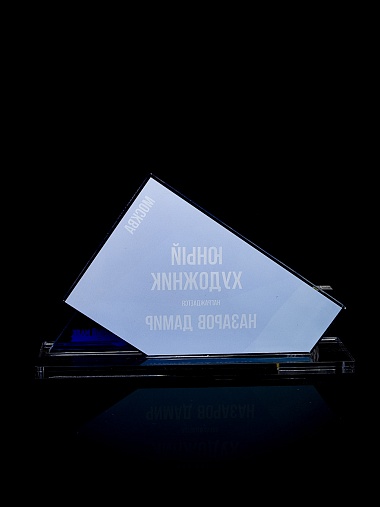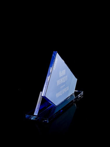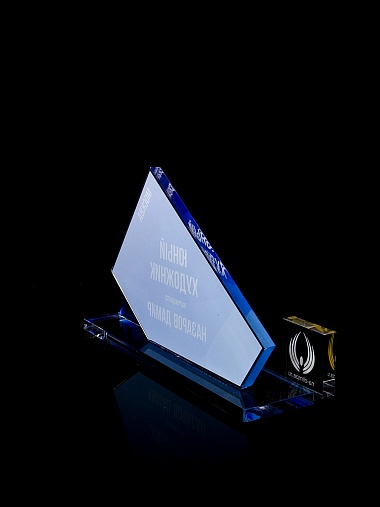 Приз из прозрачного акрила с цветной печатью.