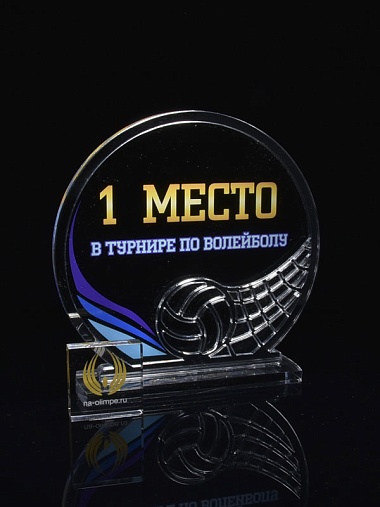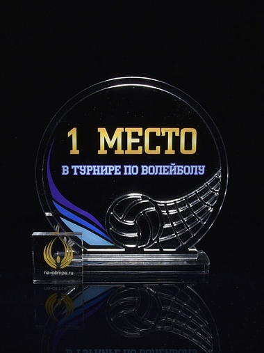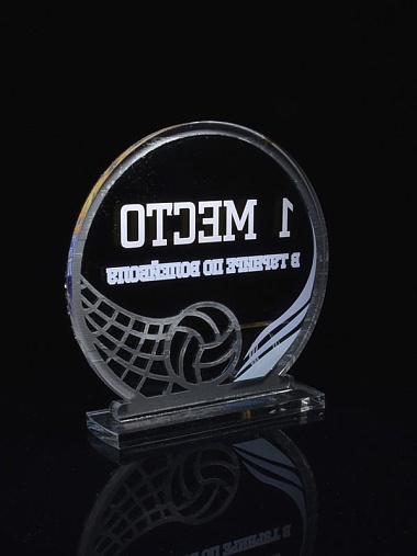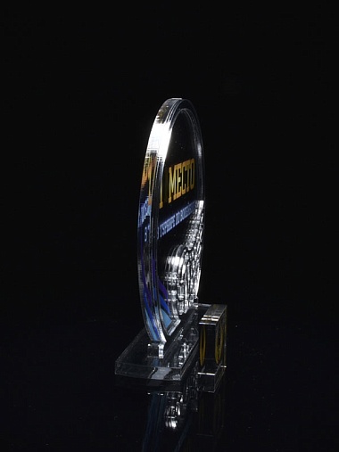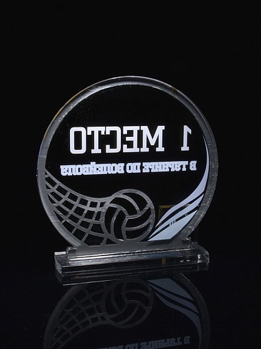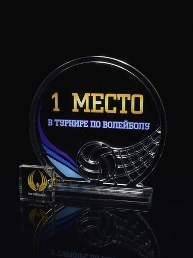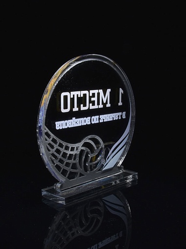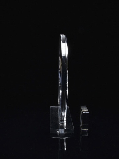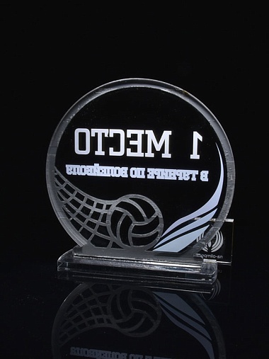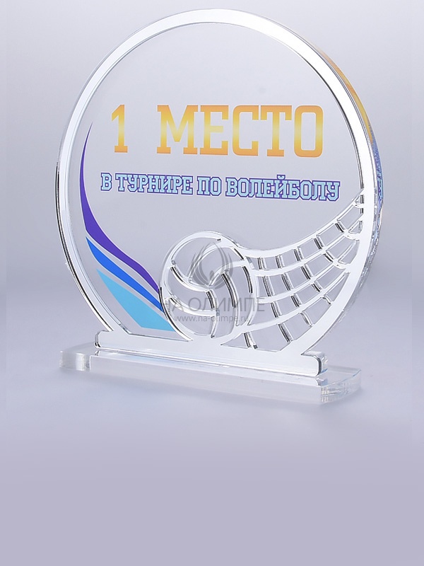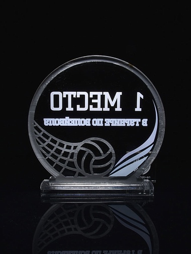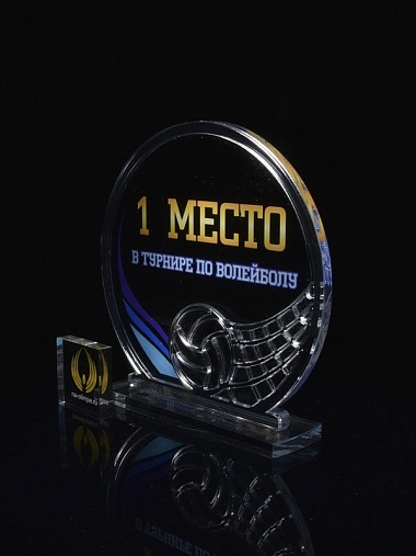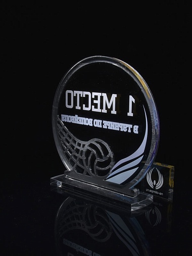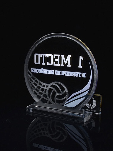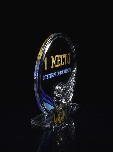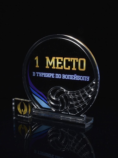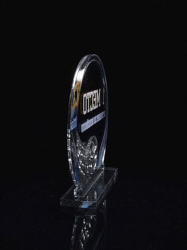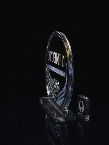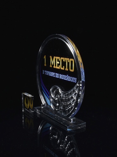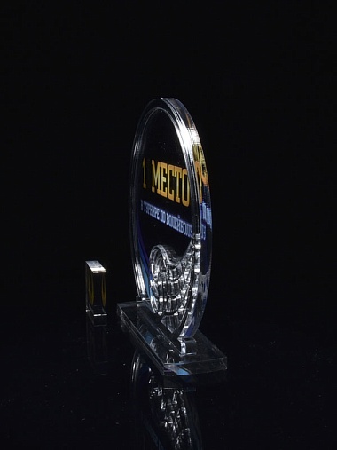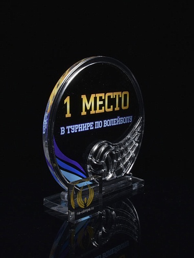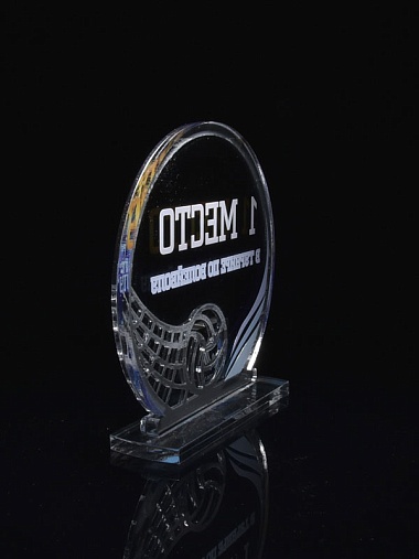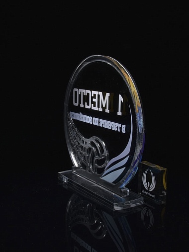 Приз из серебряного и прозрачного акрила с цветным нанесением.