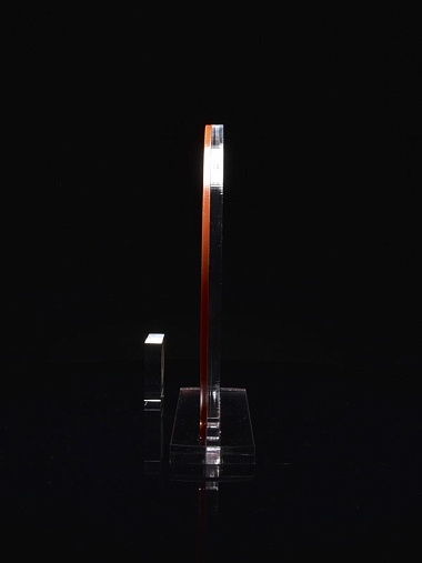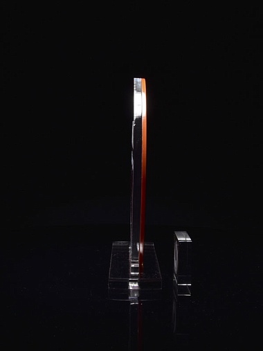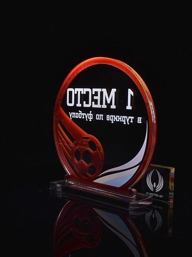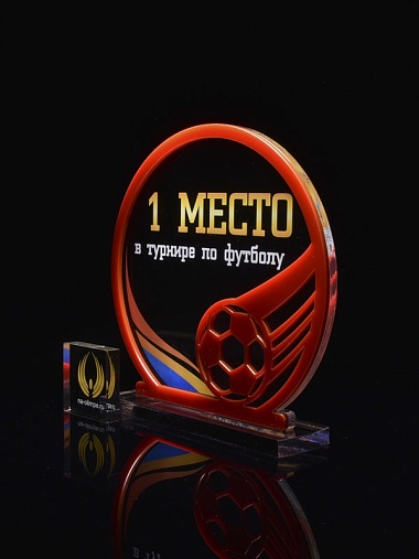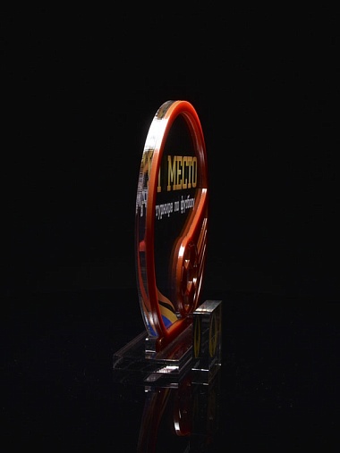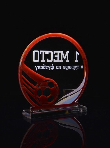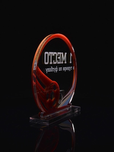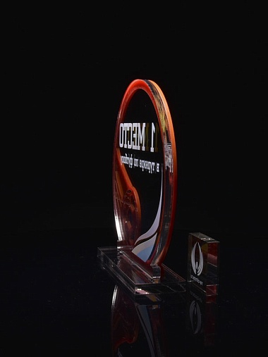 Приз из красного и прозрачного акрила с цветным нанесением.