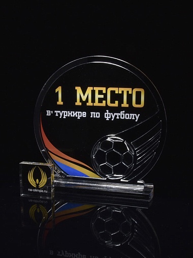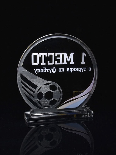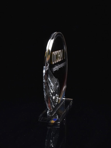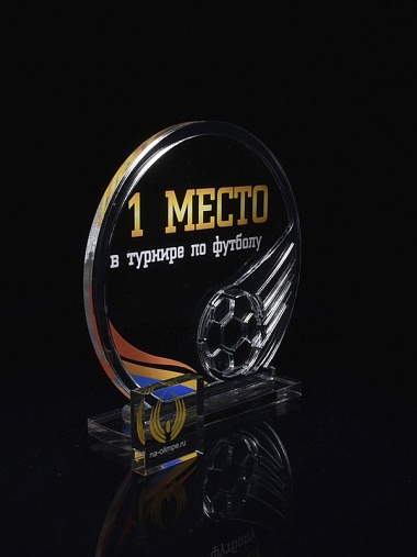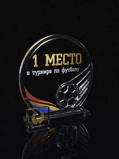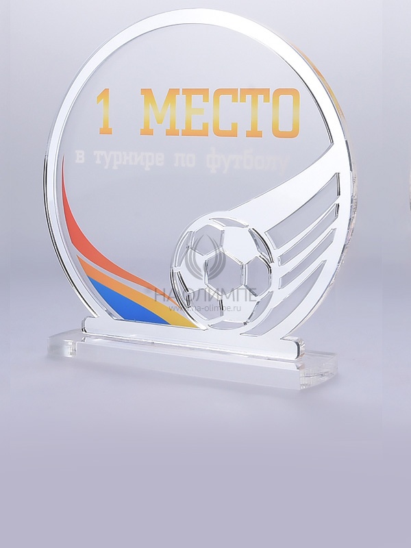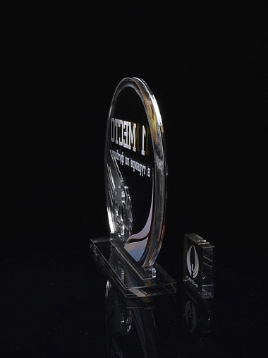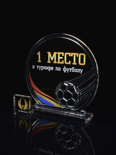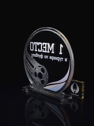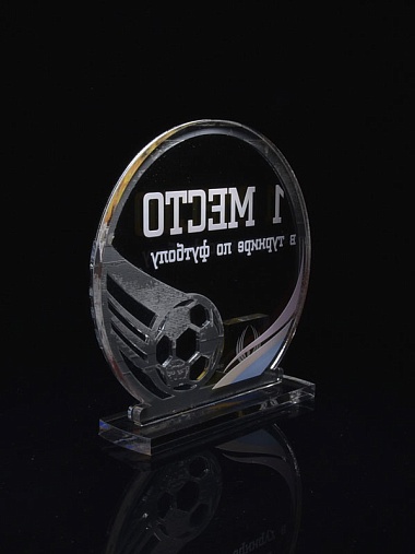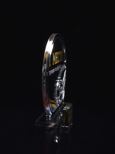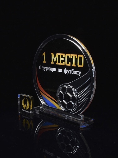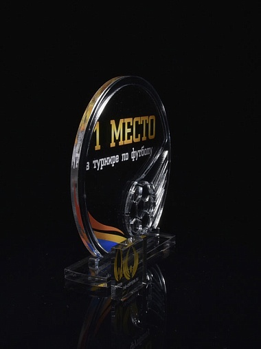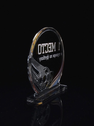 Приз из серебряного и прозрачного акрила с цветным нанесением.