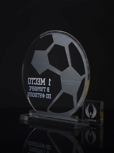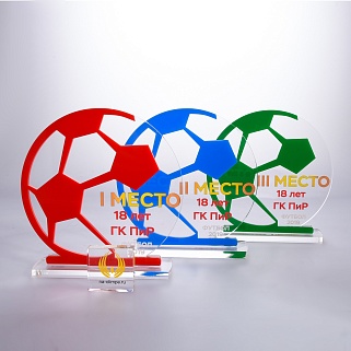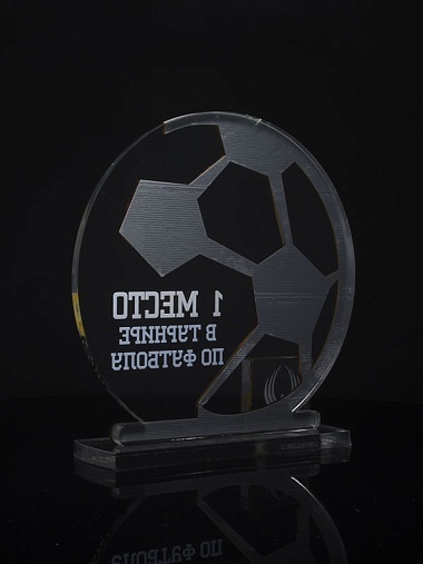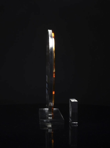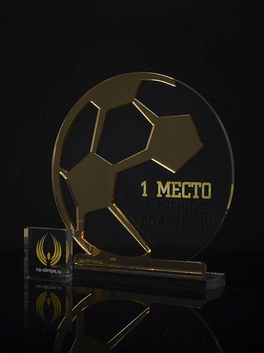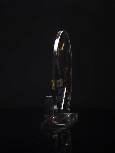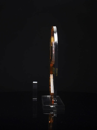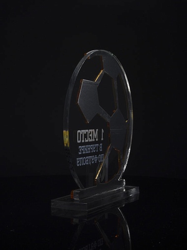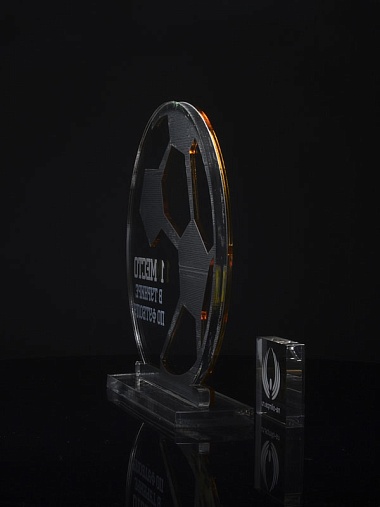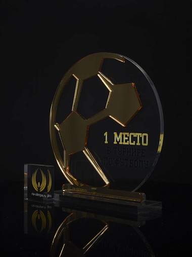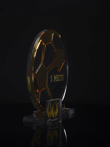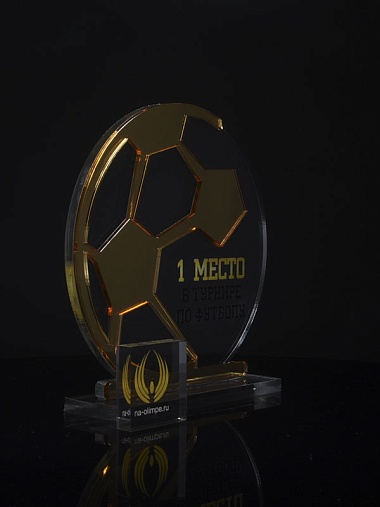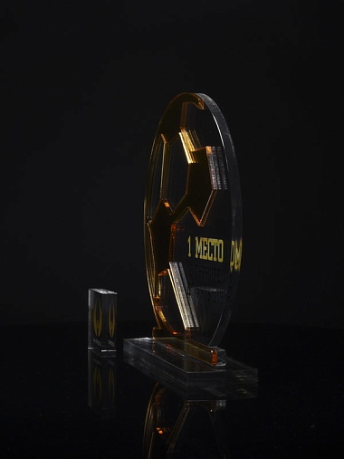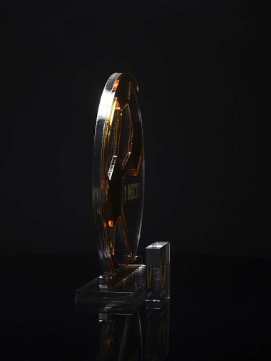 Приз из золотого и прозрачного акрила с цветным нанесением.