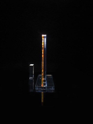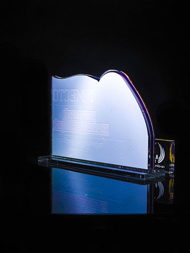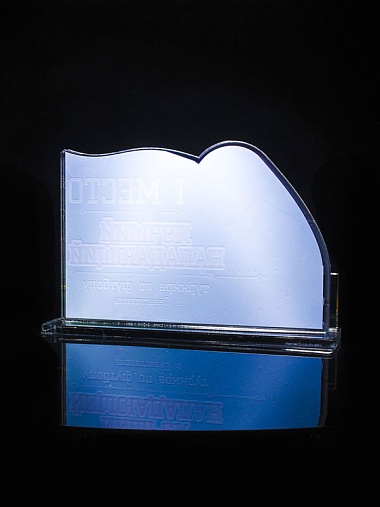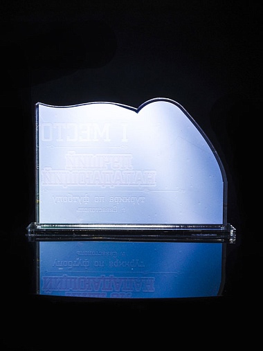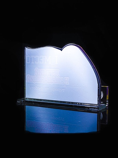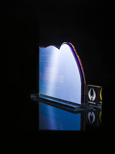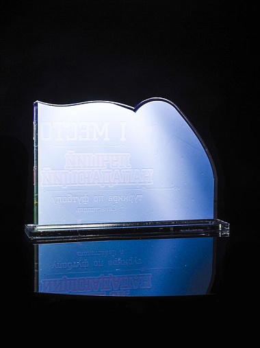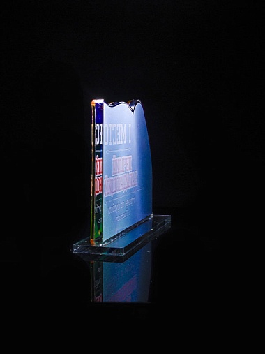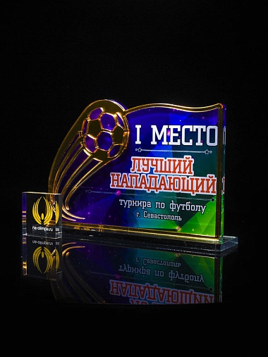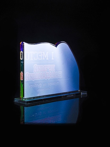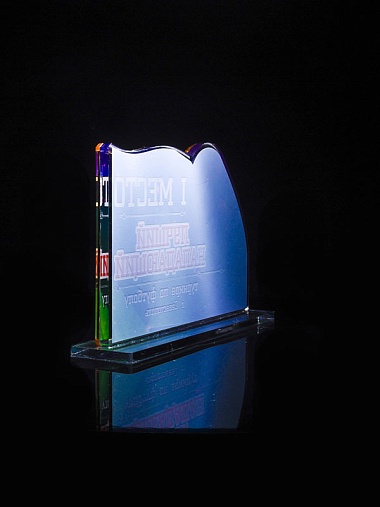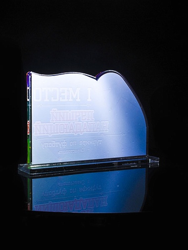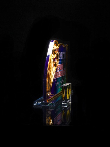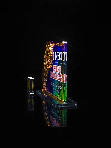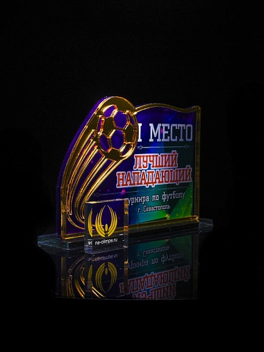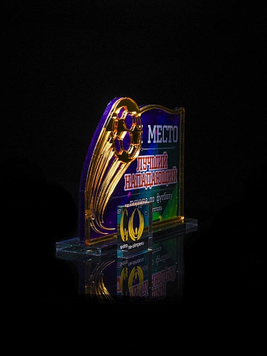 Приз из золотого и прозрачного акрила с цветным нанесением.