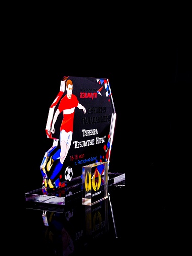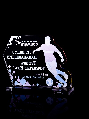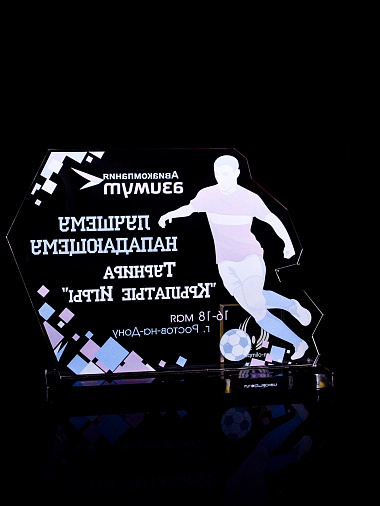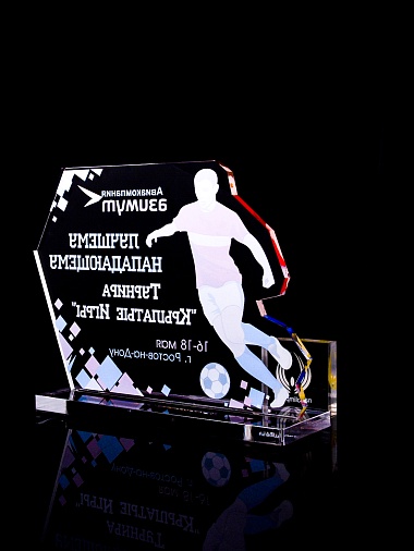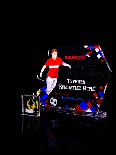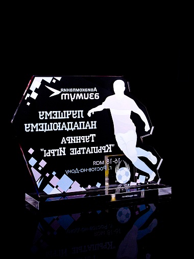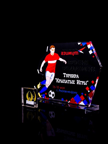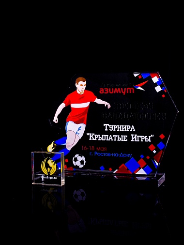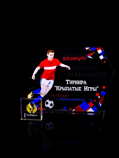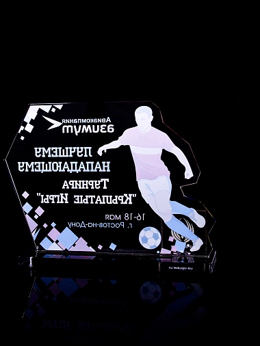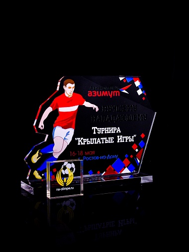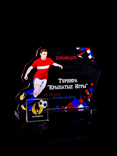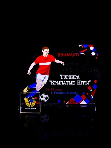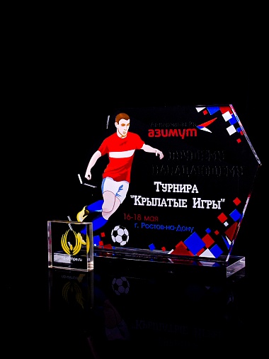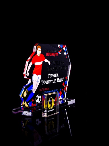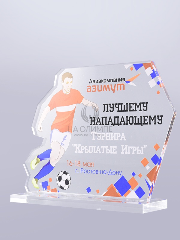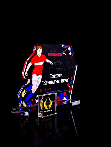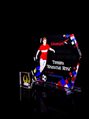 Приз из прозрачного акрила с цветной печатью.Расцветка формы, как и текст, могут быть любыми, согласно Вашим пожеланиям.