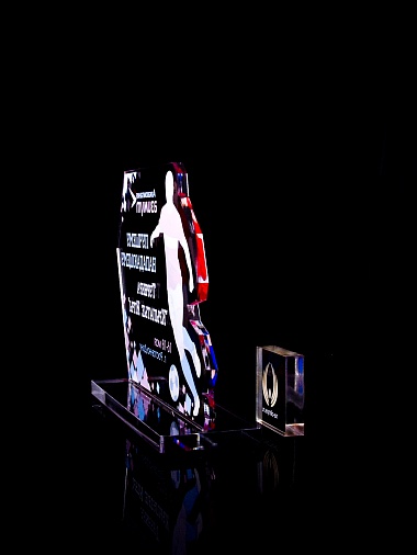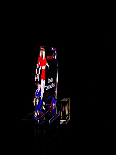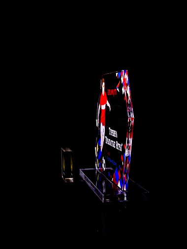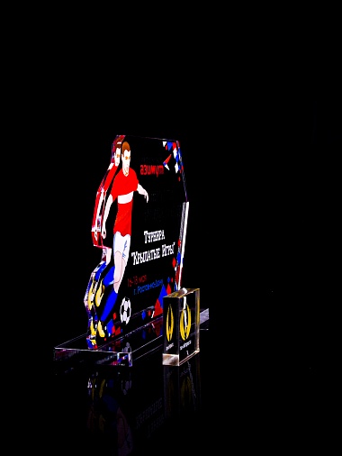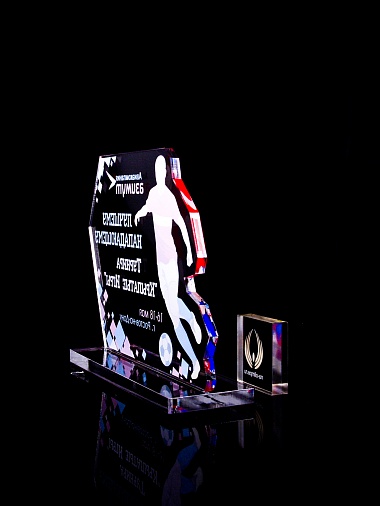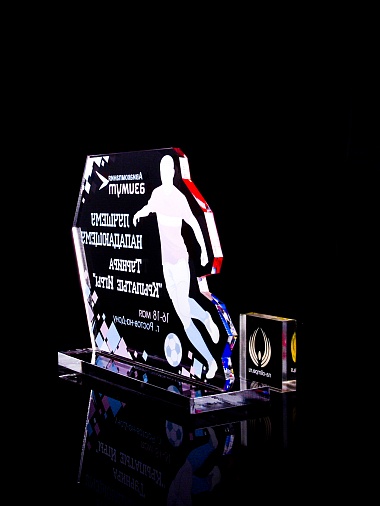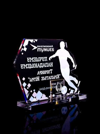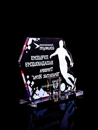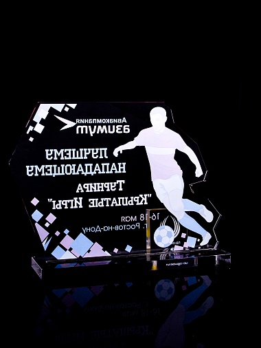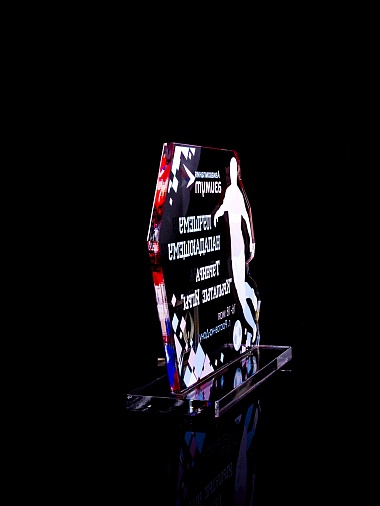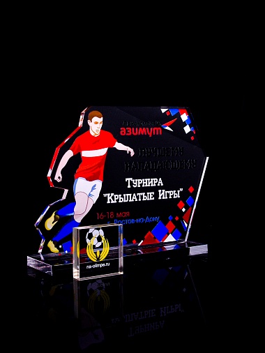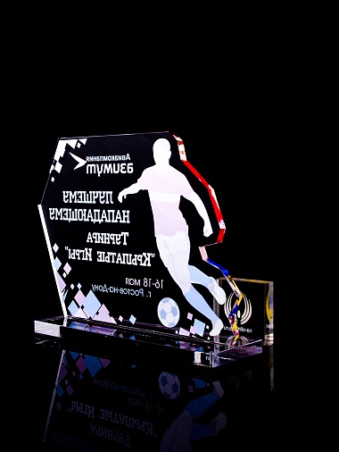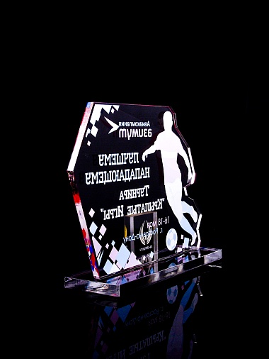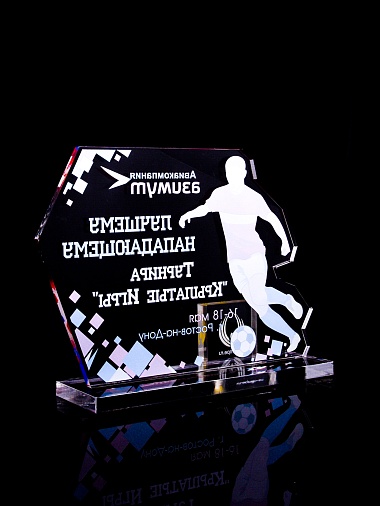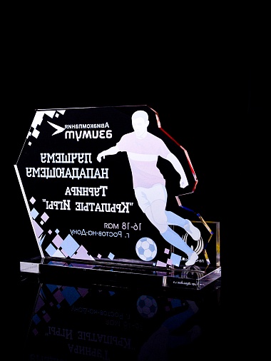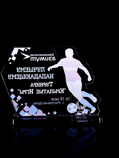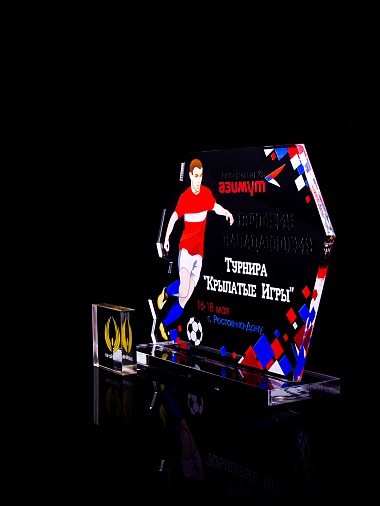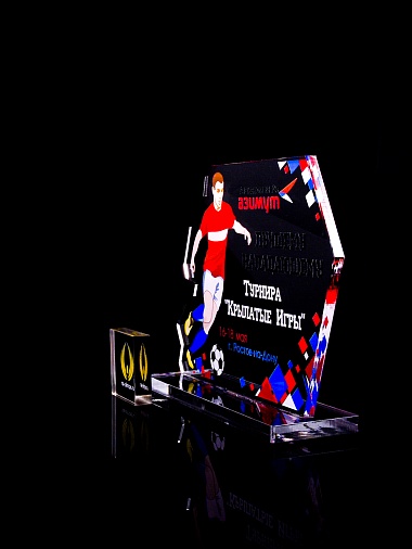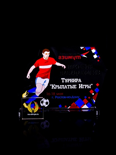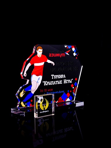 Приз из прозрачного акрила с цветной печатью.Расцветка формы, как и текст, могут быть любыми, согласно Вашим пожеланиям.