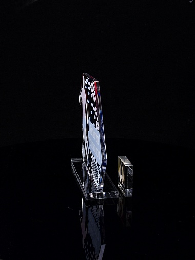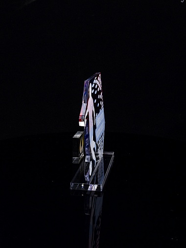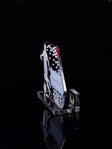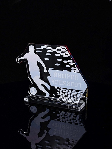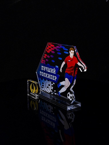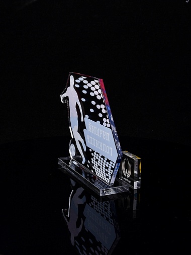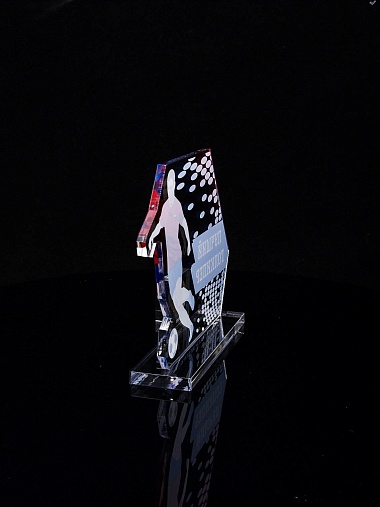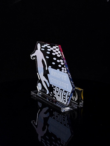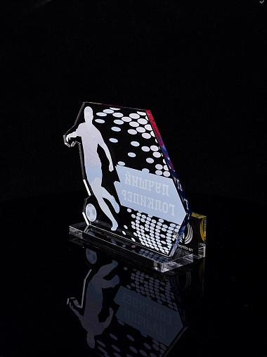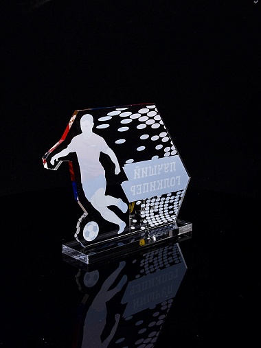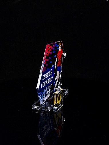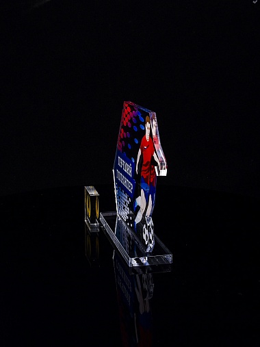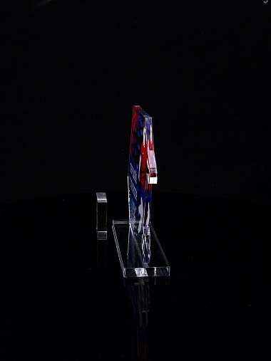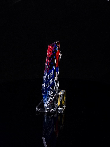 Приз из прозрачного акрила с цветной печатью.Расцветка формы, как и текст, могут быть любыми, согласно Вашим пожеланиям.