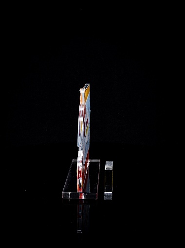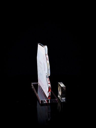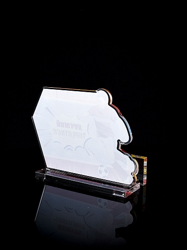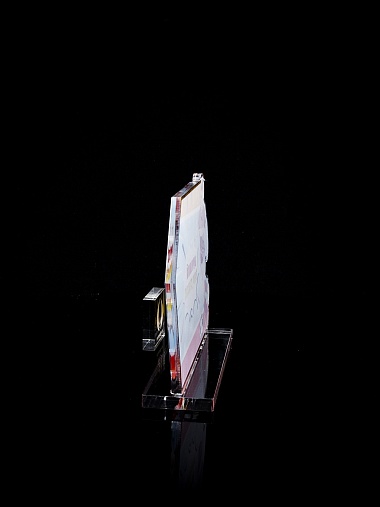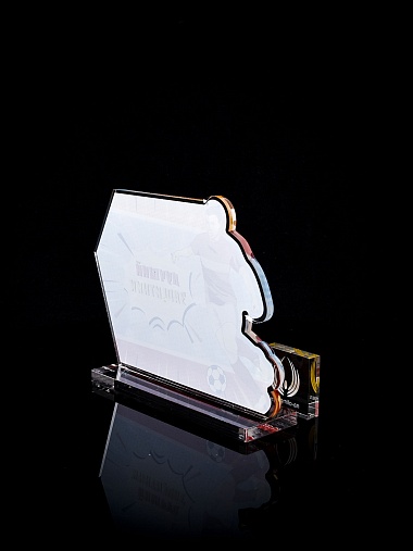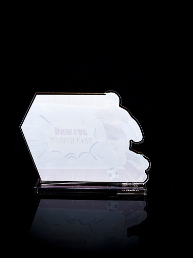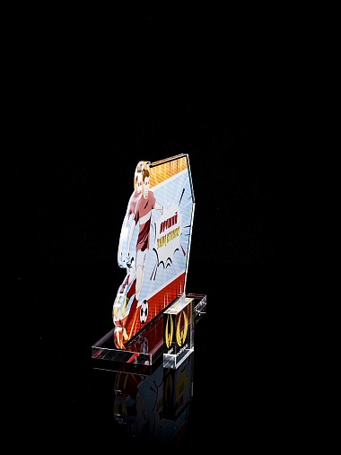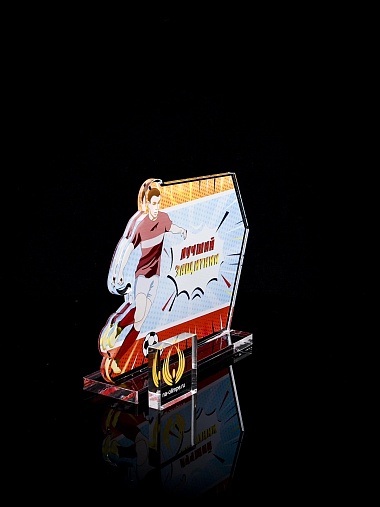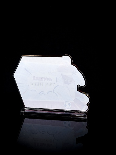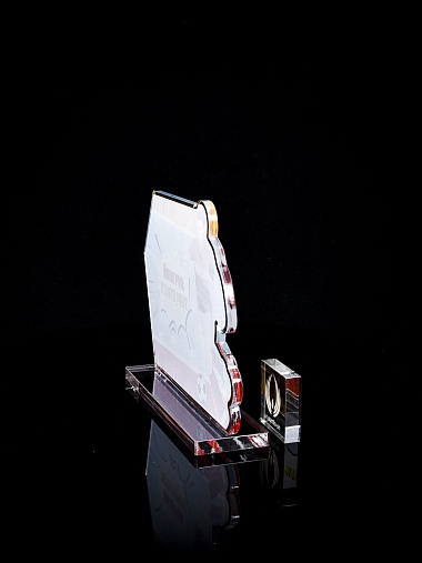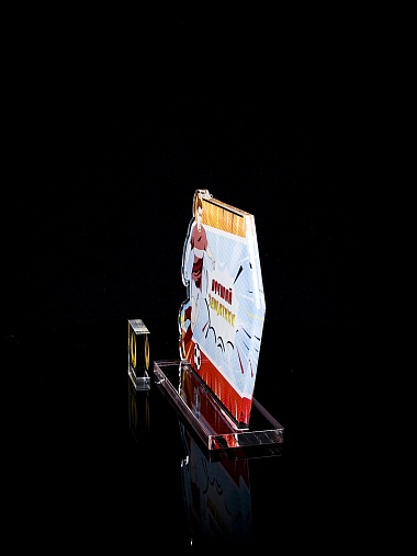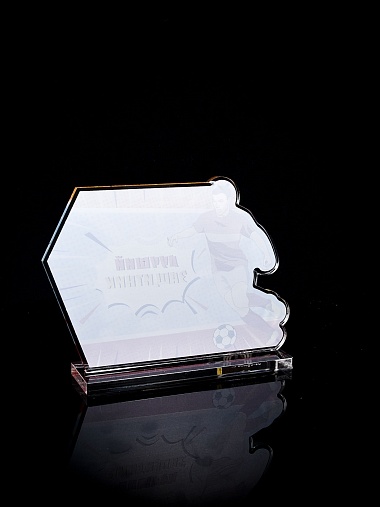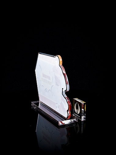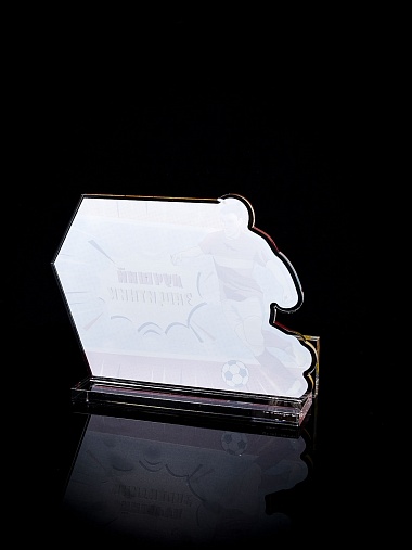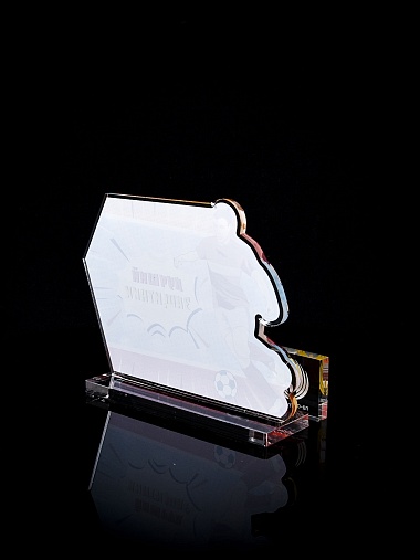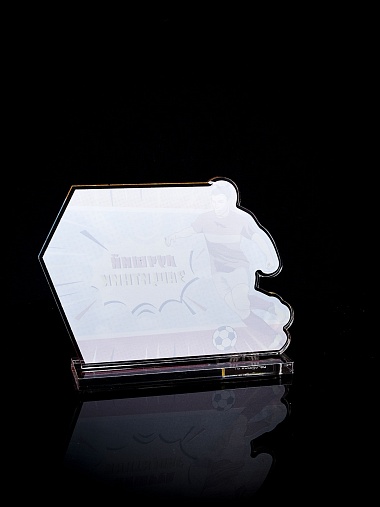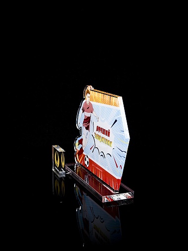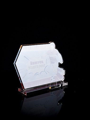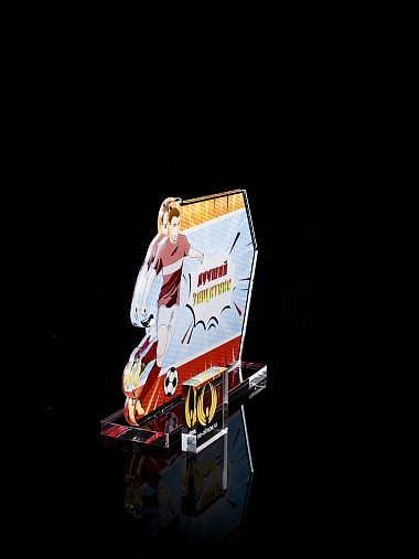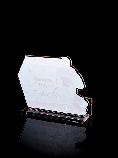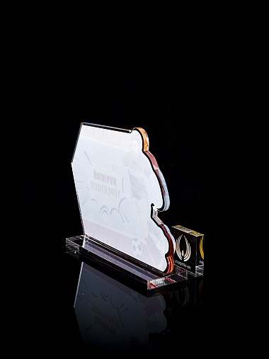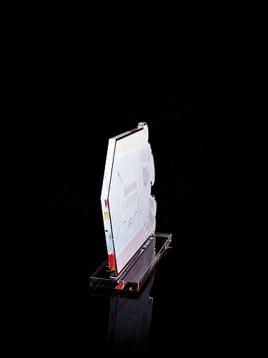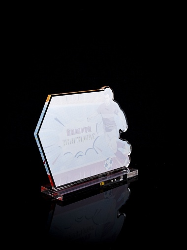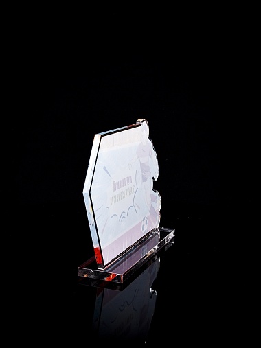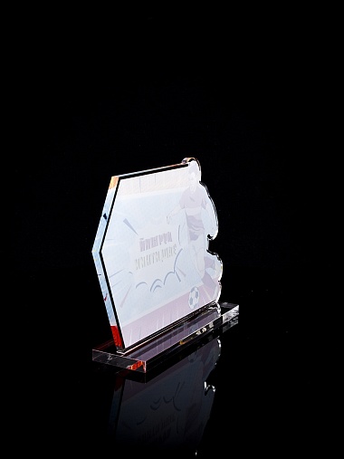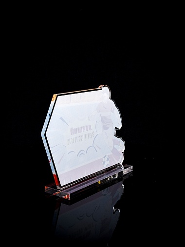 Приз из прозрачного акрила с цветной печатью.Расцветка формы, как и текст, могут быть любыми, согласно Вашим пожеланиям.