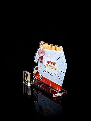 Приз из акрила футбол 35-135 с цветной печатью, высота 13.5 см
