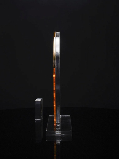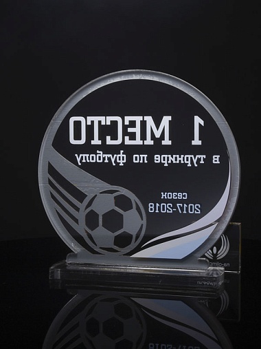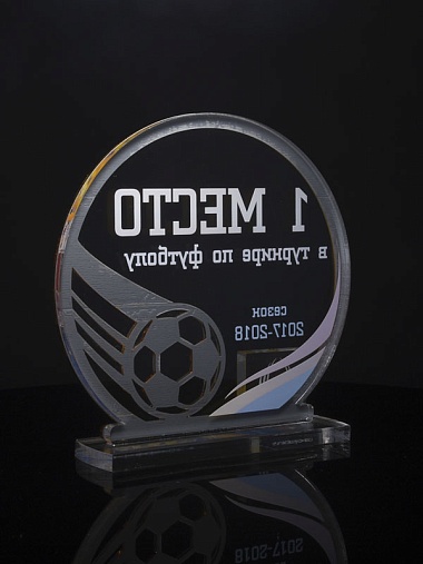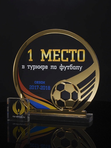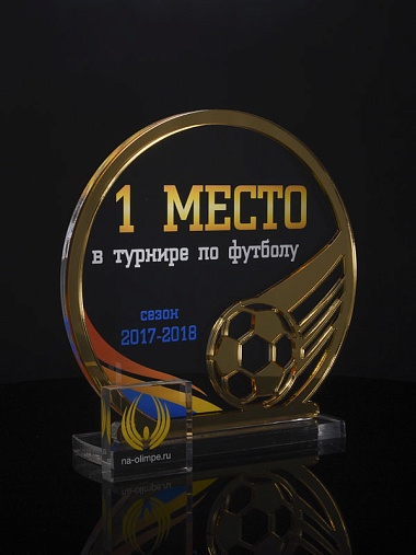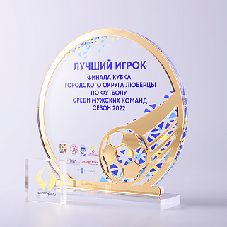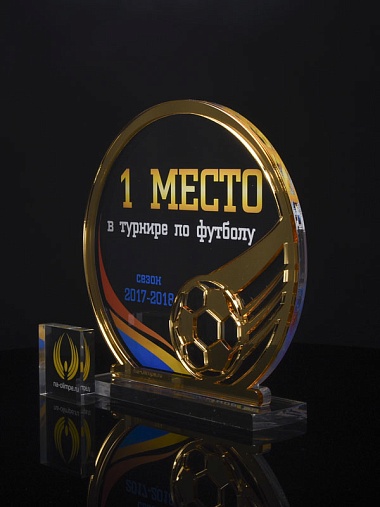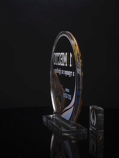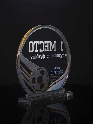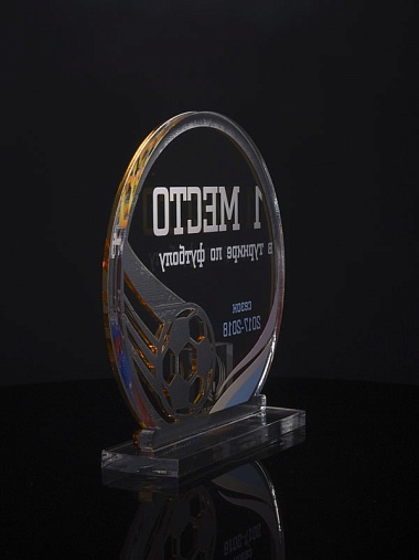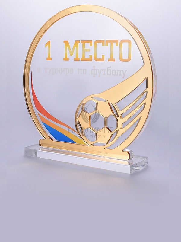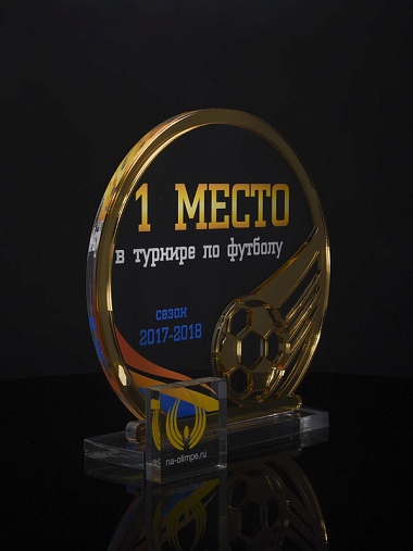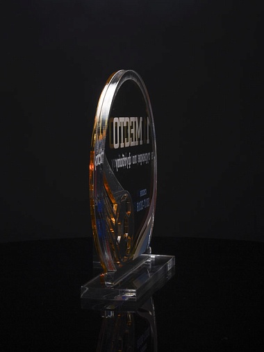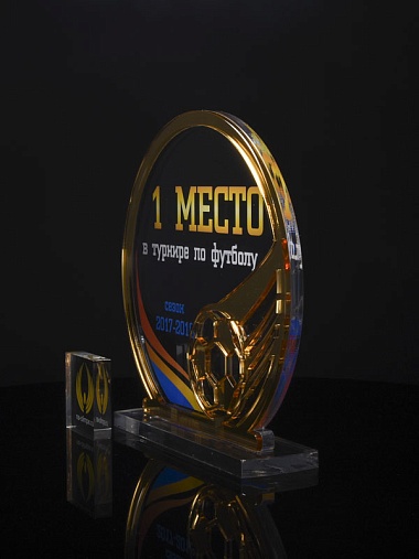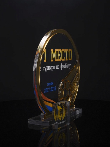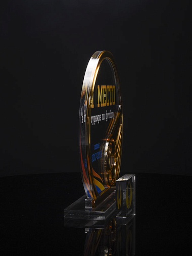 Приз из золотого и прозрачного акрила с цветным нанесением.