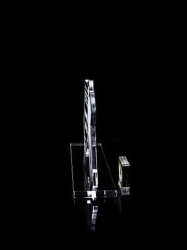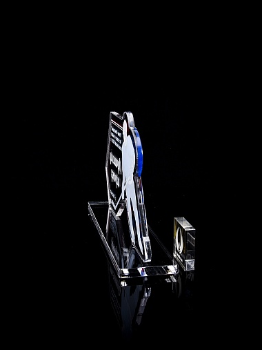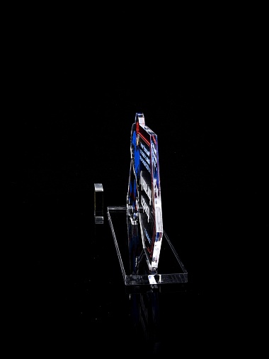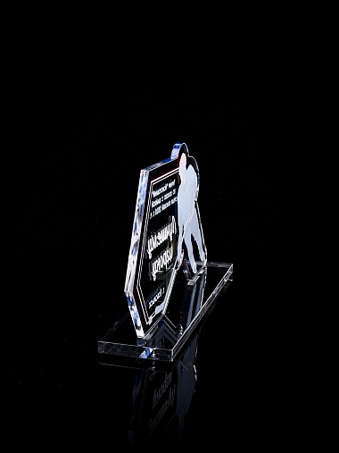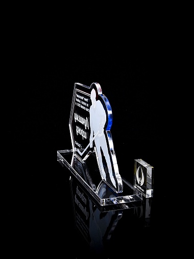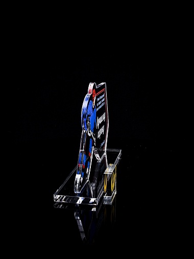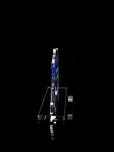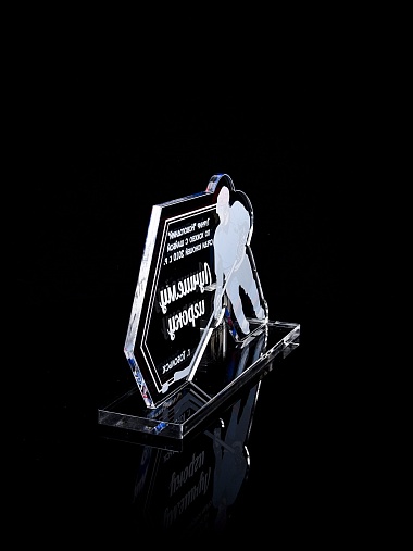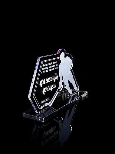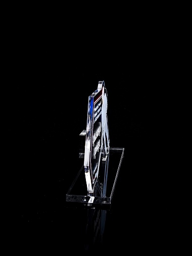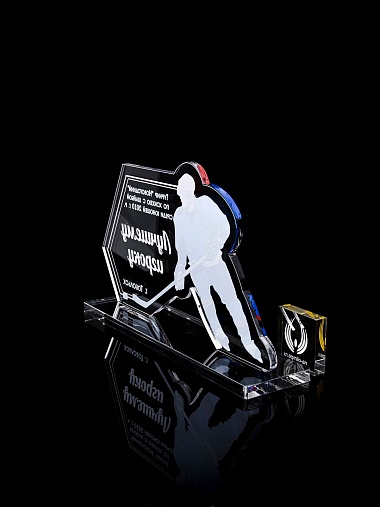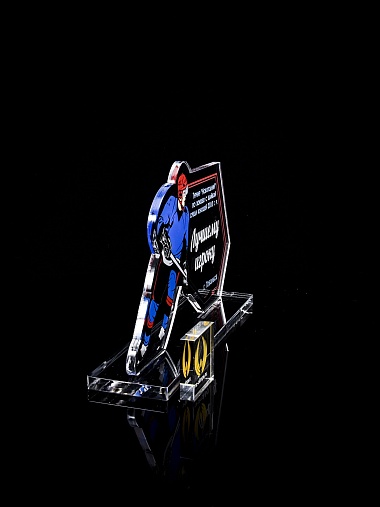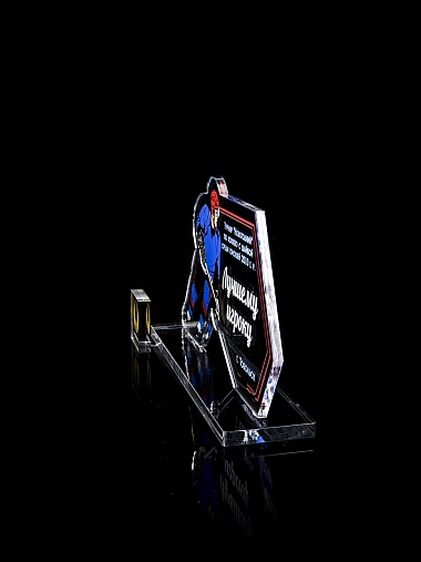 Приз из прозрачного акрила с цветной печатью. Расцветка формы, как и текст, могут быть любыми, согласно Вашим пожеланиям